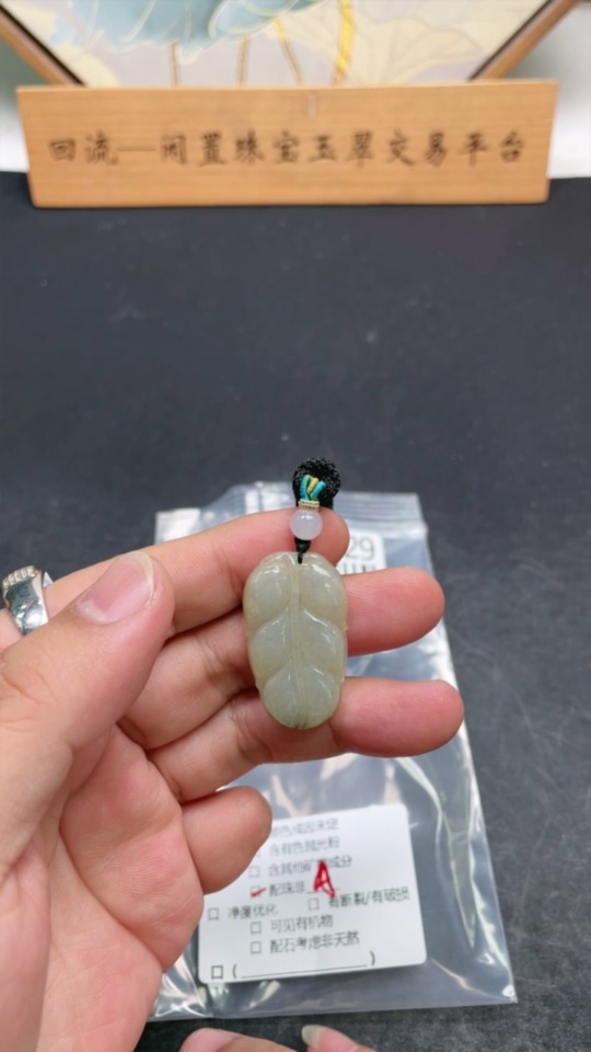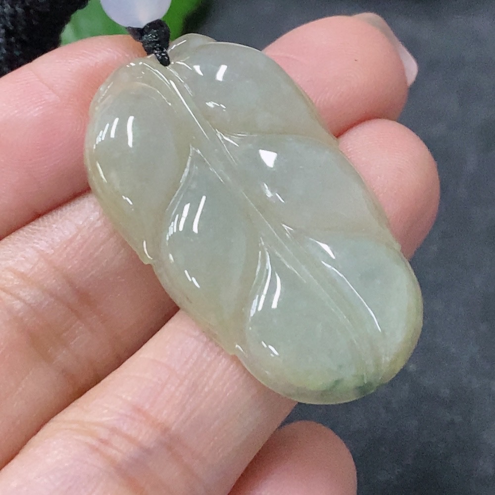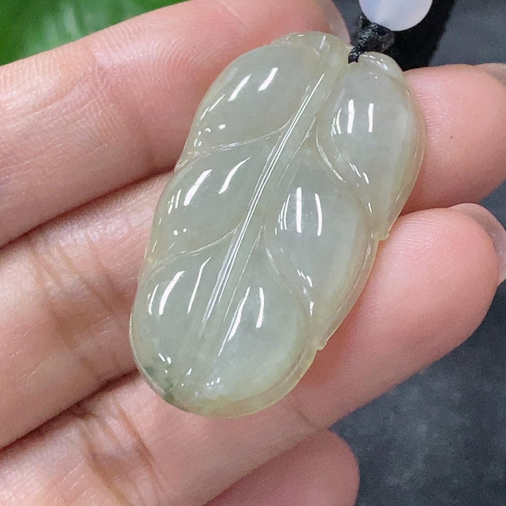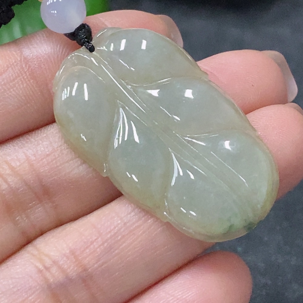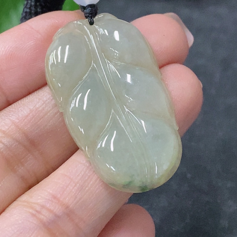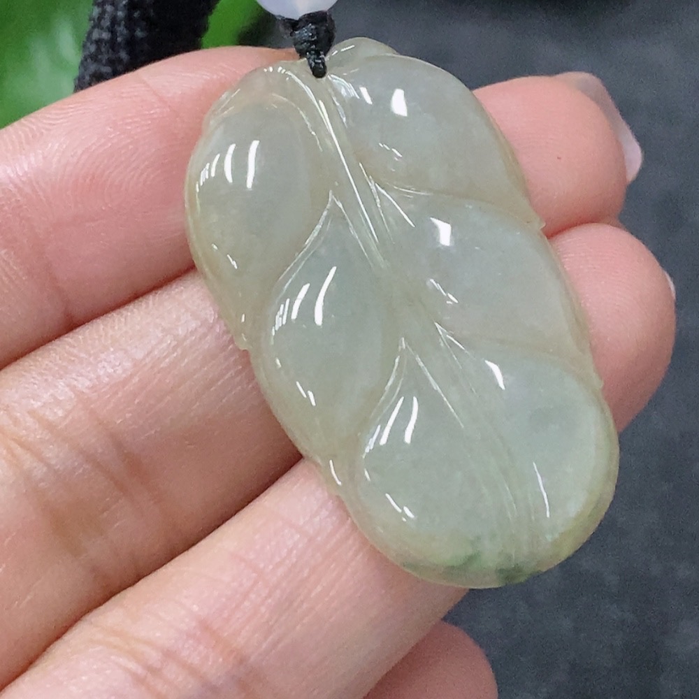 Jadeite Leaf Pendant with Non-Grade A Beads, Total Weight Approx. 8.39g