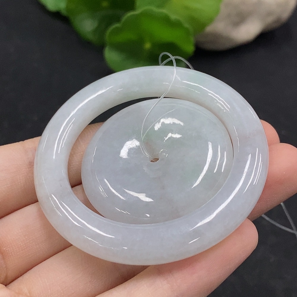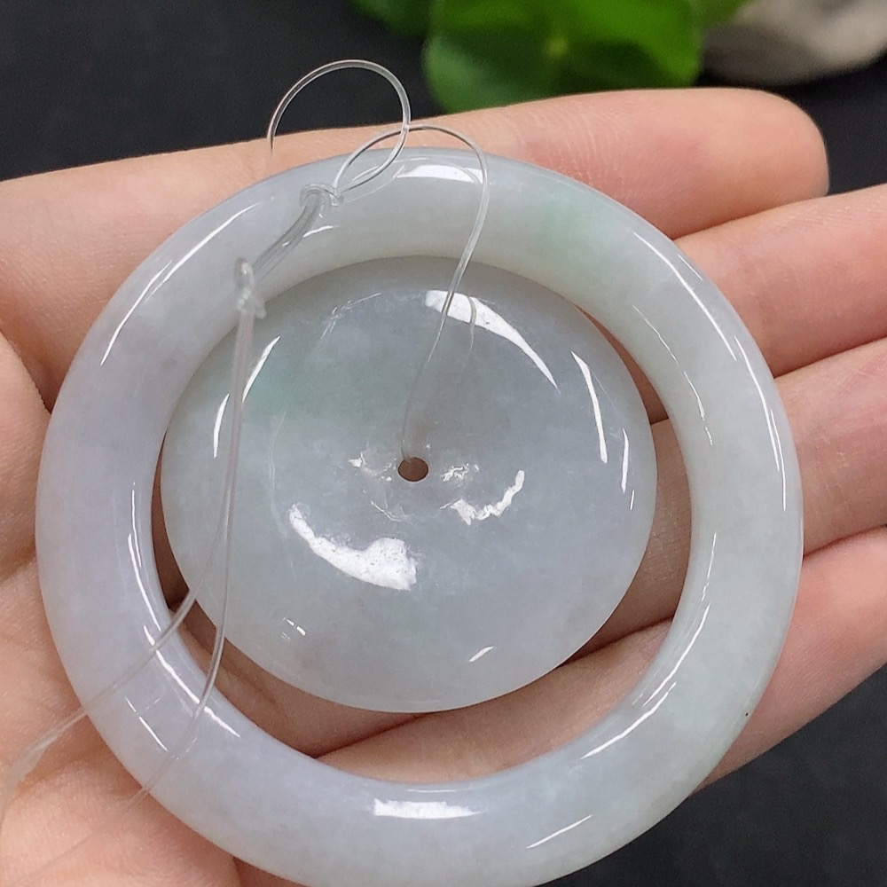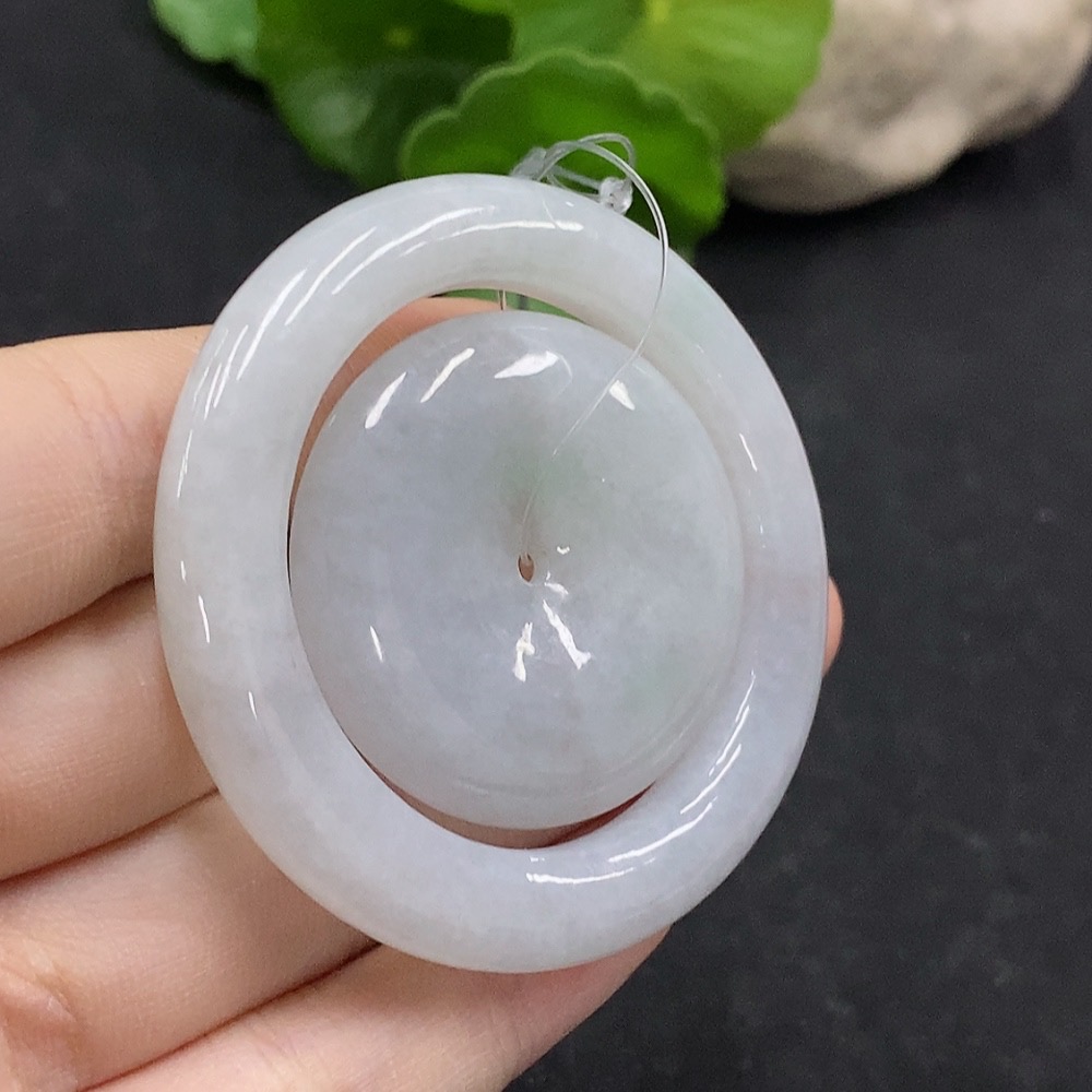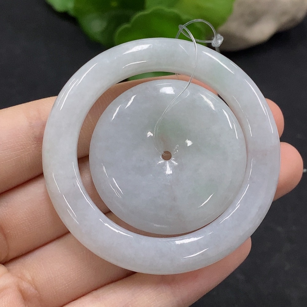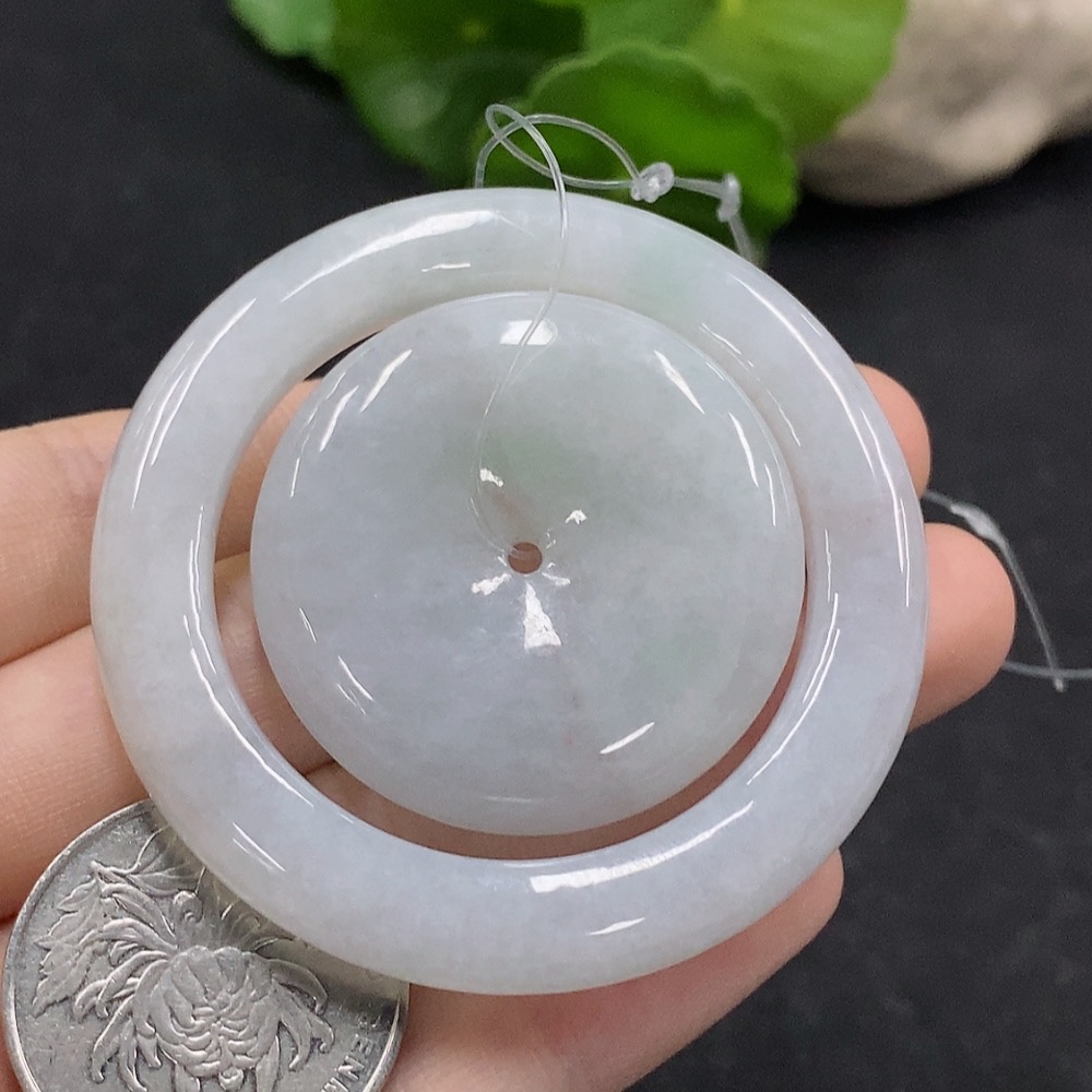 Jadeite Mother and Child Button Pendant Total Weight Approximately 41.2g