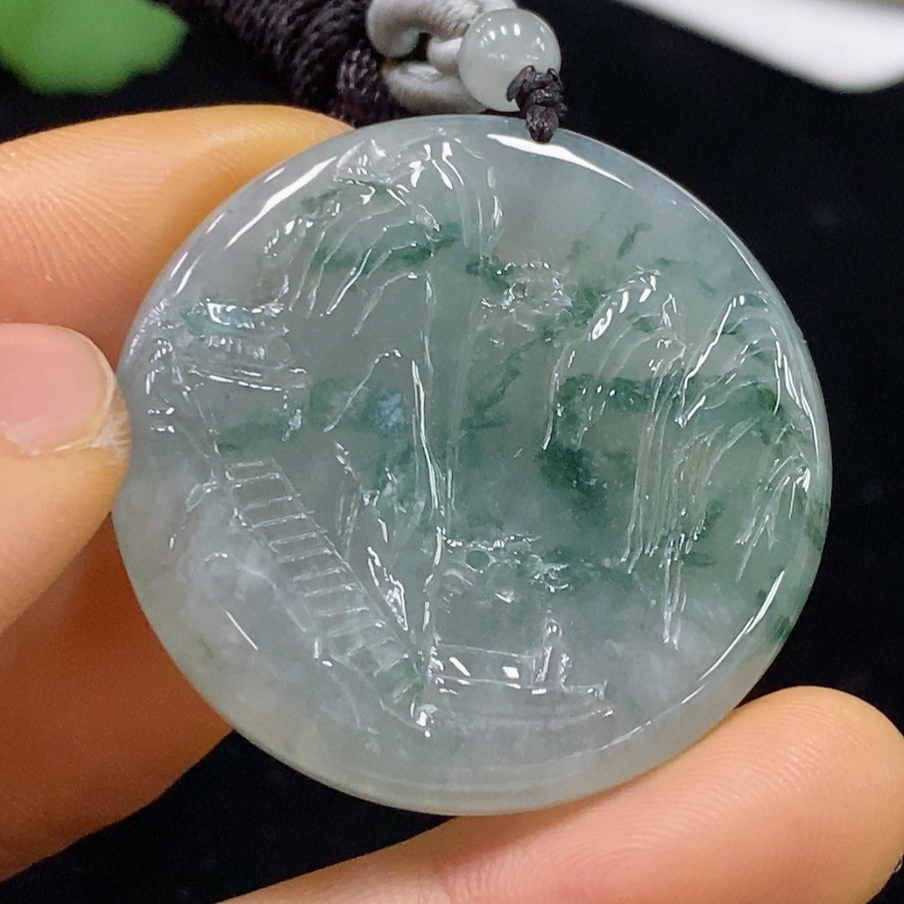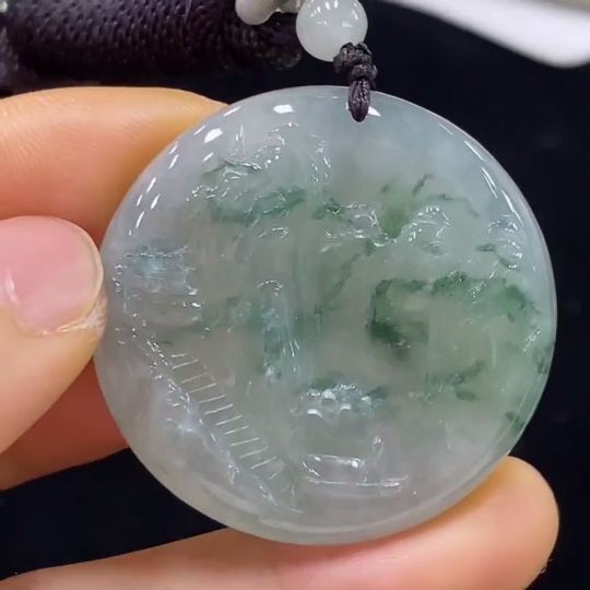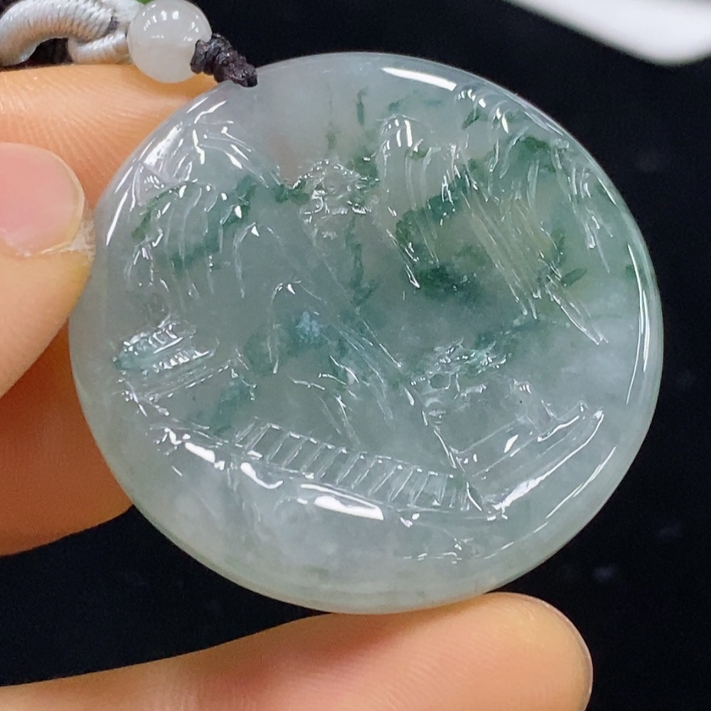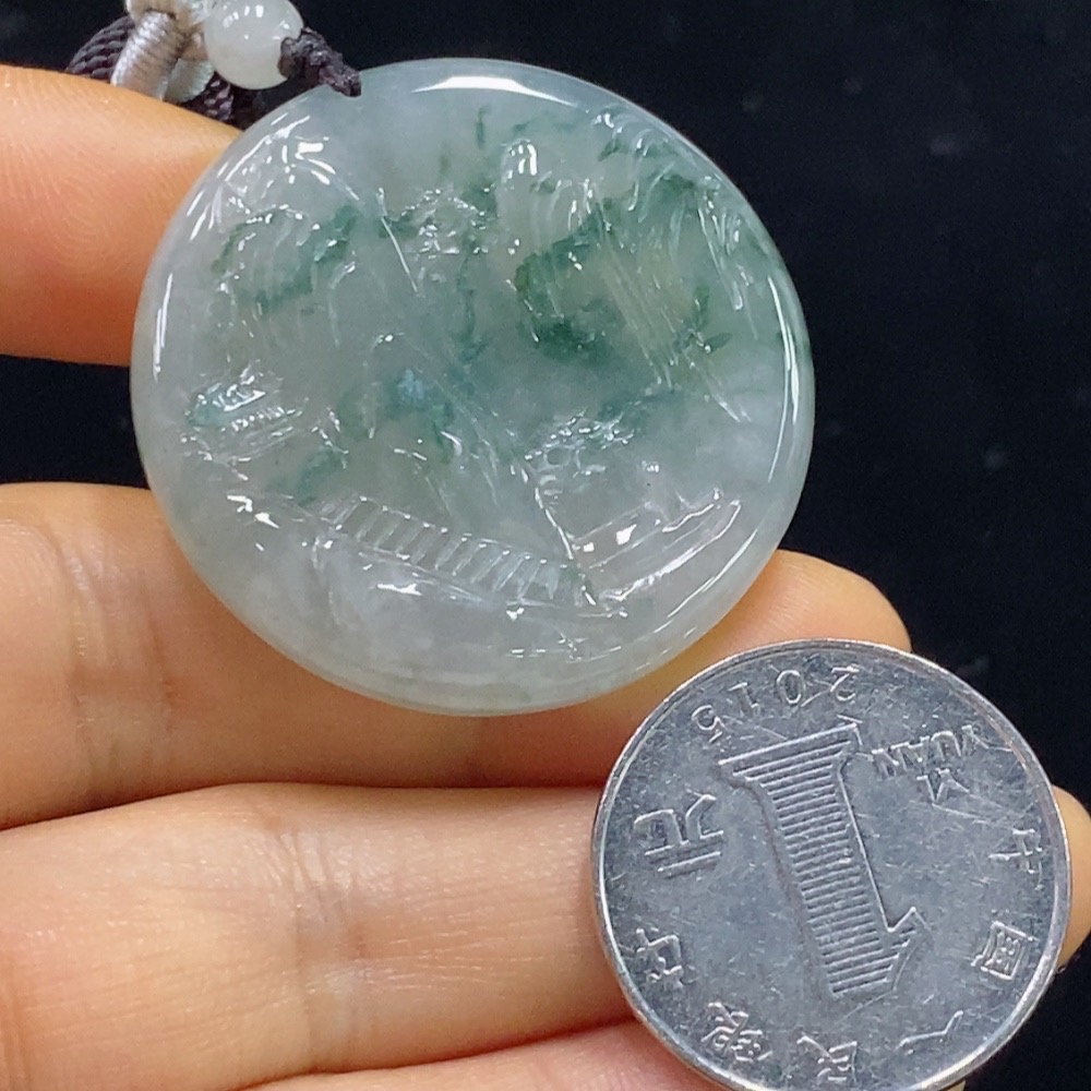 Jadeite Landscape Pendant Total Weight Approx. 21.31g (Including Cord Weight)