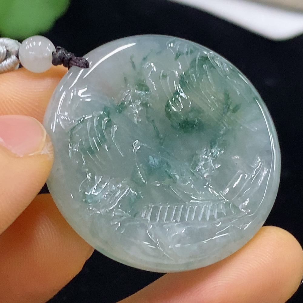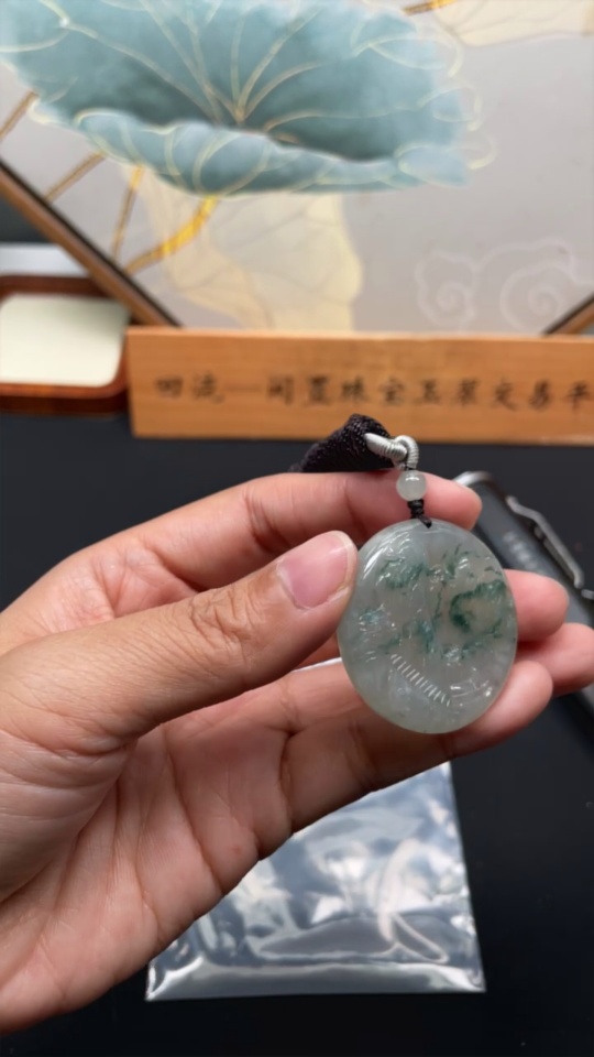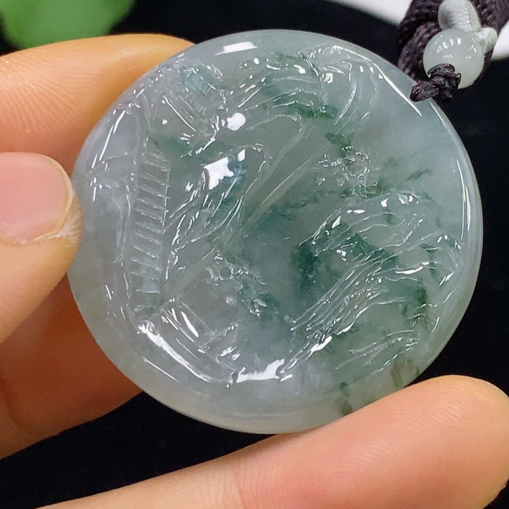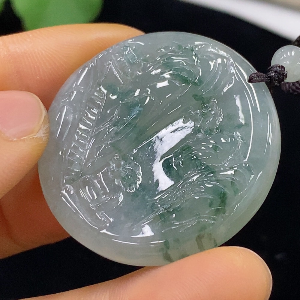 Jadeite Landscape Pendant Total Weight Approx. 21.31g (Including Cord Weight)