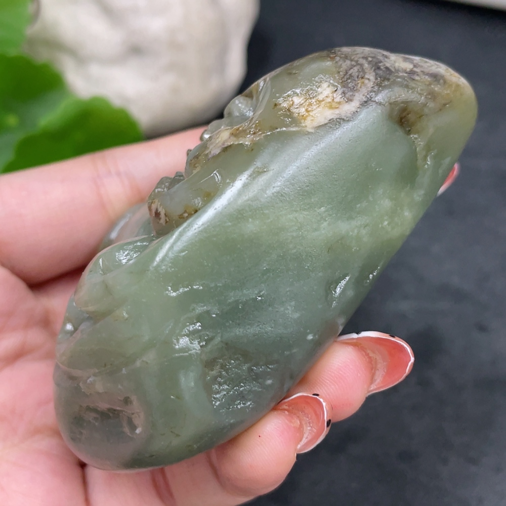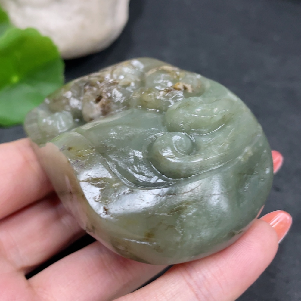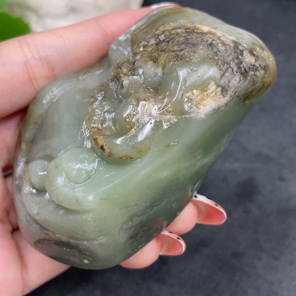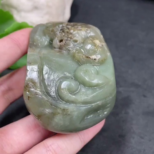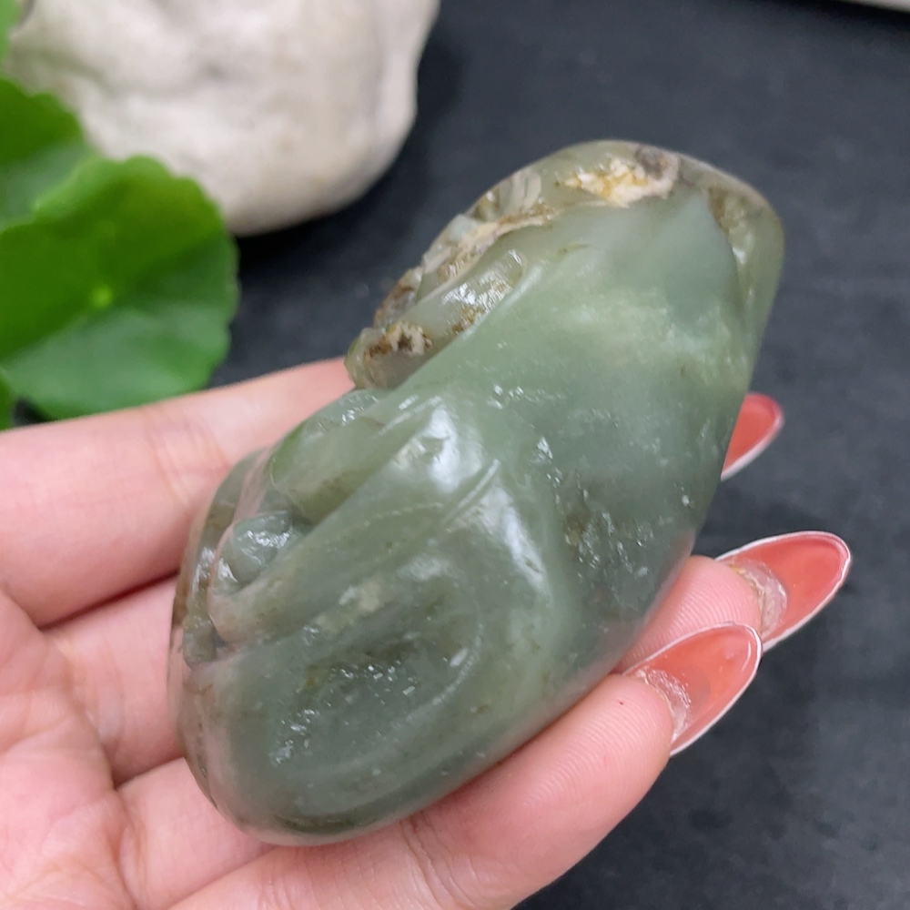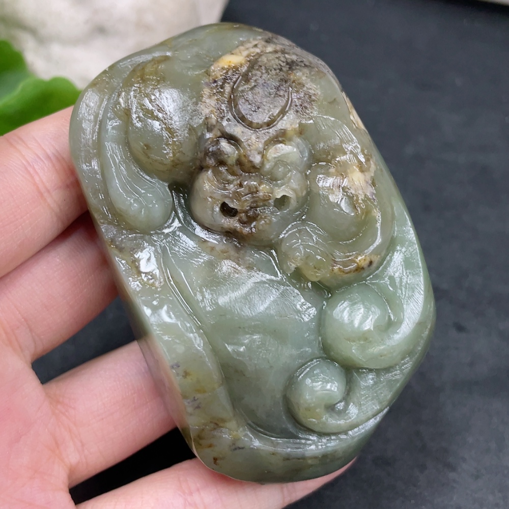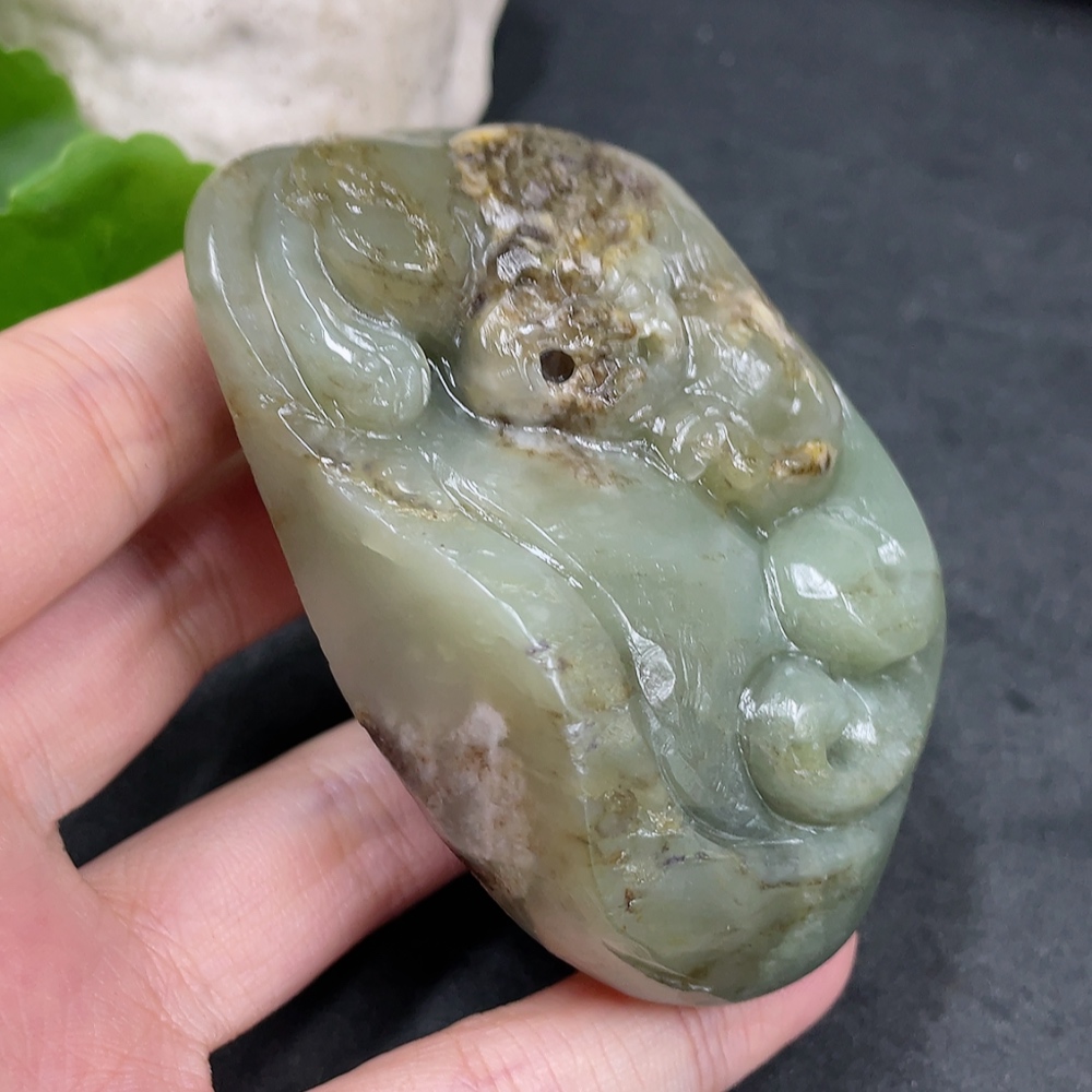 Hetian Jade Handheld Carving - Auspicious Beast, Total Weight: Approx. 210g, Undetermined Skin Color Origin, Contains Other Mineral Components