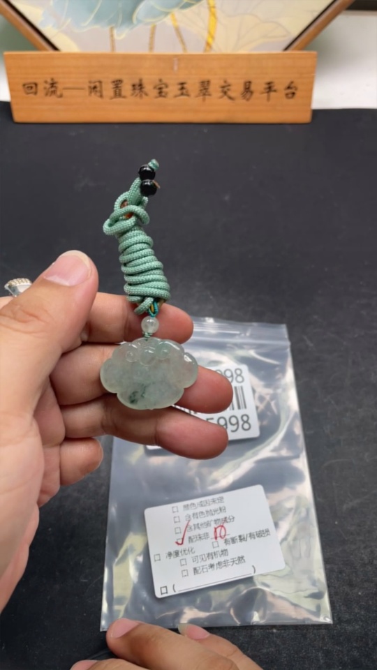Jadeite Pendant with Non-Grade A Beads, Including Rope, Total Weight Approx. 11.2g
