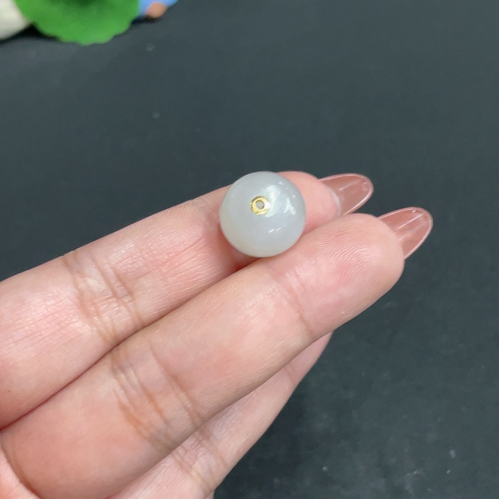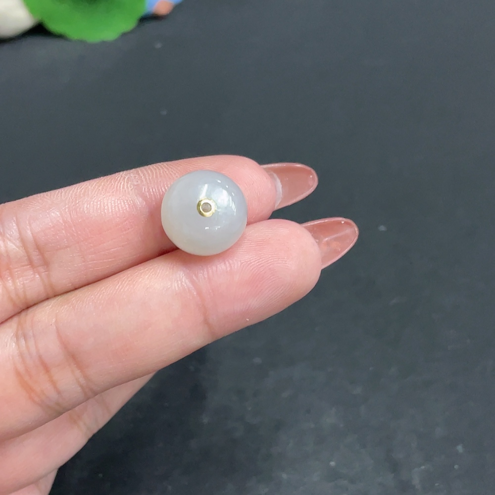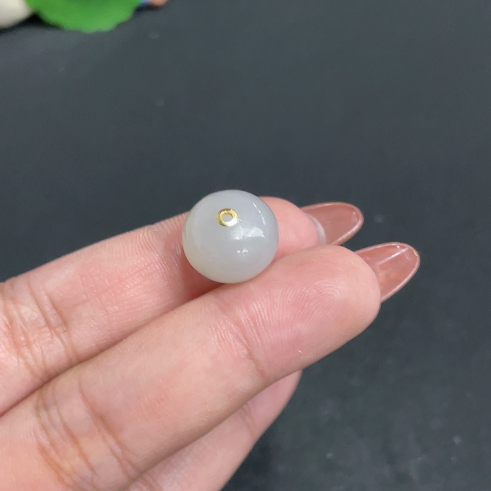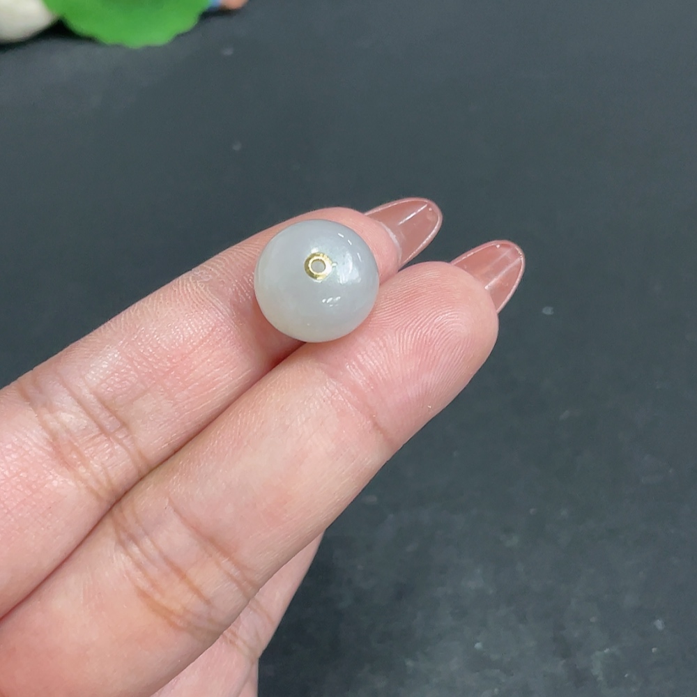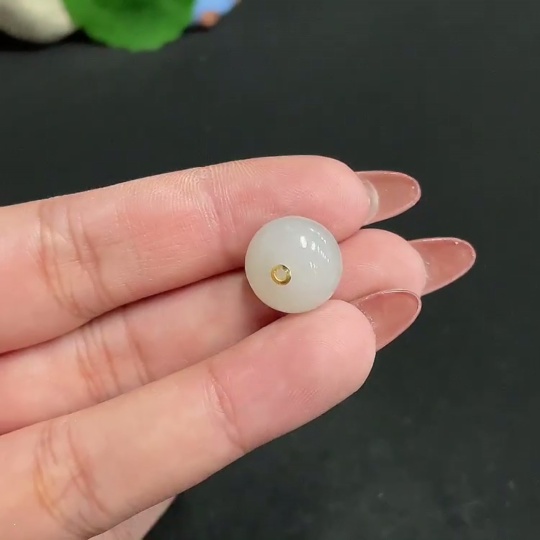 Hetian Jade Inlaid Pendant Single Bead Approx. 13.4mm Total Weight About 3.1g Gold Content 67%