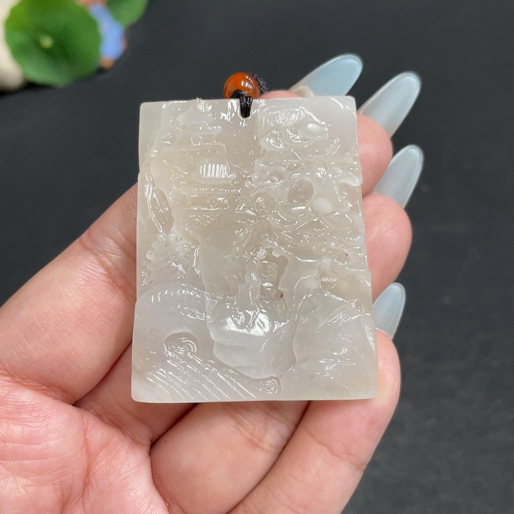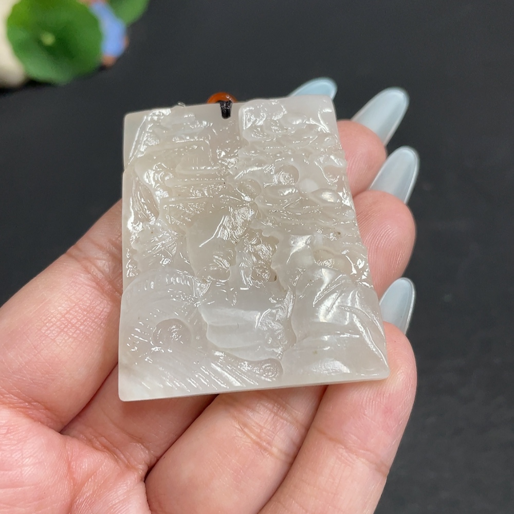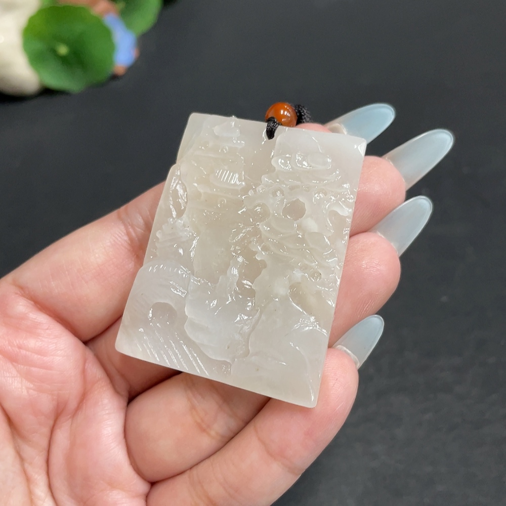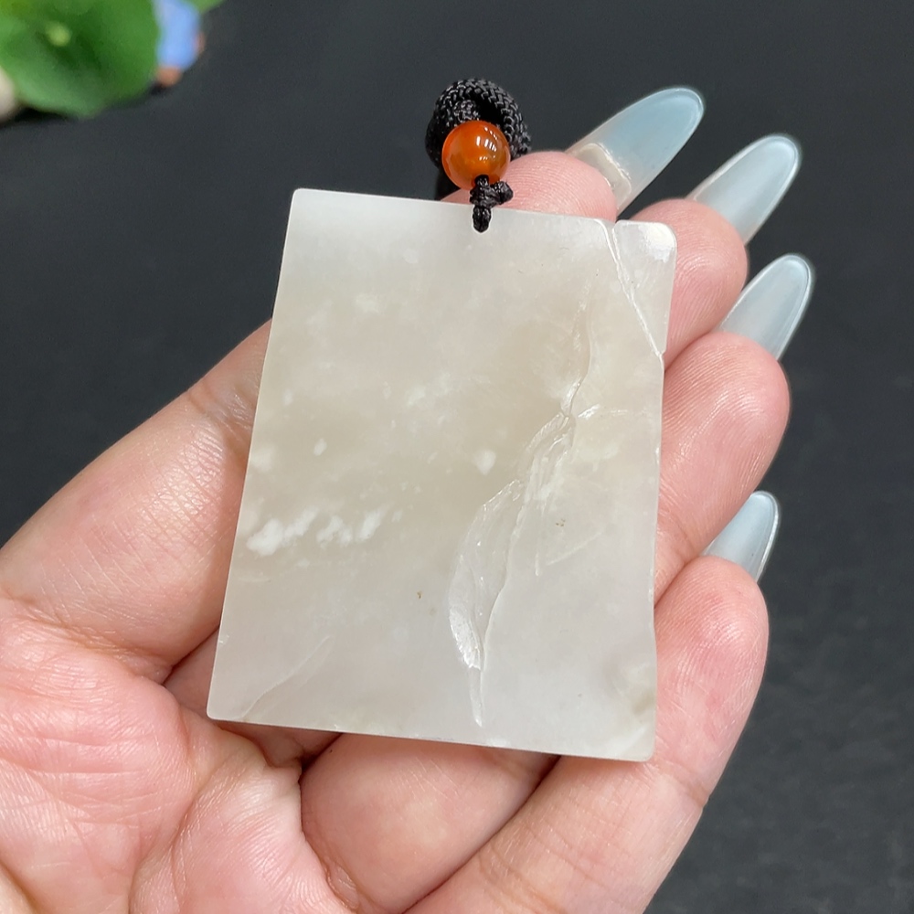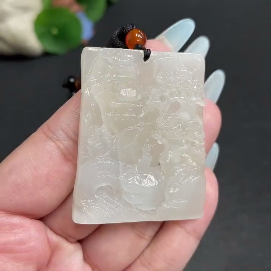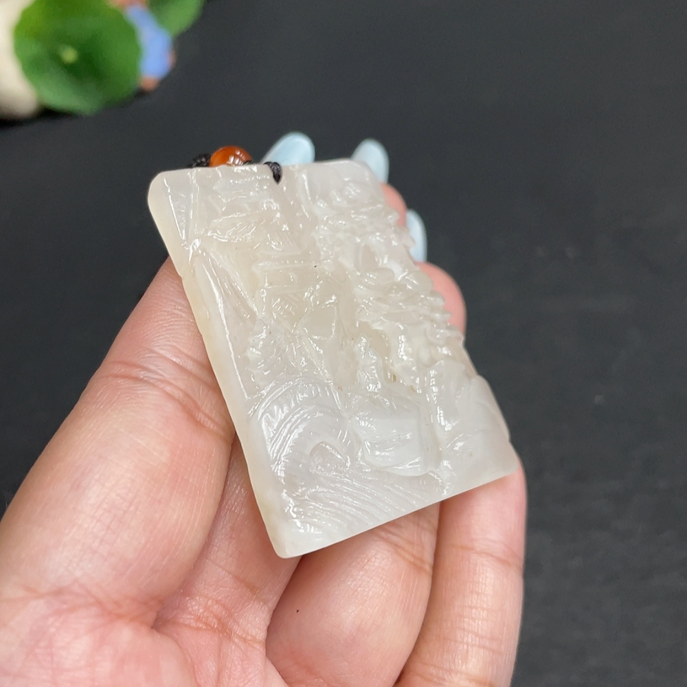 Hetian Jade Pendant - Landscape Plaque - Total Weight (including rope): 32.7g