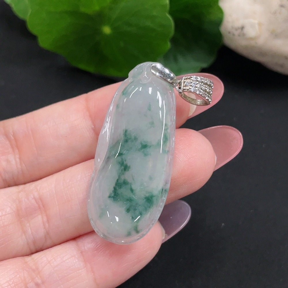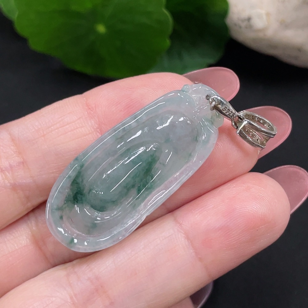 Jadeite Auspicious Gourd Pendant Total Weight Approx. 5.9g (Non-gold-inlaid)