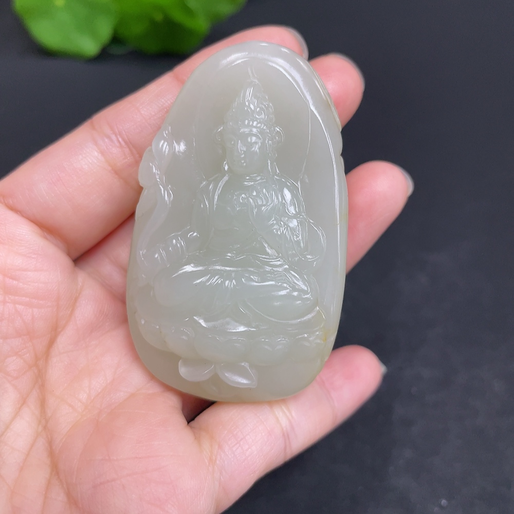 Hetian Jade Seed Material Pendant - Guanyin, Total Weight Approx. 45.7g, Undetermined Skin Color Origin