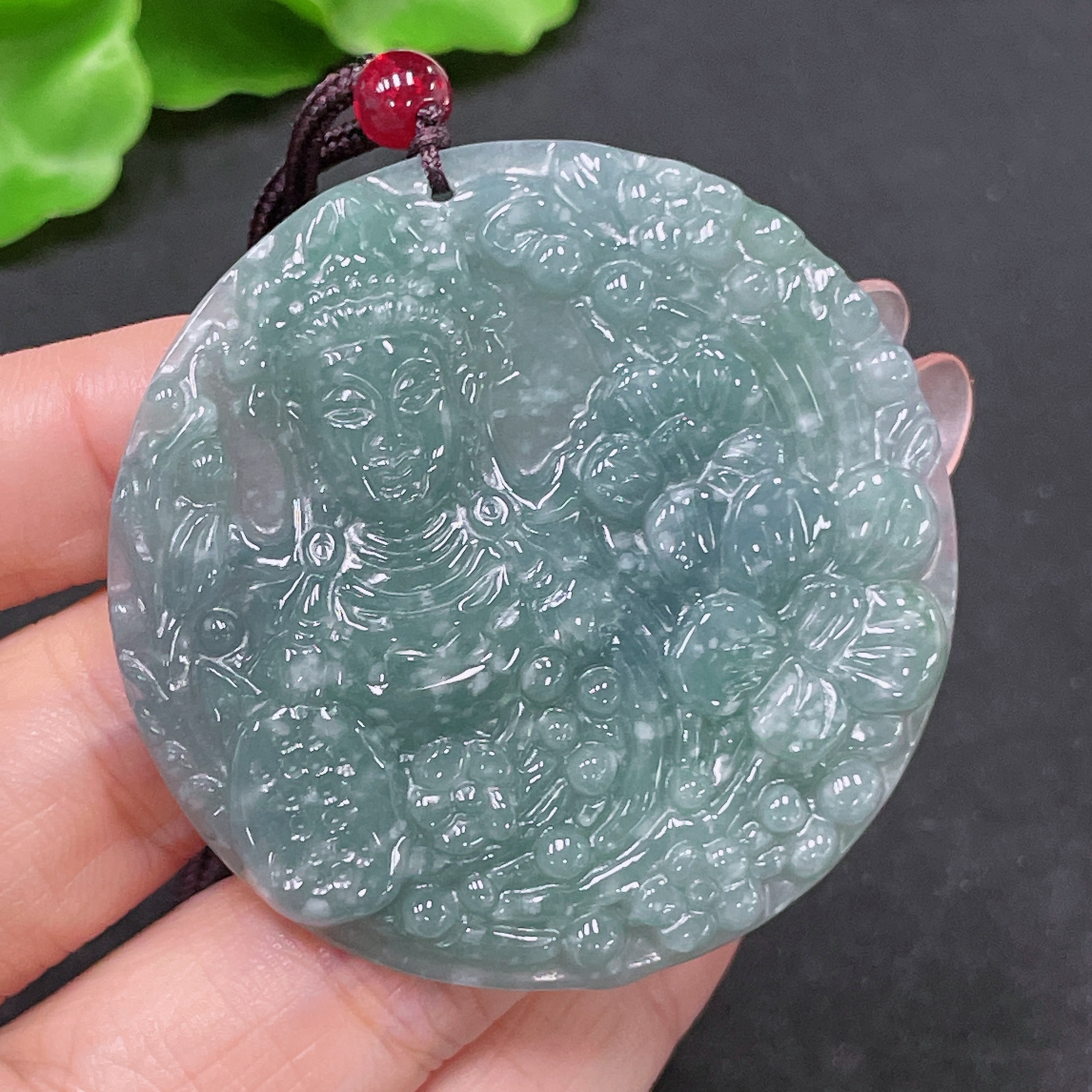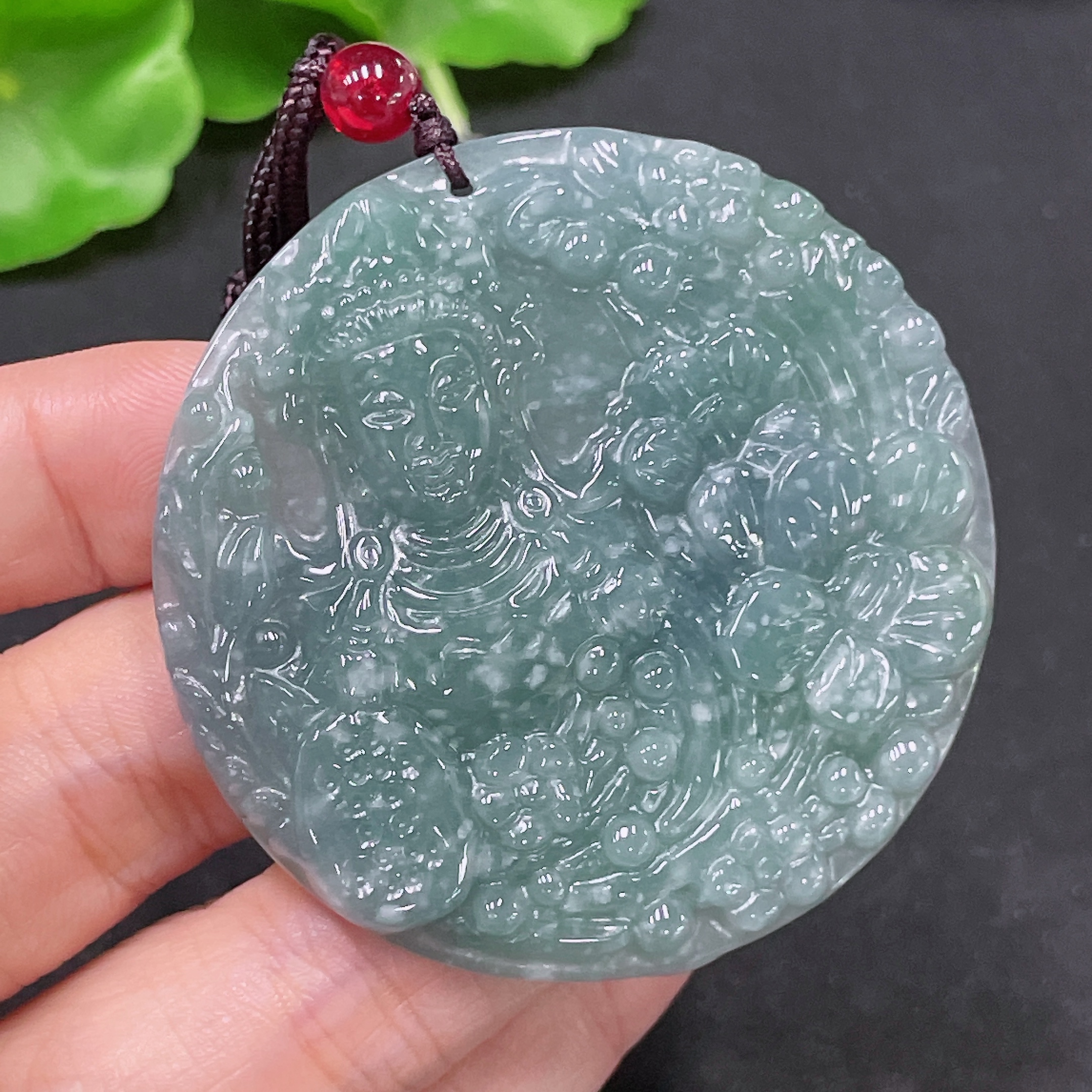 Jadeite Guanyin Pendant Gross Weight Approx. 26.08g (Including Rope)
