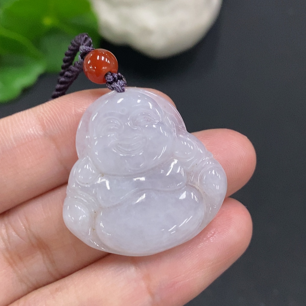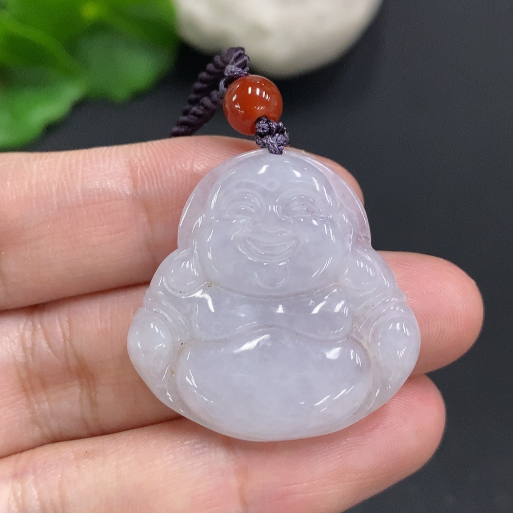 Jadeite Buddha Pendant Total Weight Including Rope Approximately 9.1g