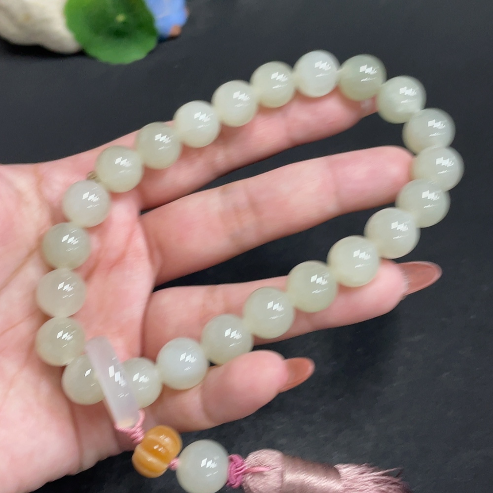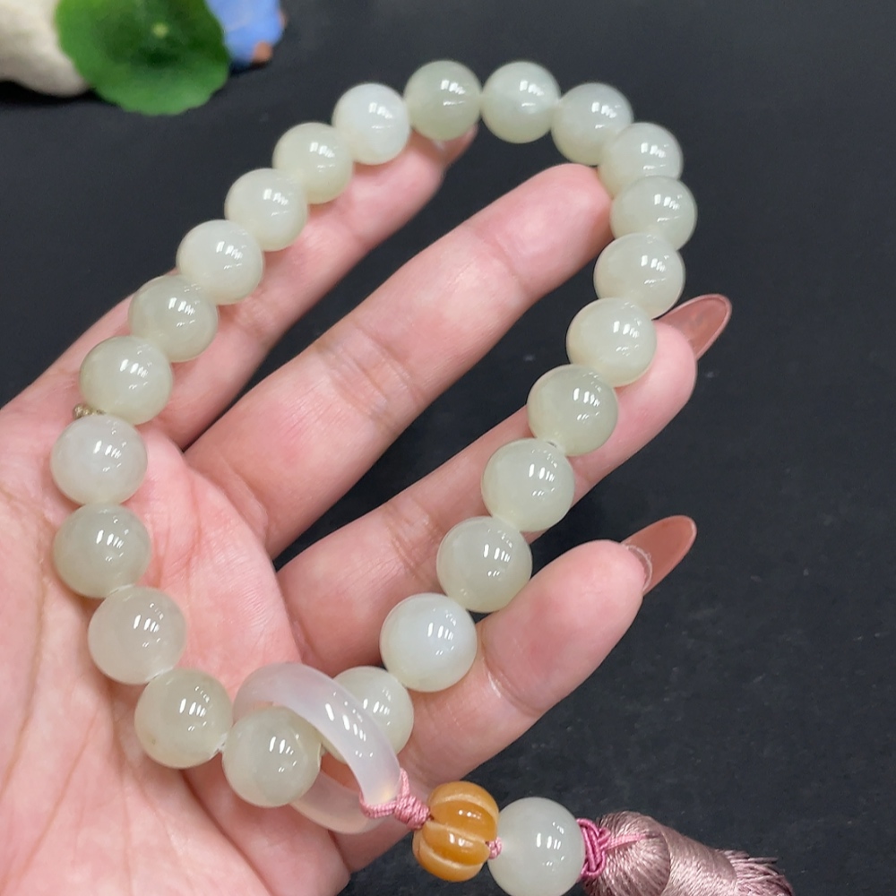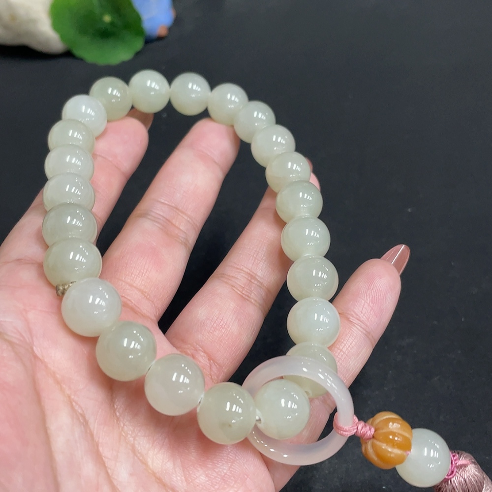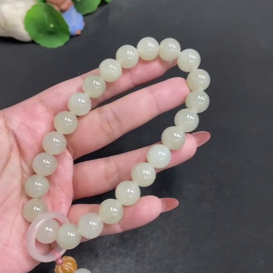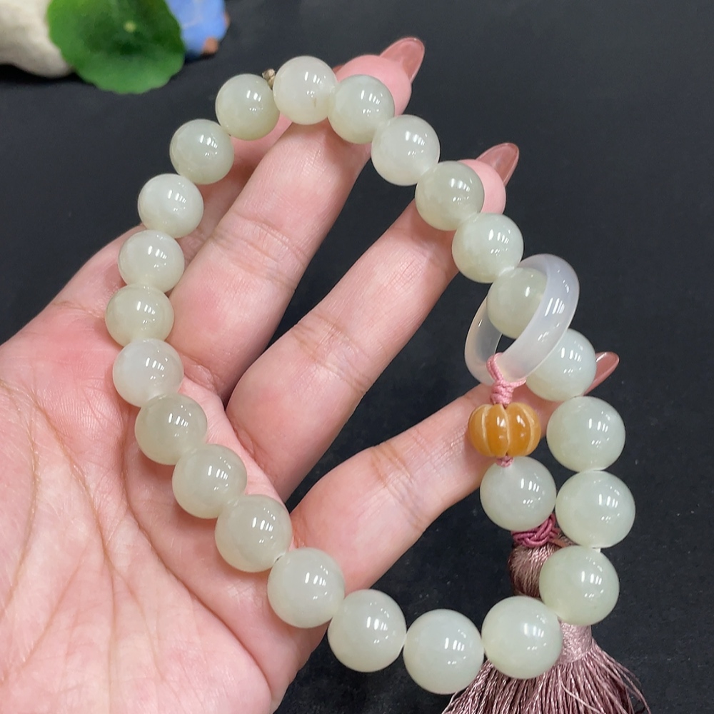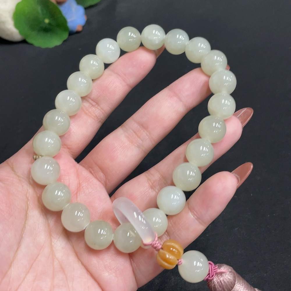 Hetian Jade Bracelet Approx. 11.6mm Beads Total Weight About 75.2g With Non-Hetian Jade Accents