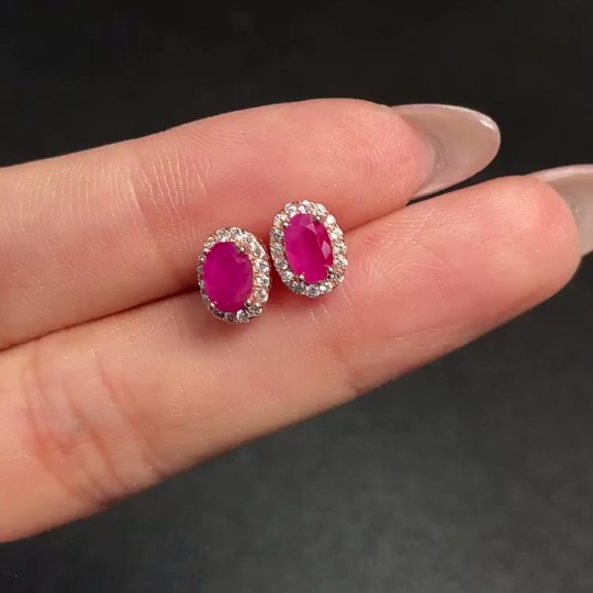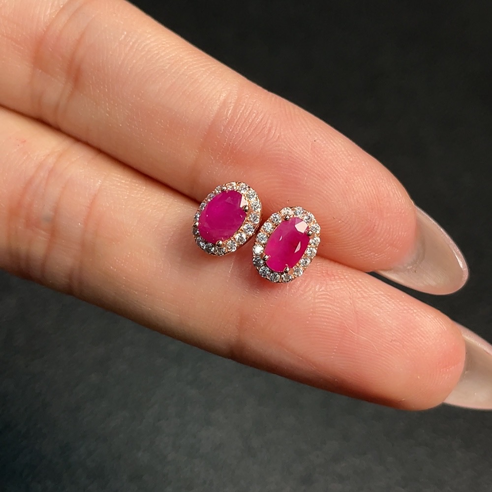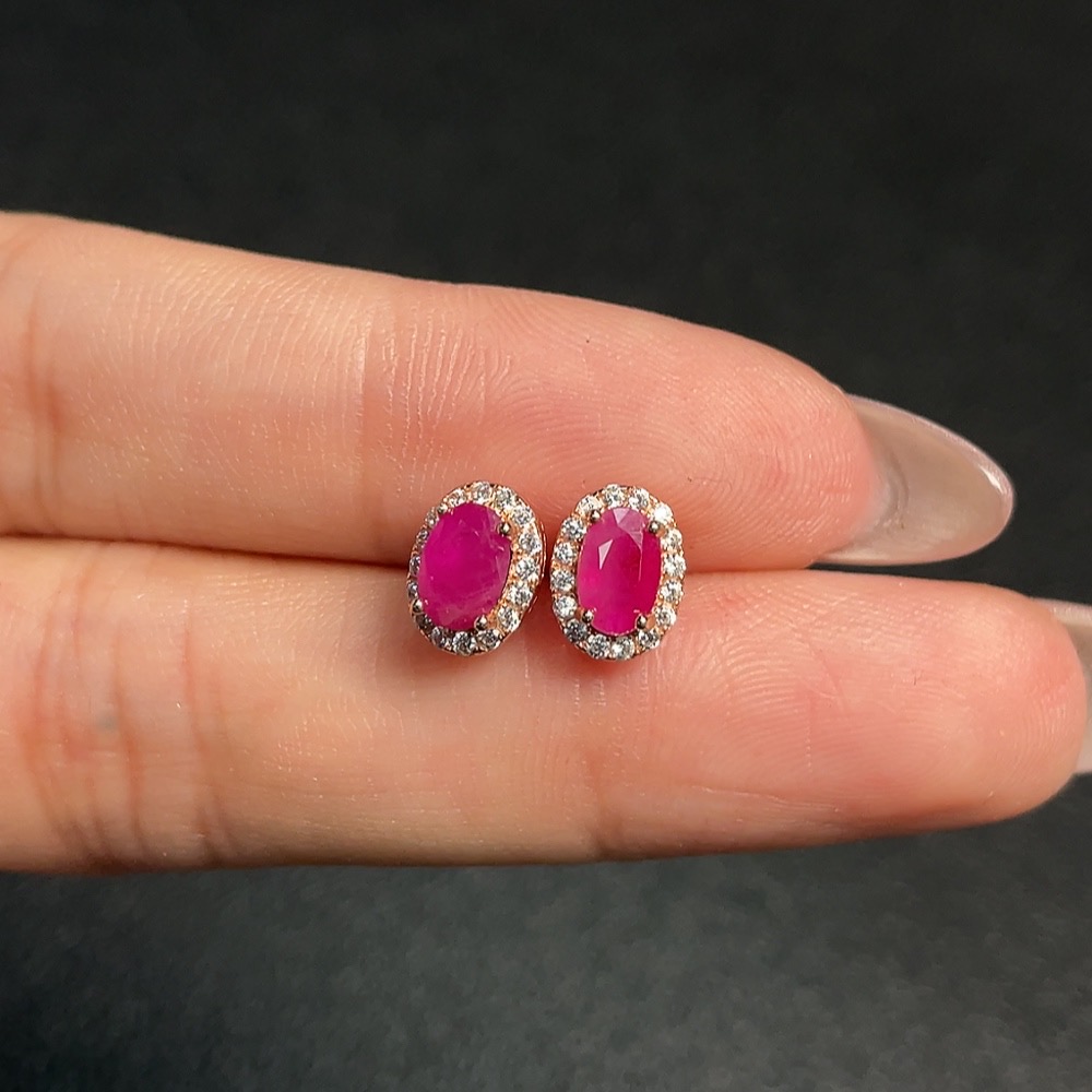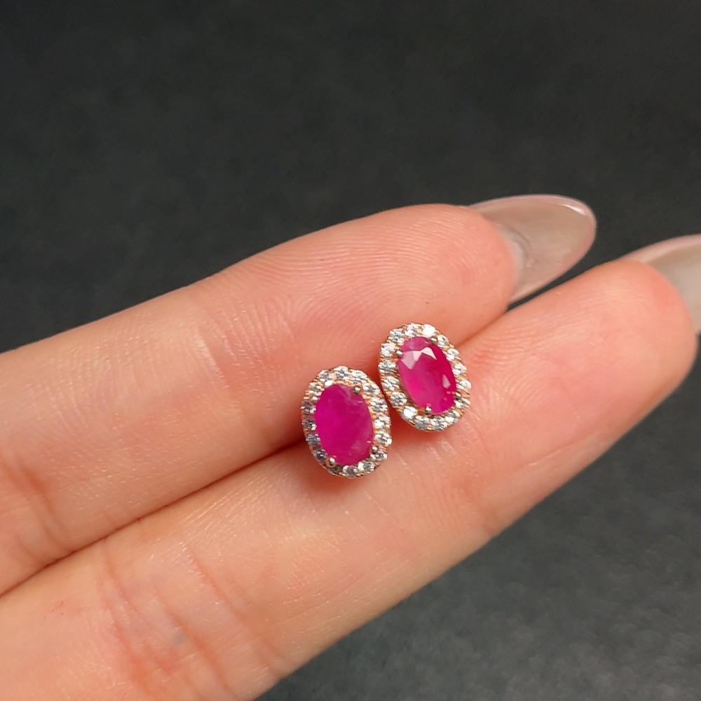 Ruby earrings non-gold total weight approx.1.19g stone size 5.4/3.4mm