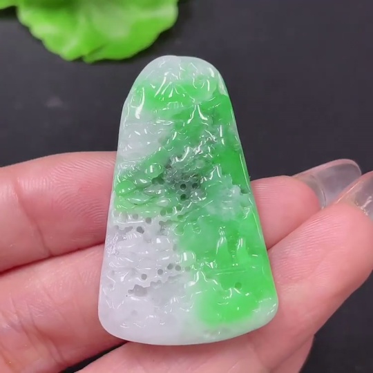 Jadeite Pendant Landscape Total Weight Approx. 14.76g Contains Other Mineral Components