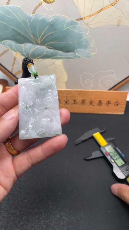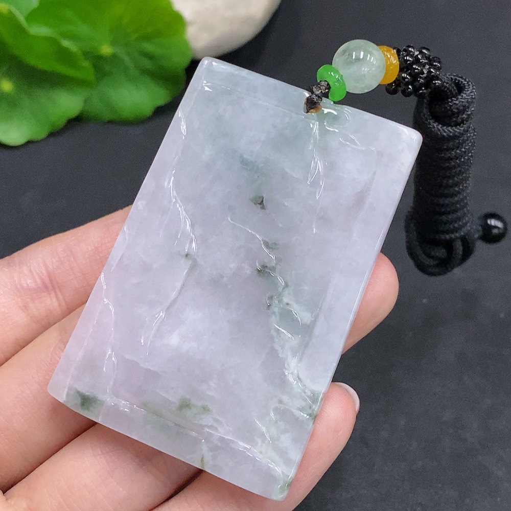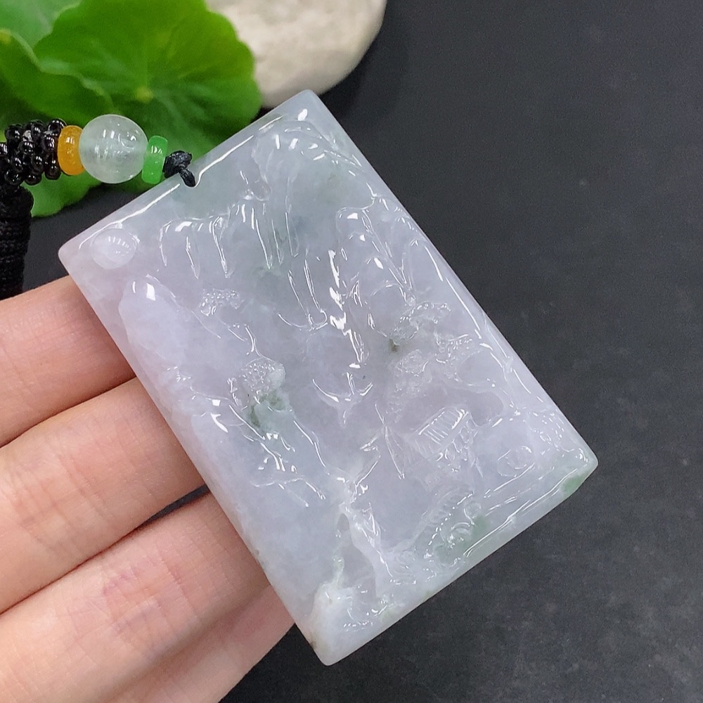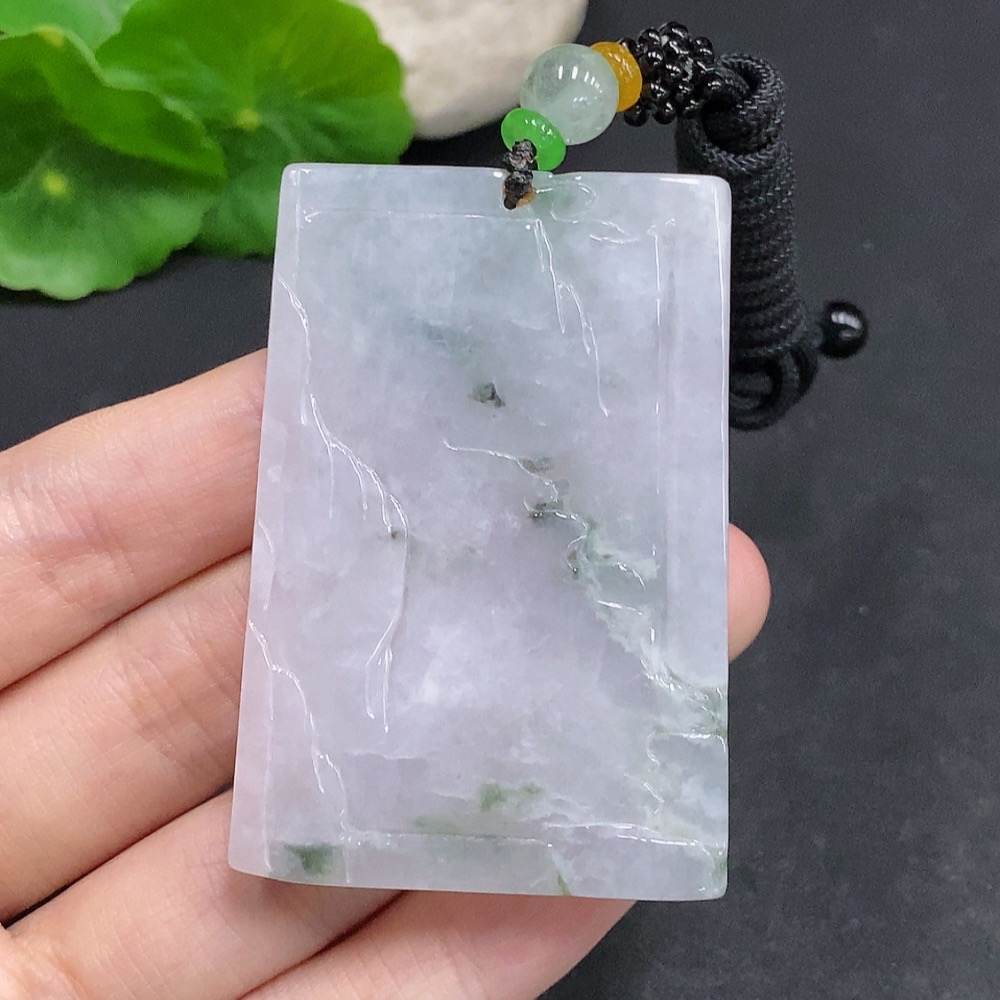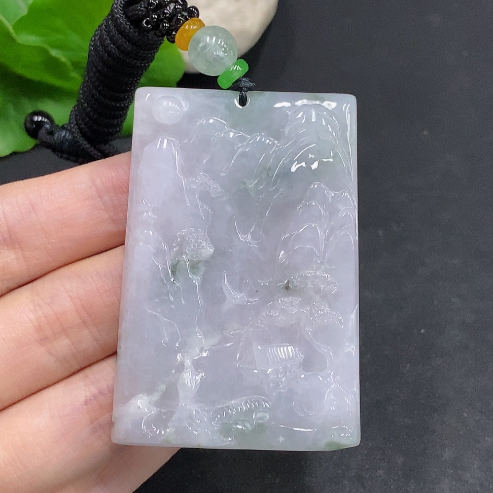 Jadeite Landscape Pendant with Non-Jadeite Beads, Total Weight Approximately 44.4g (Including Cord)