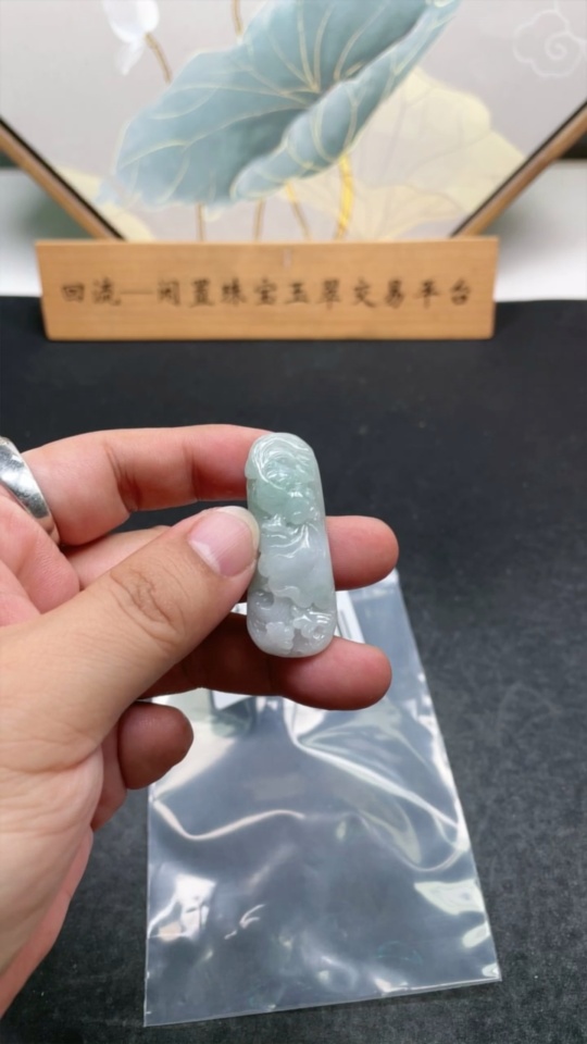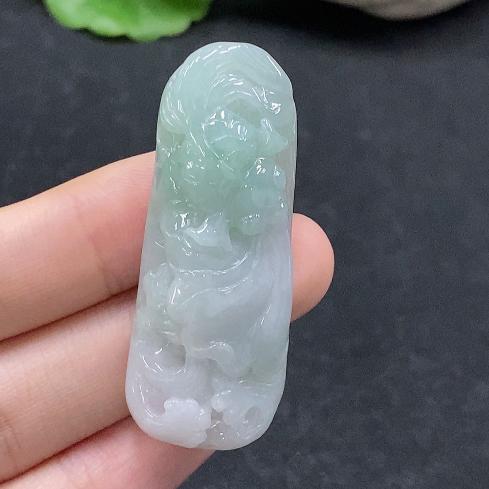 Jadeite Fish Pendant with Lotus Design, Total Weight Approx.13.26g
