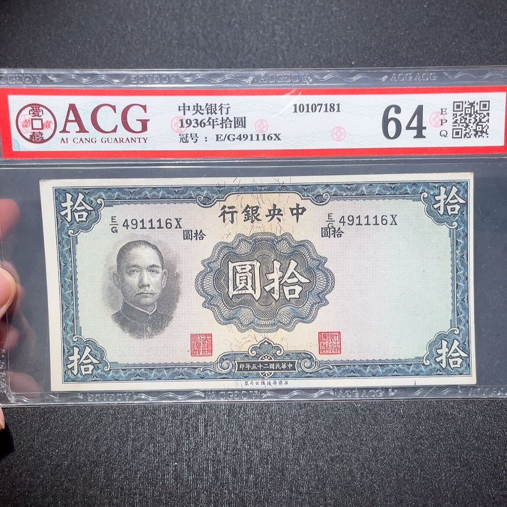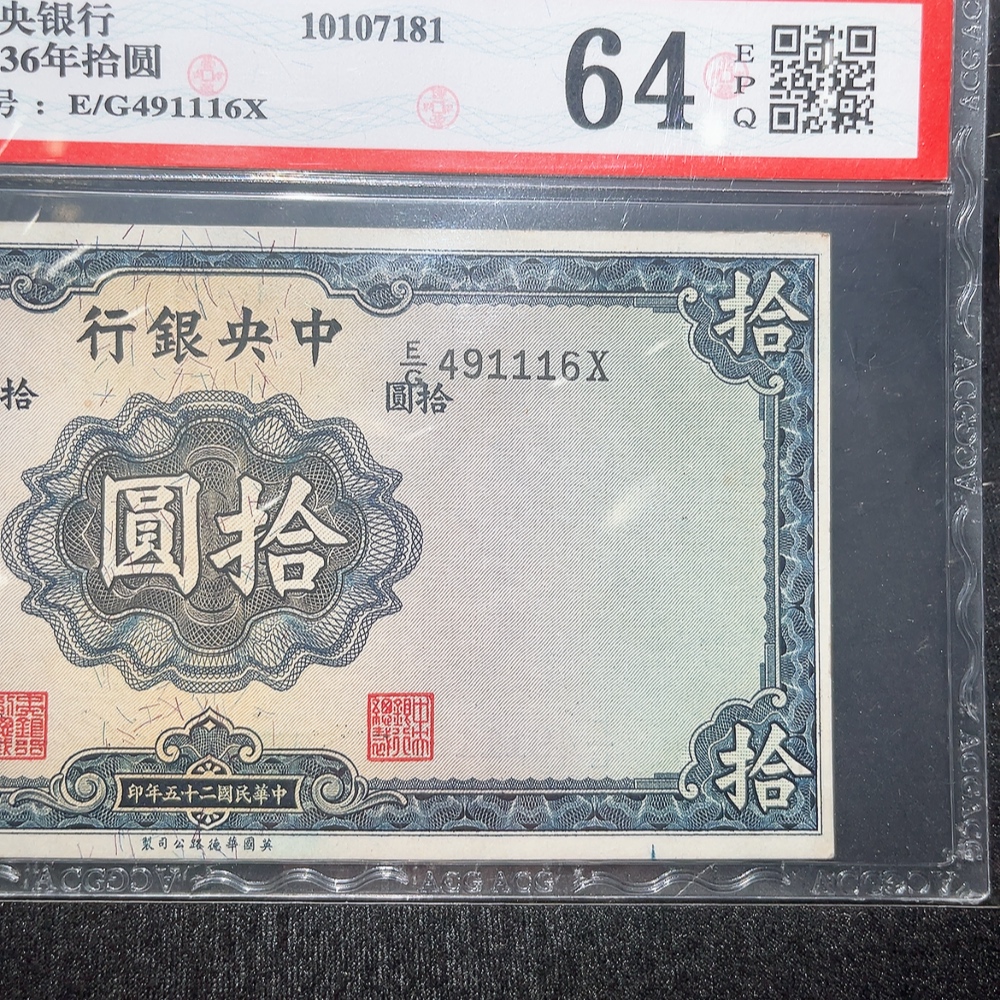 AICGS Graded 64 1936 Ten Yuan Banknote