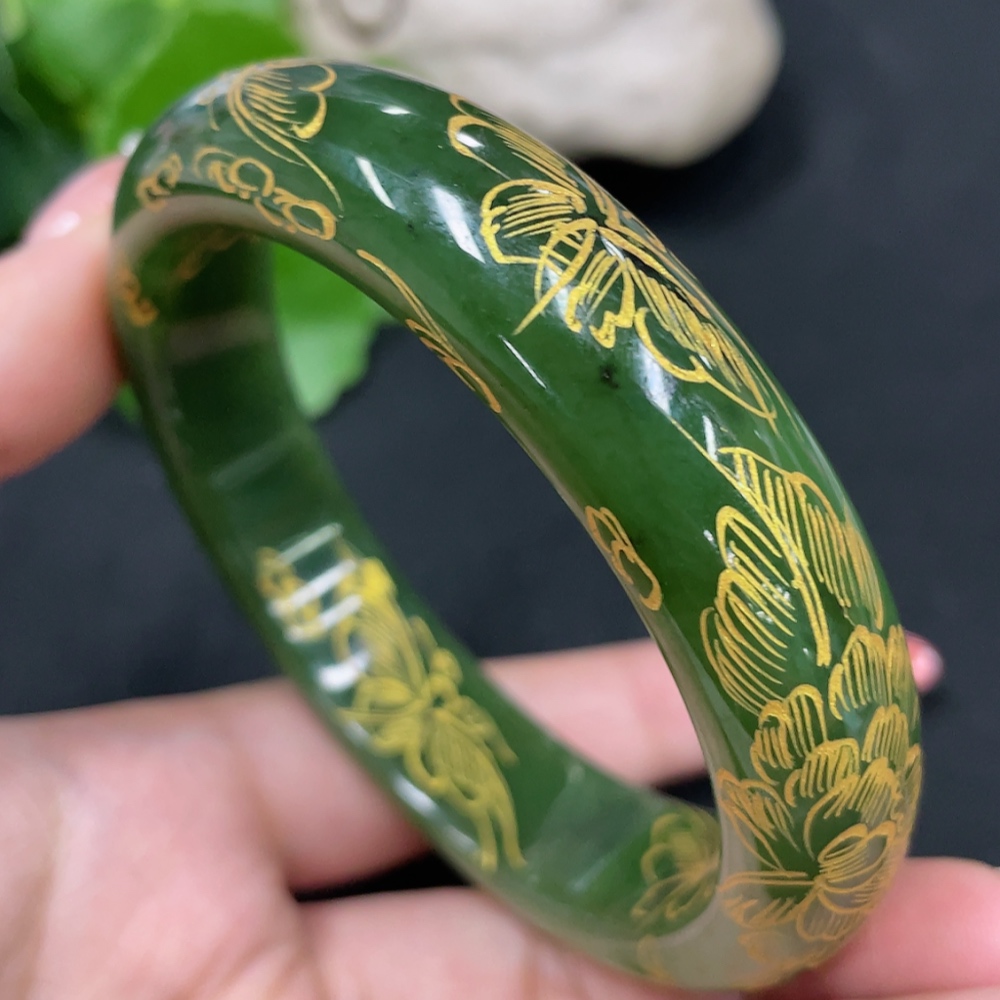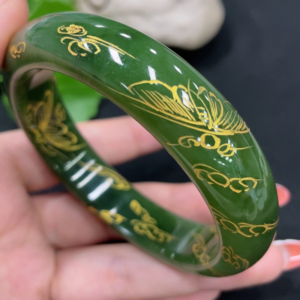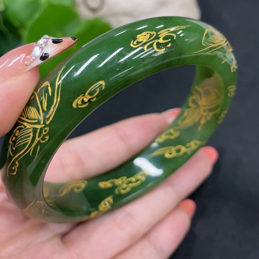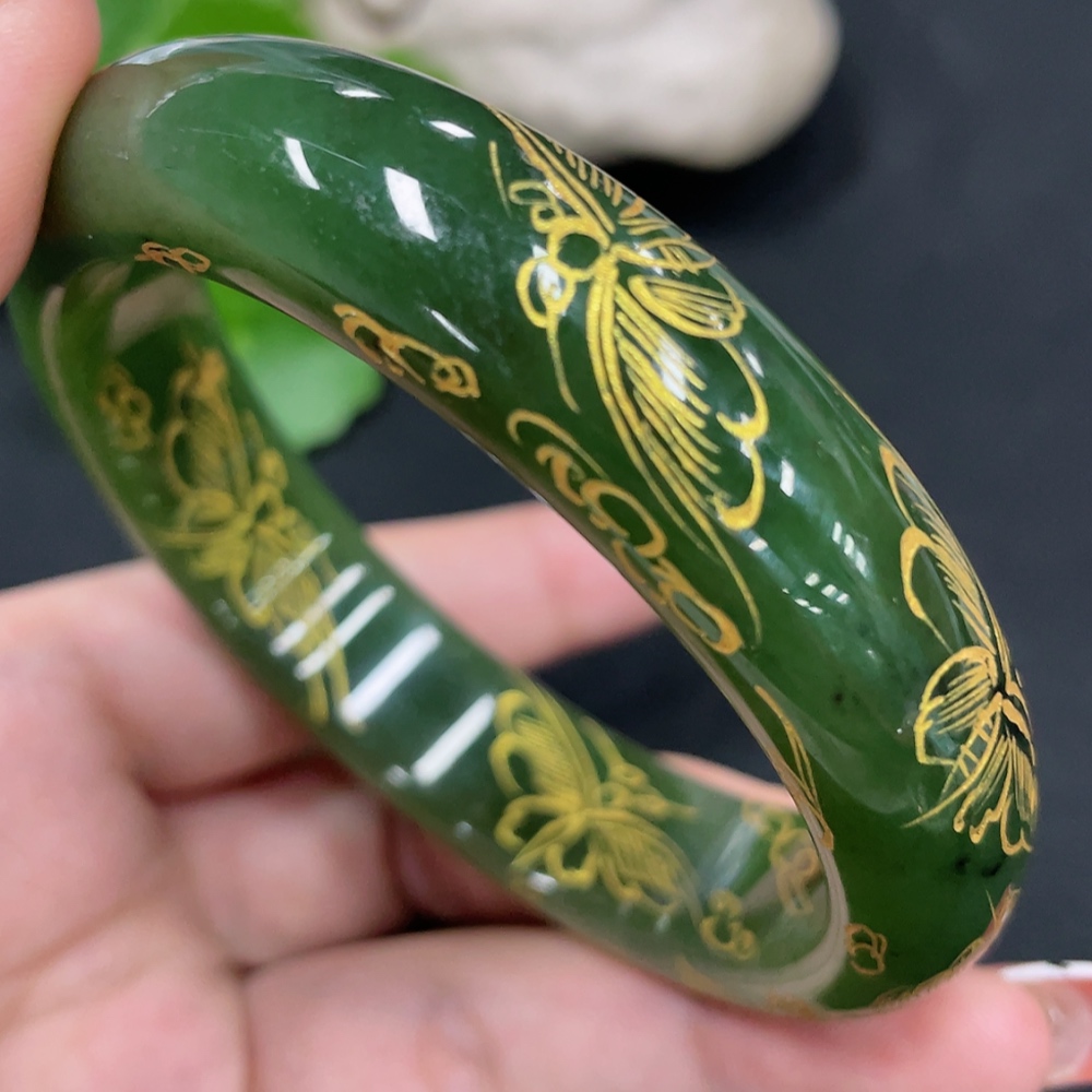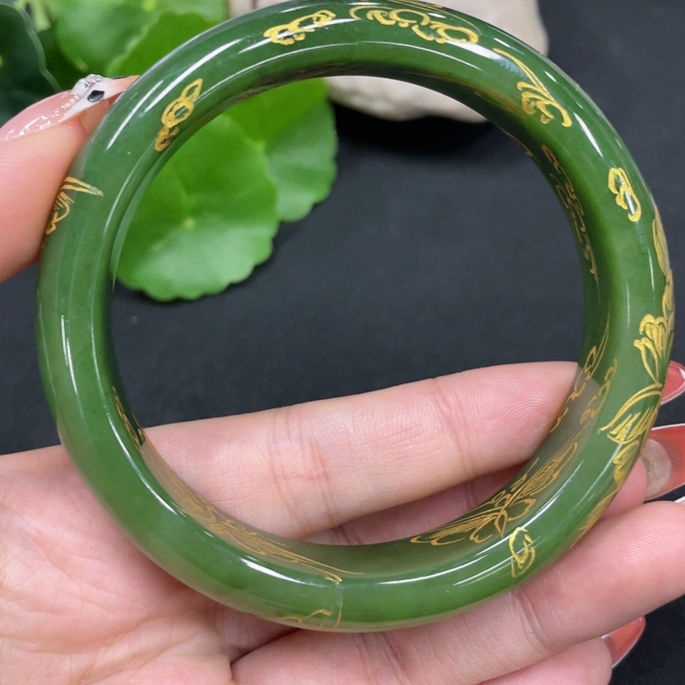 Hetian Jade Jasper Round Bracelet Size 62.4 Total Weight Approx. 72.9g