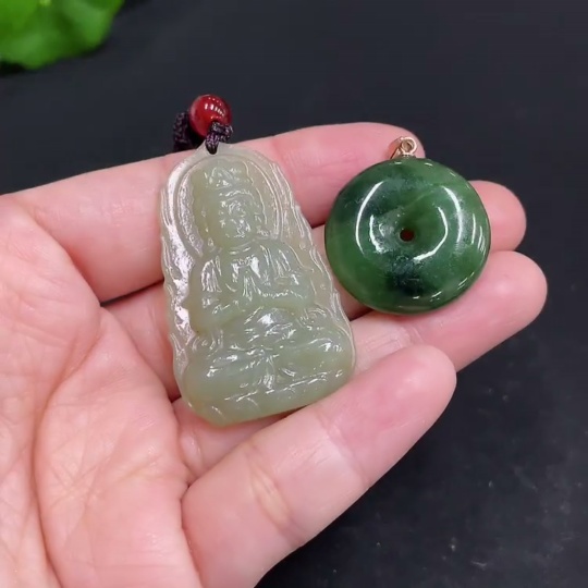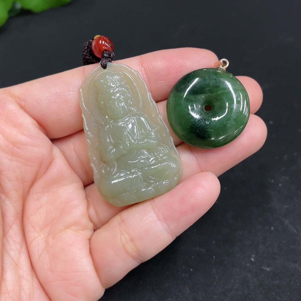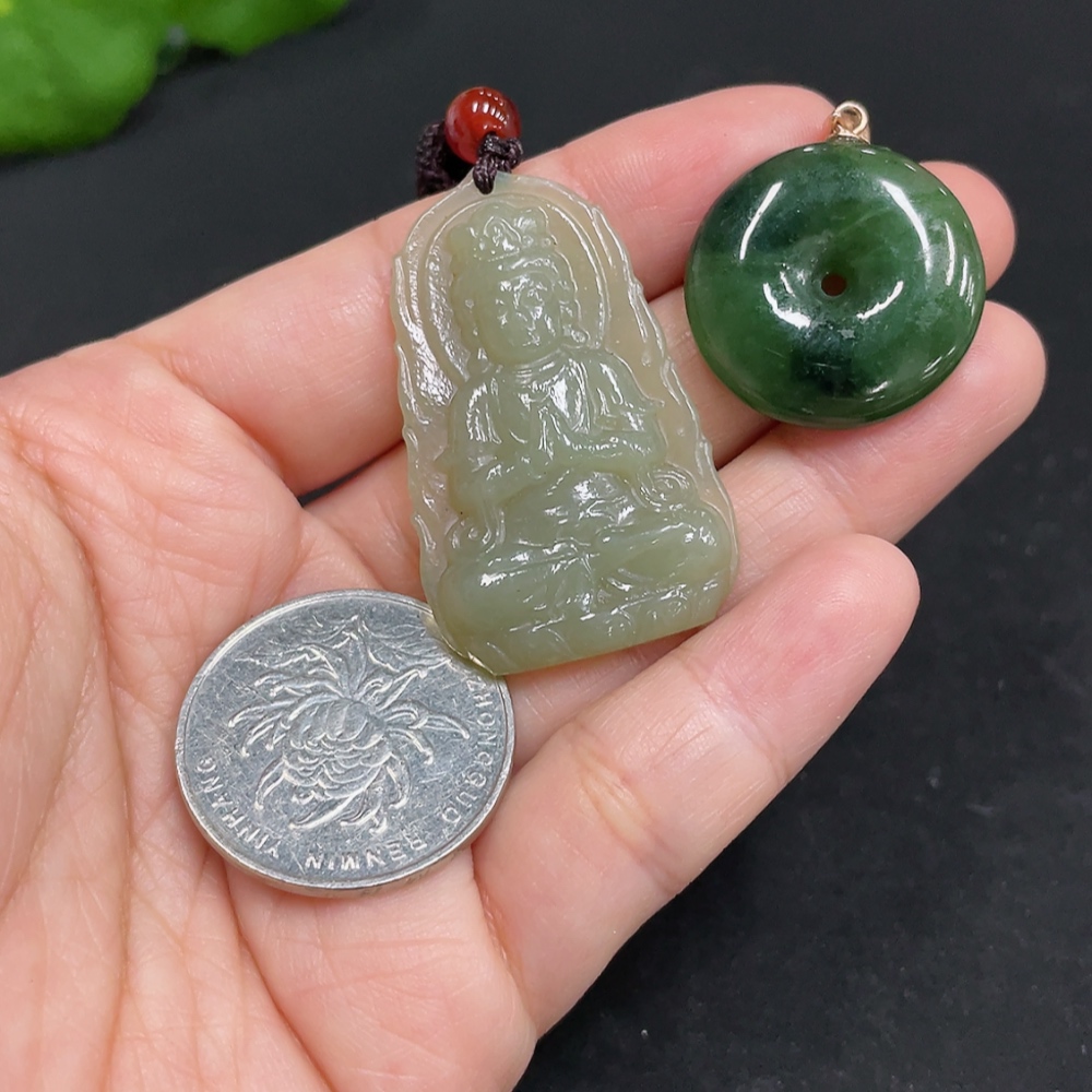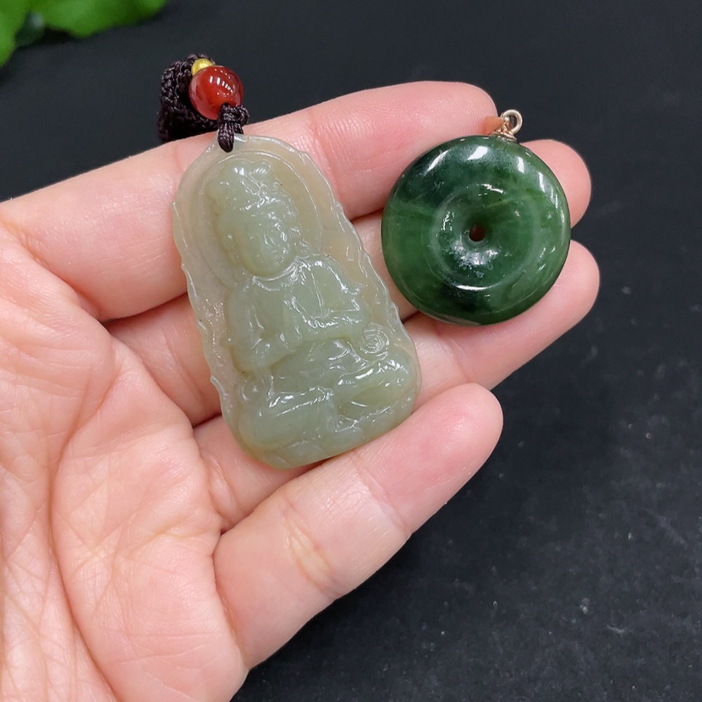 Hetian Jade Pendant Guanyin Peace Buckle Non-Gold Inlaid Total Weight (including rope) Approx. 13.6g