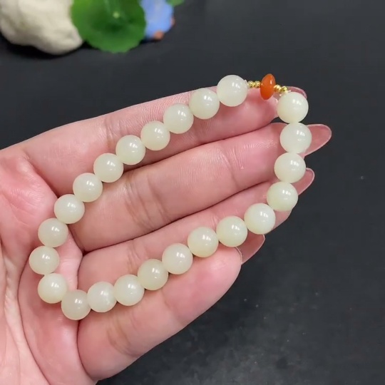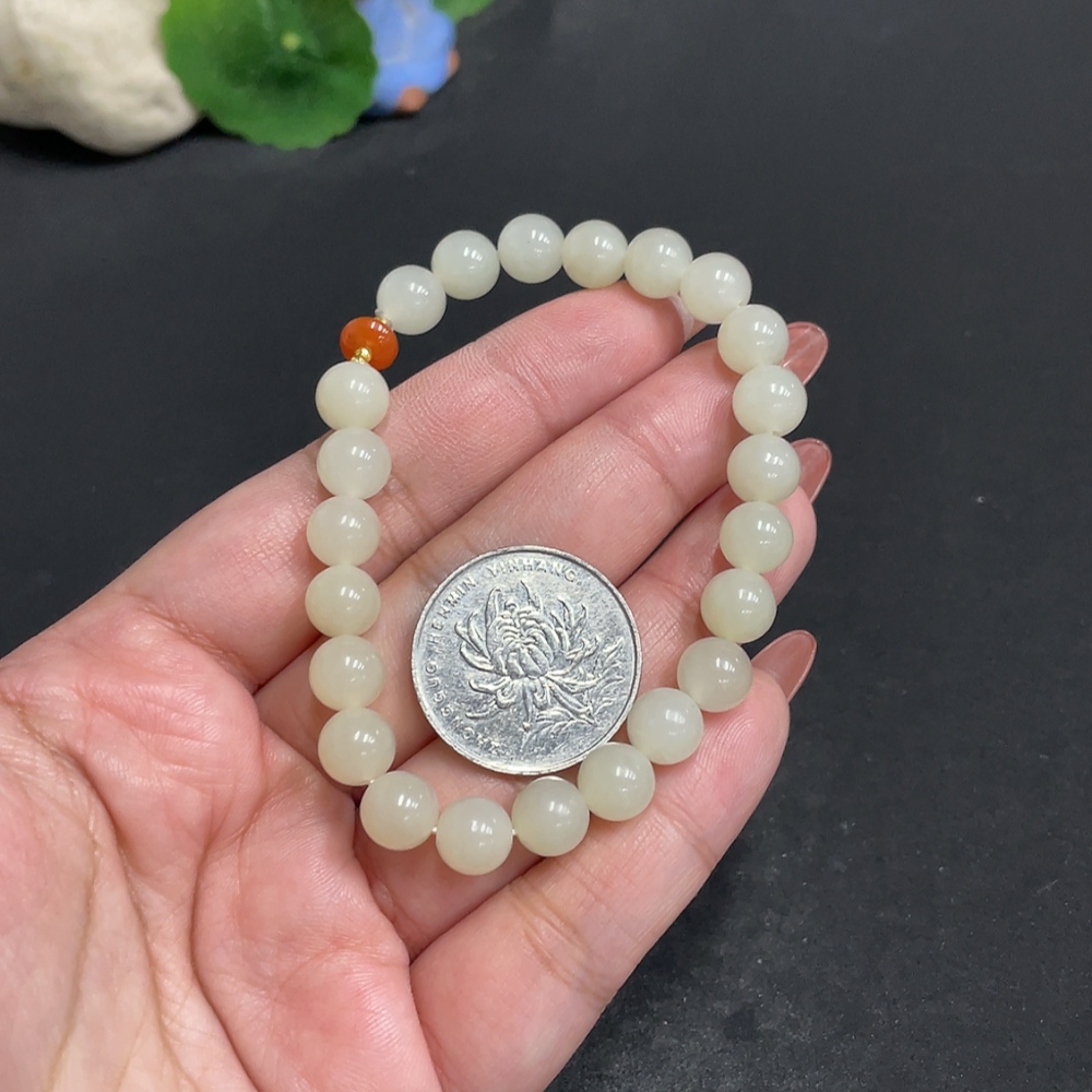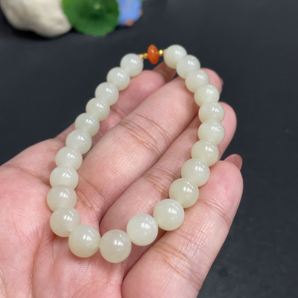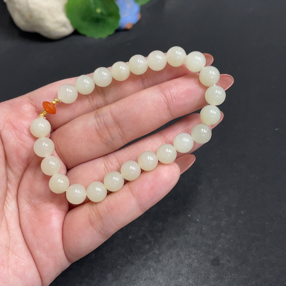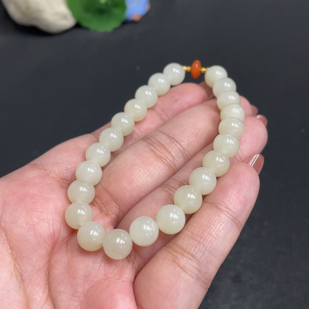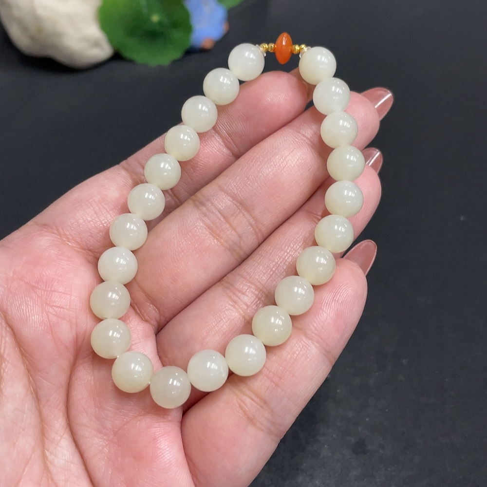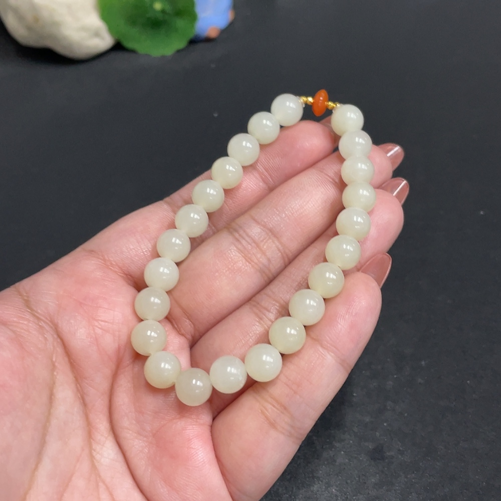 Hetian Jade Bracelet, Approx. 7.9mm, Total Weight Approx. 18.6g, Non-Hetian Jade Beads, Non-Gold
