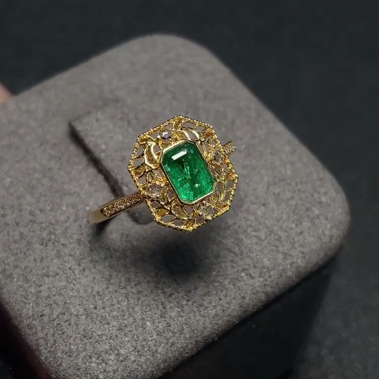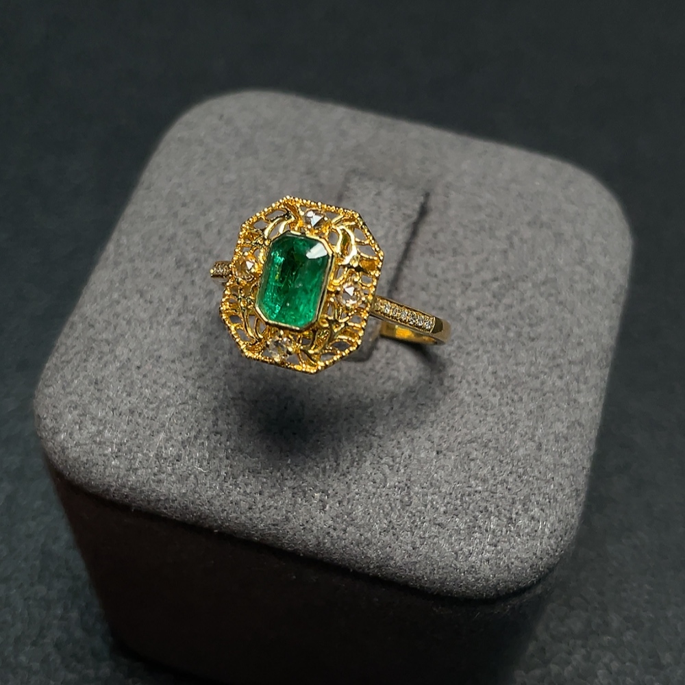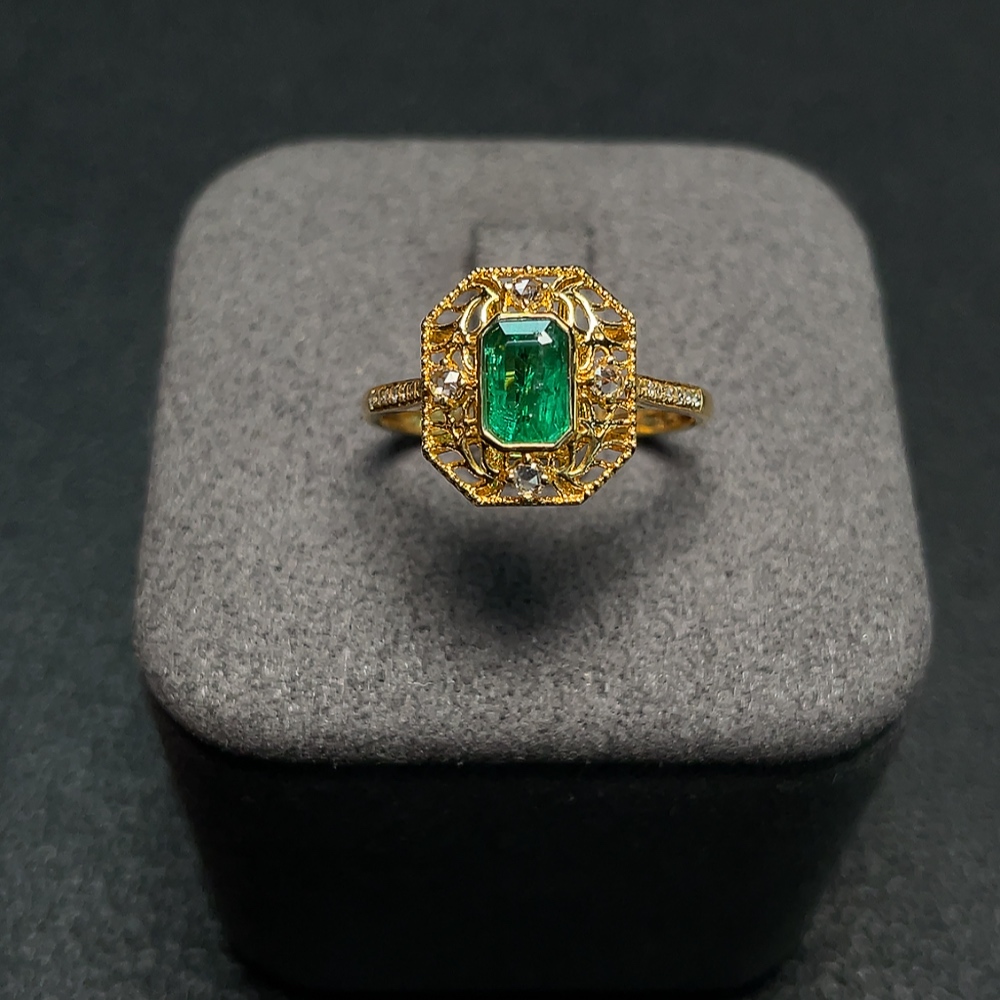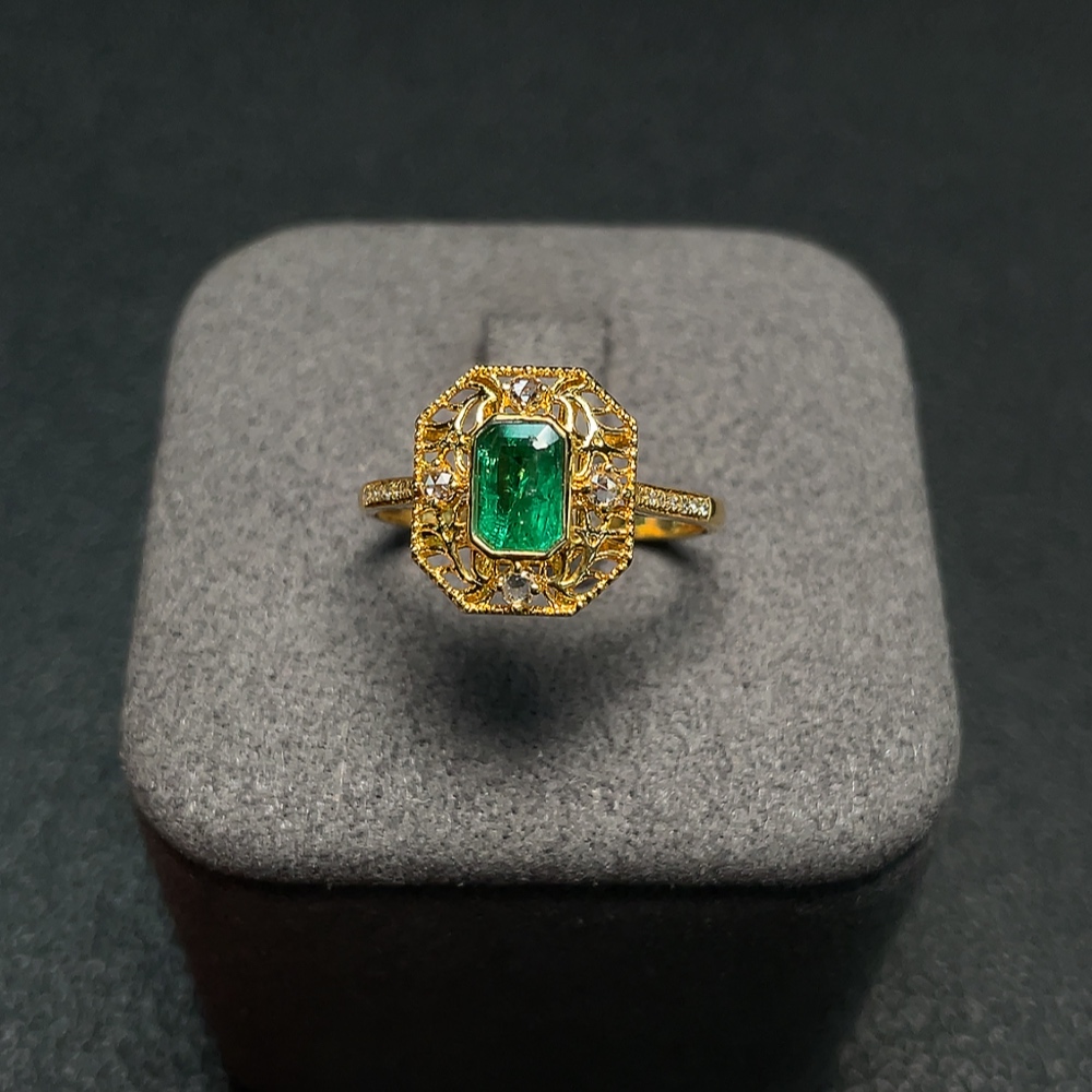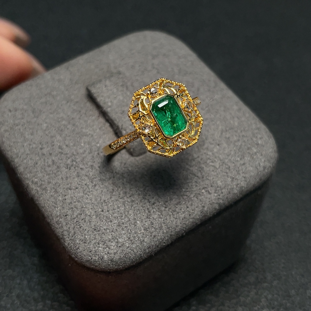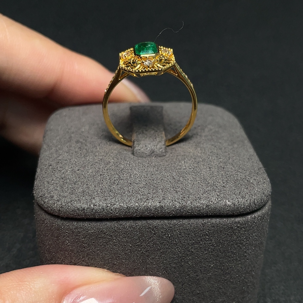 Emerald Ring 18K Gold Clarity Enhanced with Minimum Diamond Accents Total Weight Approx. 1.88g Size 15.5 Carat 5.1*3.2mm