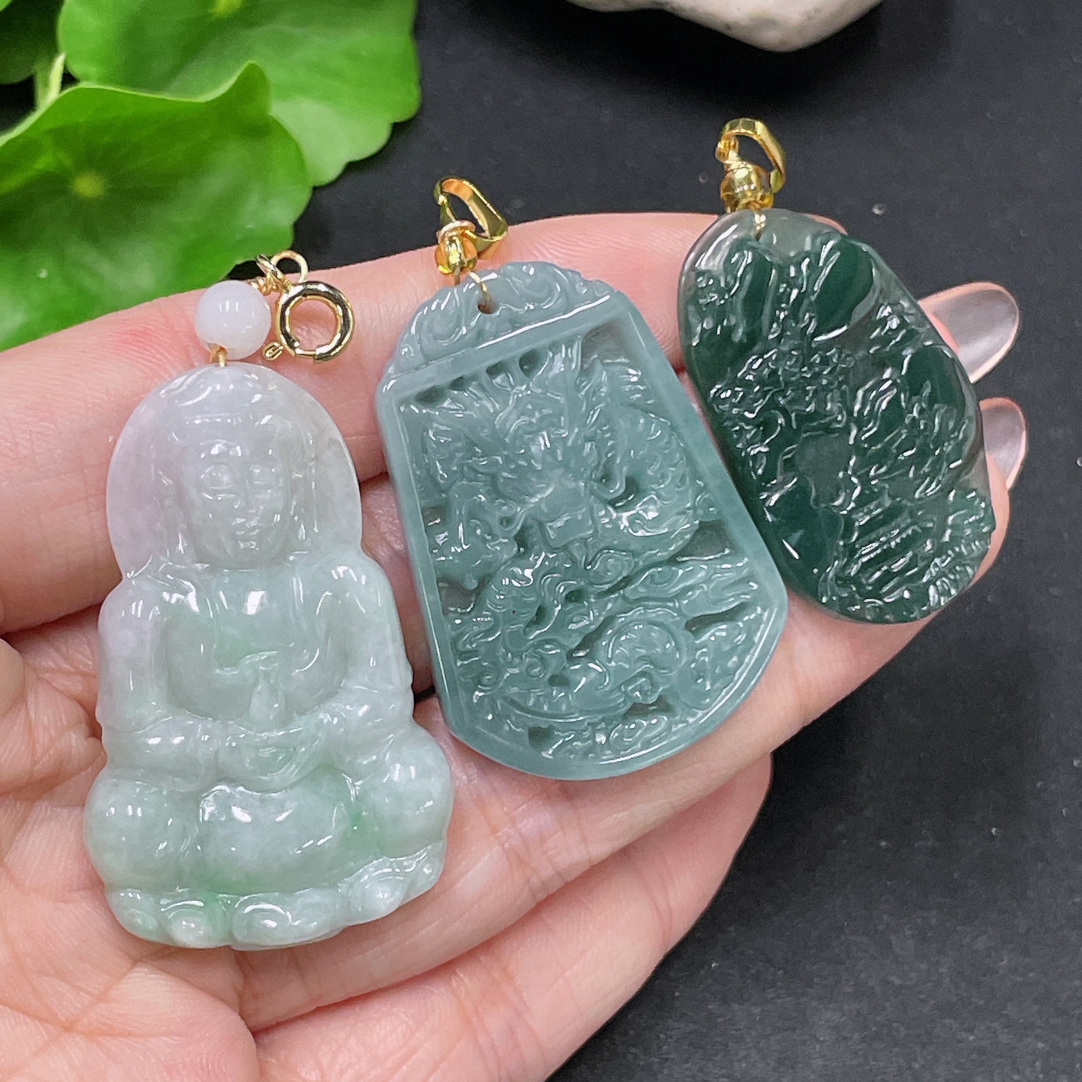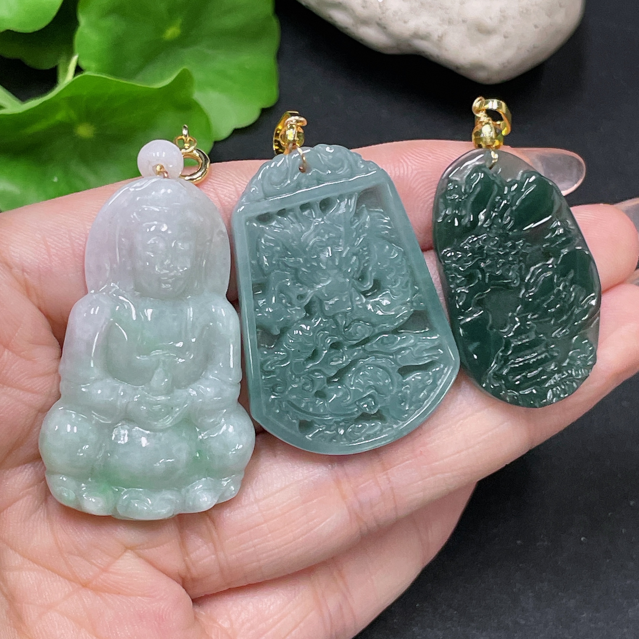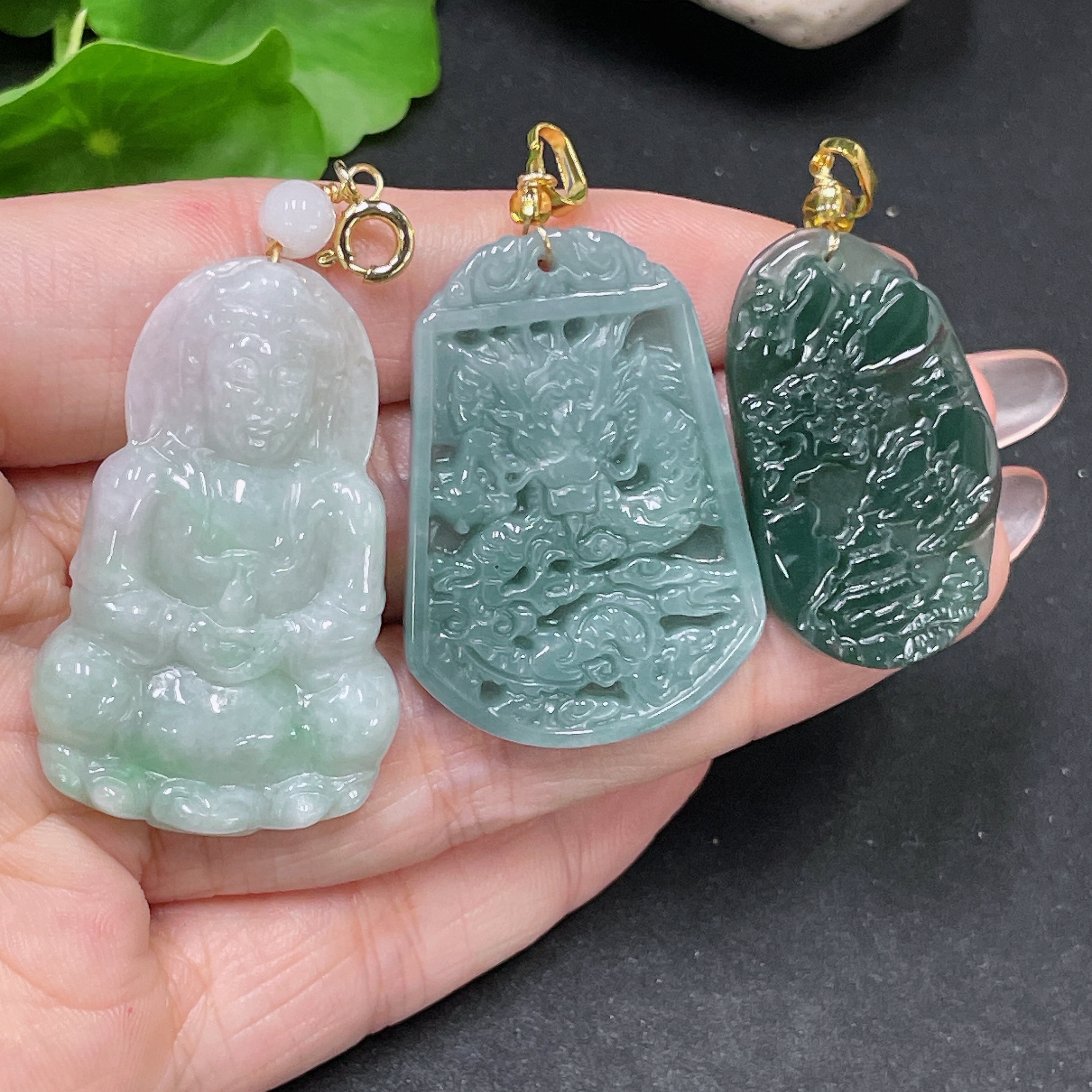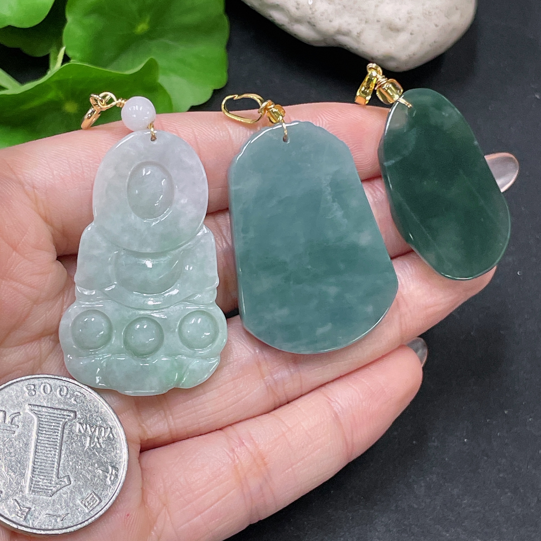 Trezaar - Jadeite Pendants Sell as a Lot Non-Gold