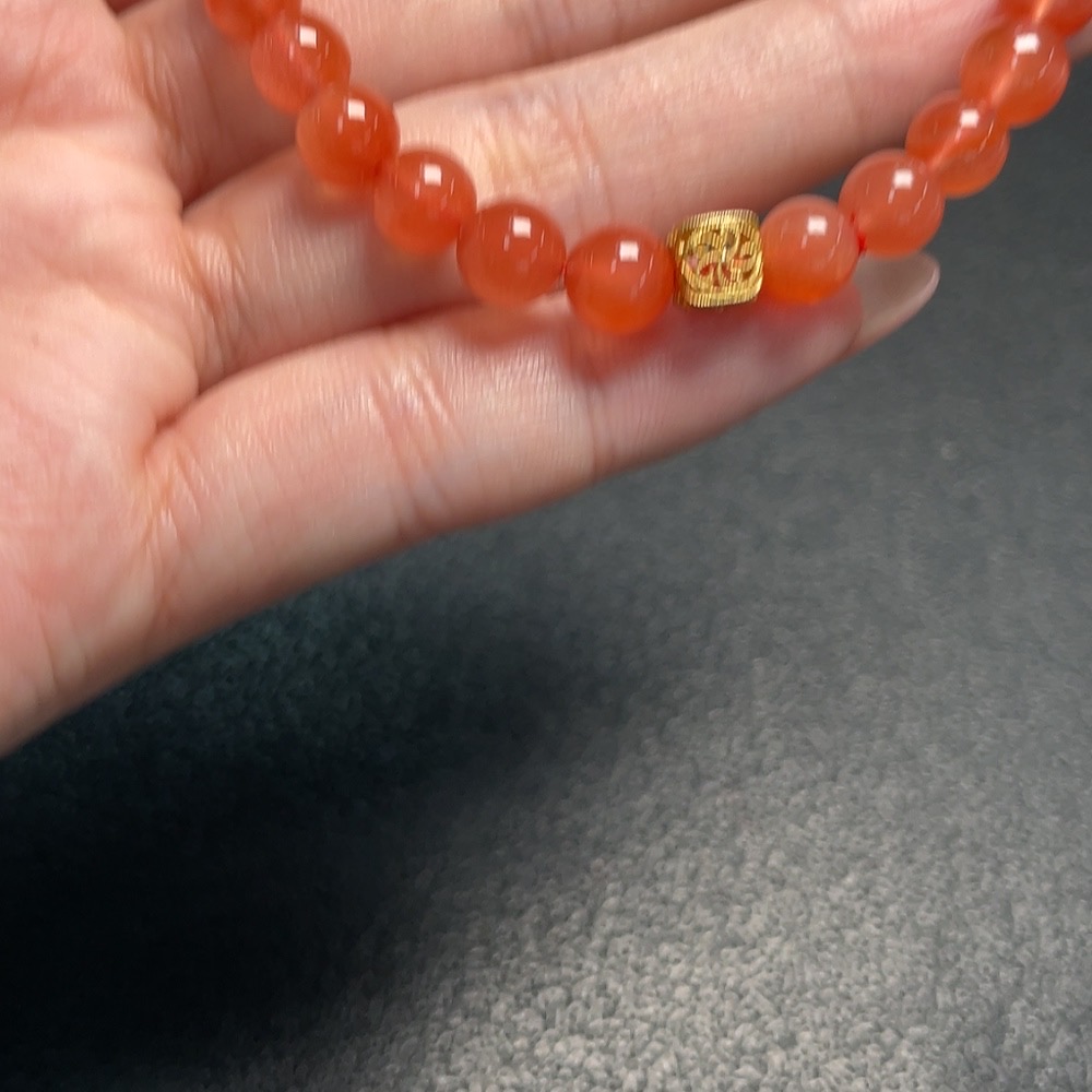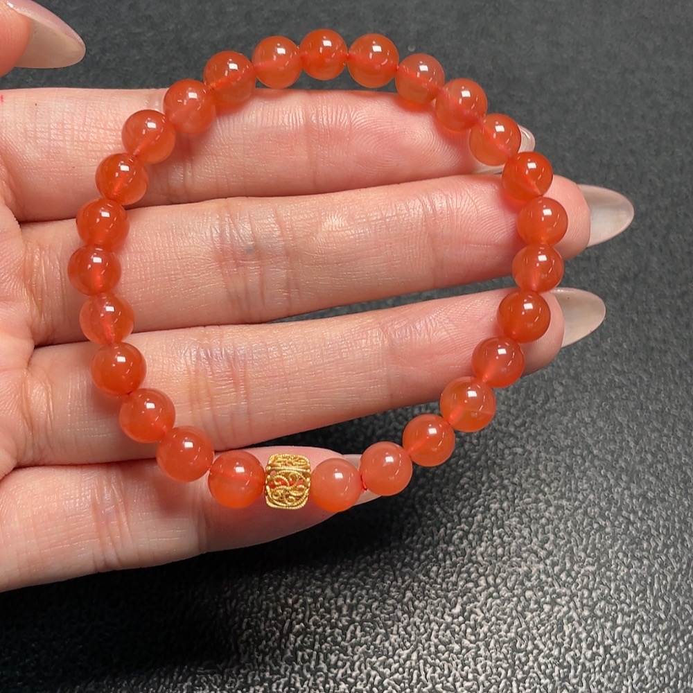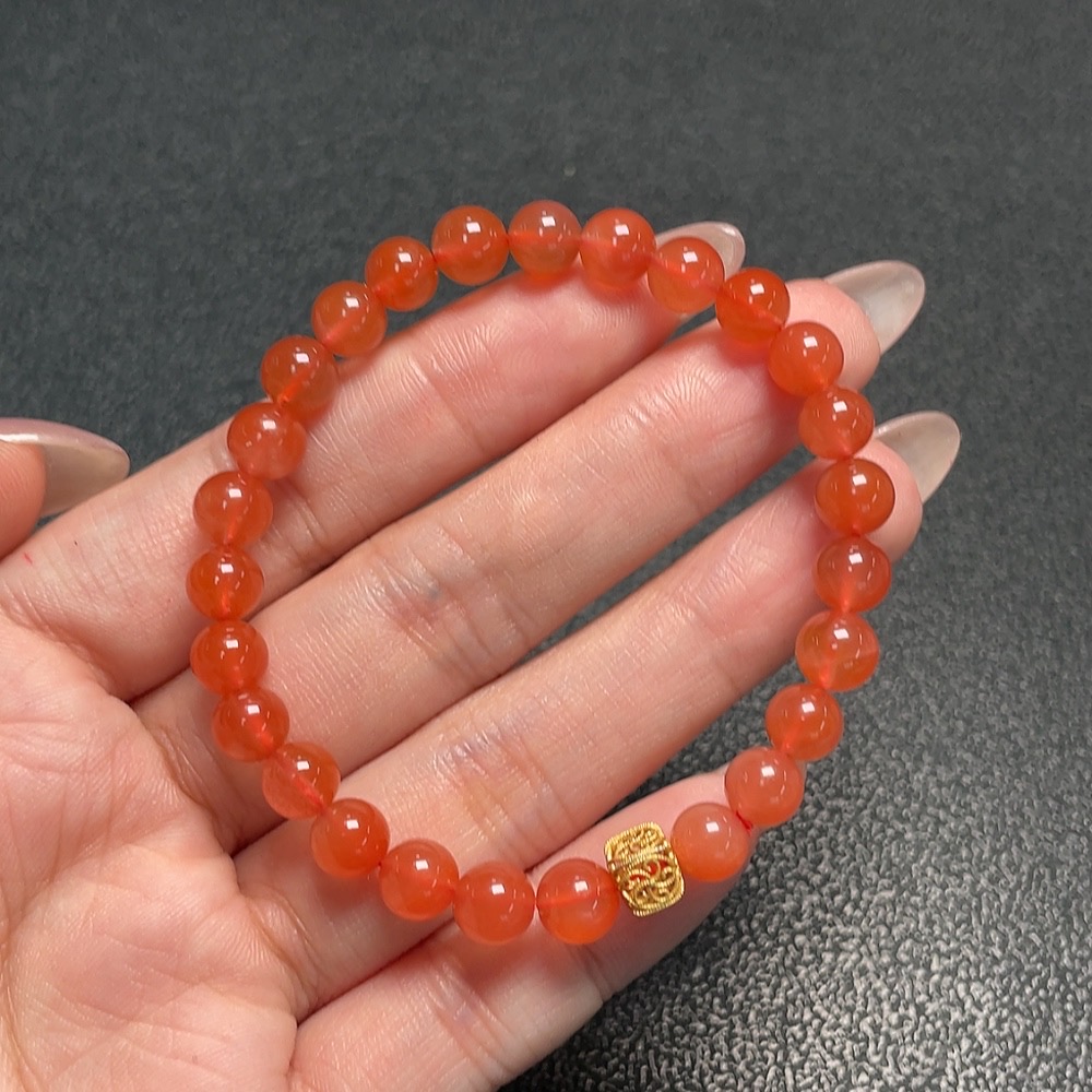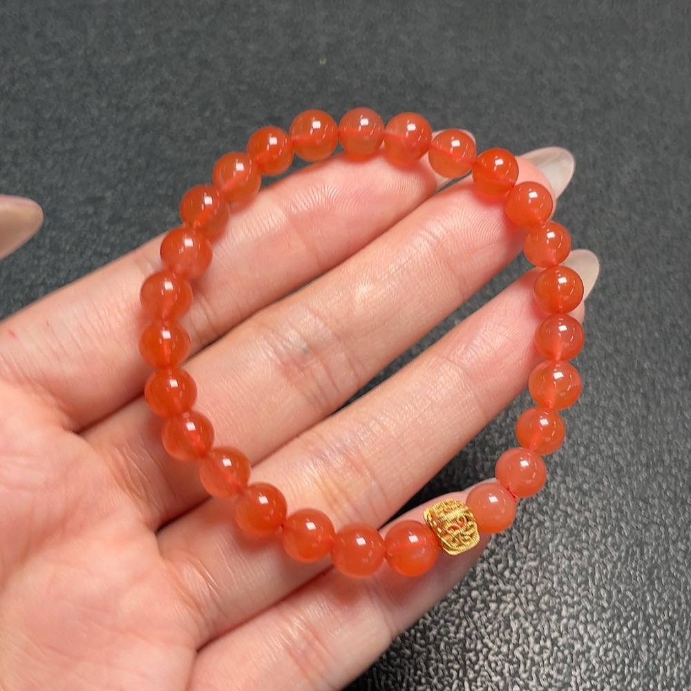 South Red Agate Bracelet with Visible Organic Matter, Non-Gold, Total Weight Approx. 10.8g, Size About 6.4mm