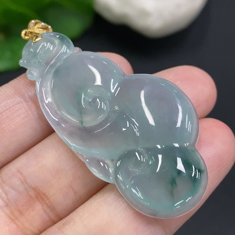 Jadeite Ruyi Pendant with 18K Gold Clasp, Total Weight Approx. 8.3g (Diamond Accented)