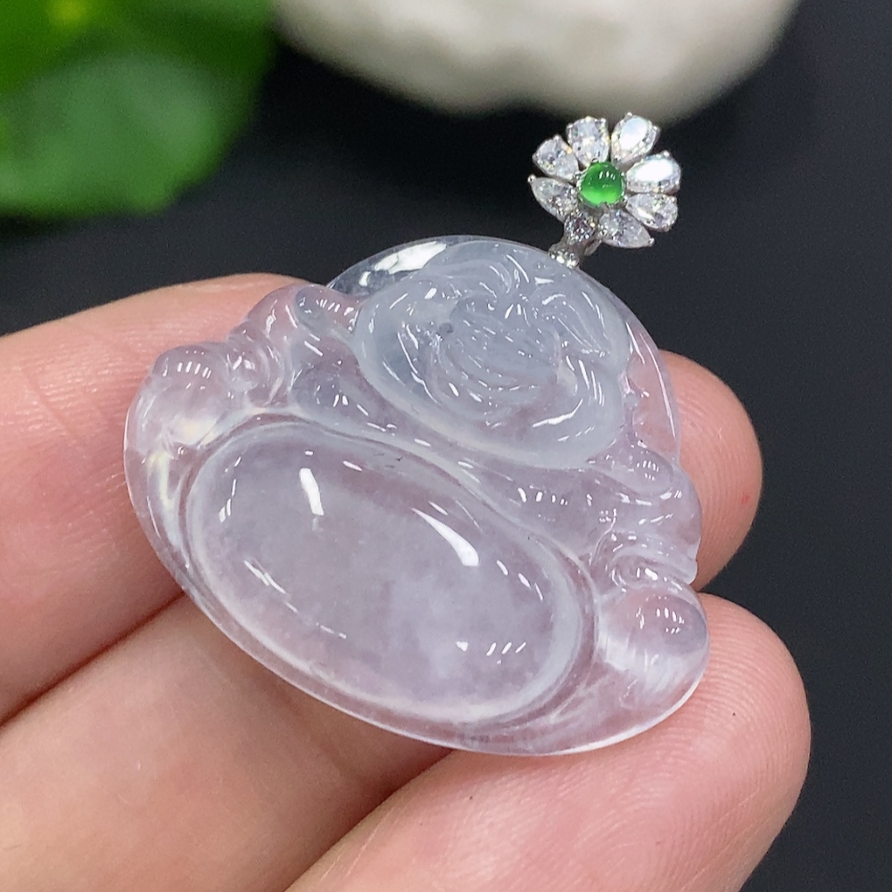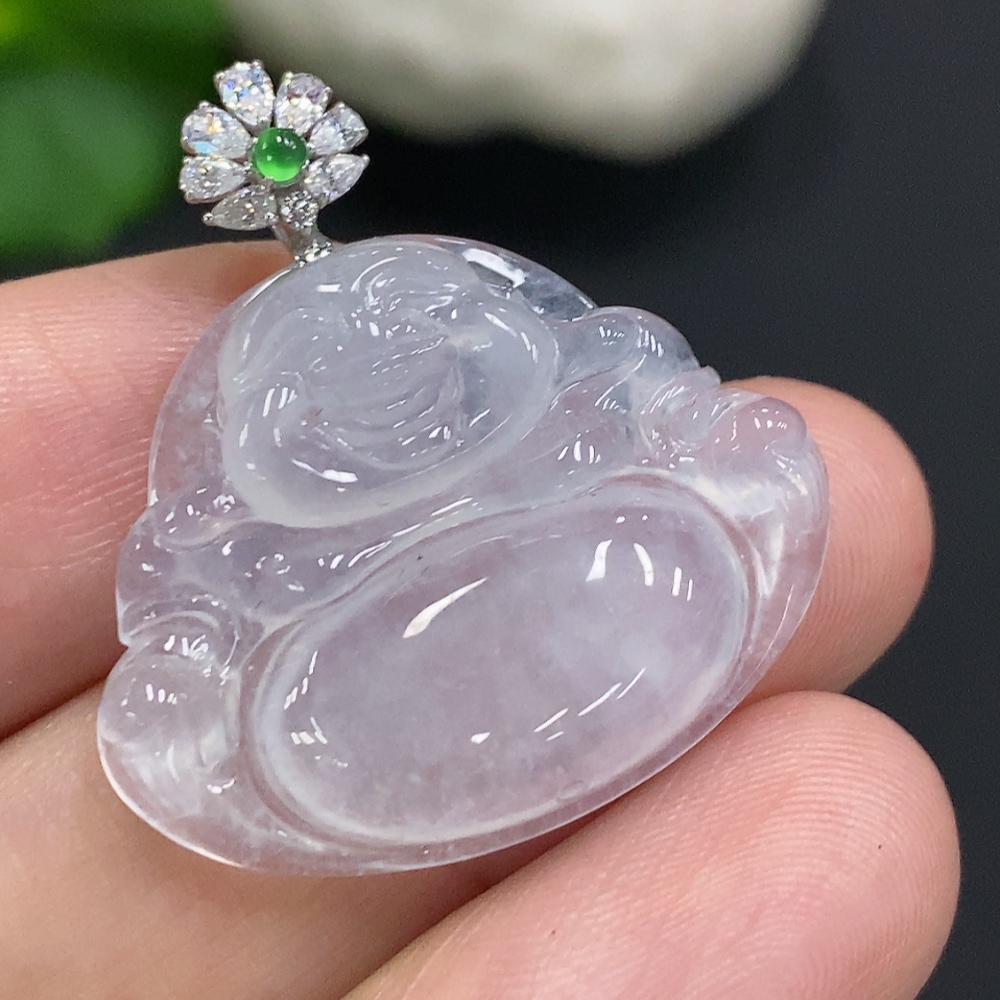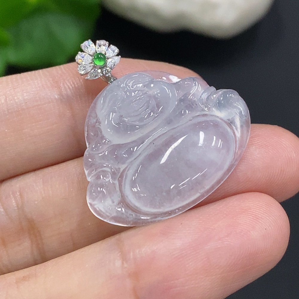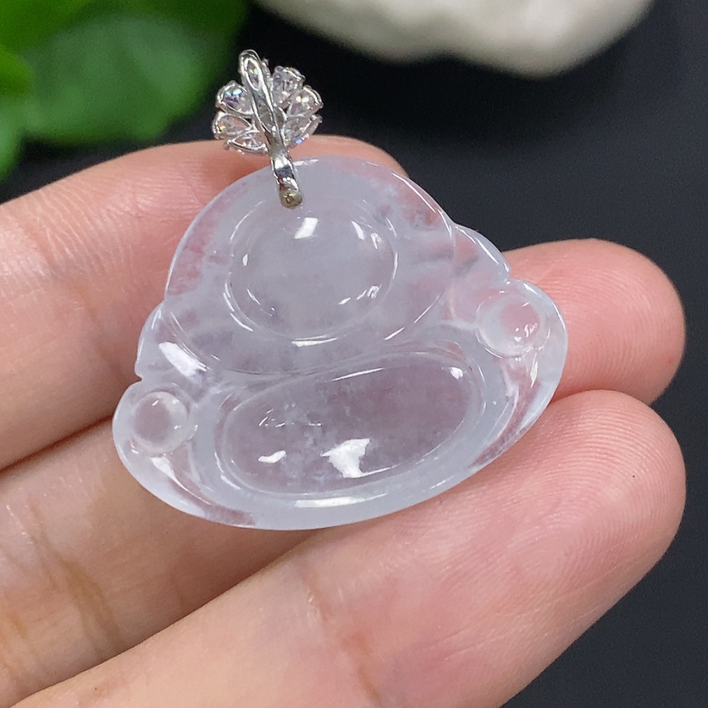 Jadeite Buddha Pendant with 18K Gold Clasp, Total Weight Approx. 5.1g (Non-Diamond)