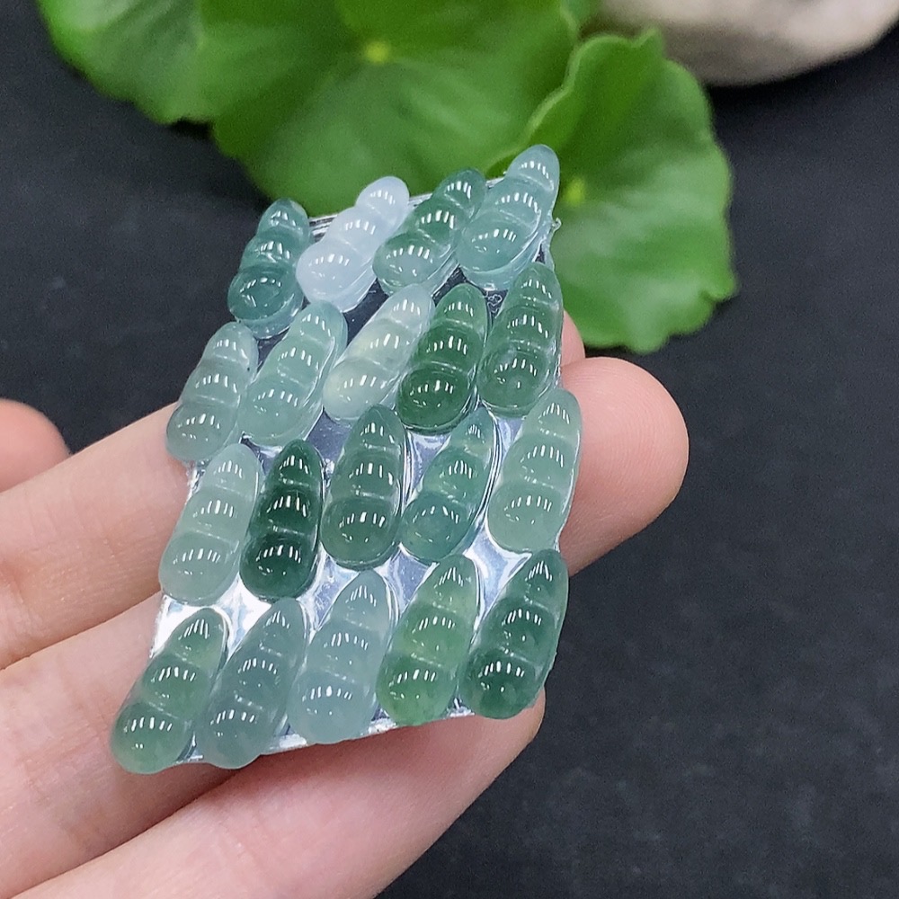 Trezaar - Jadeite Blessing Bean Inlaid Pieces Sell as a Lot