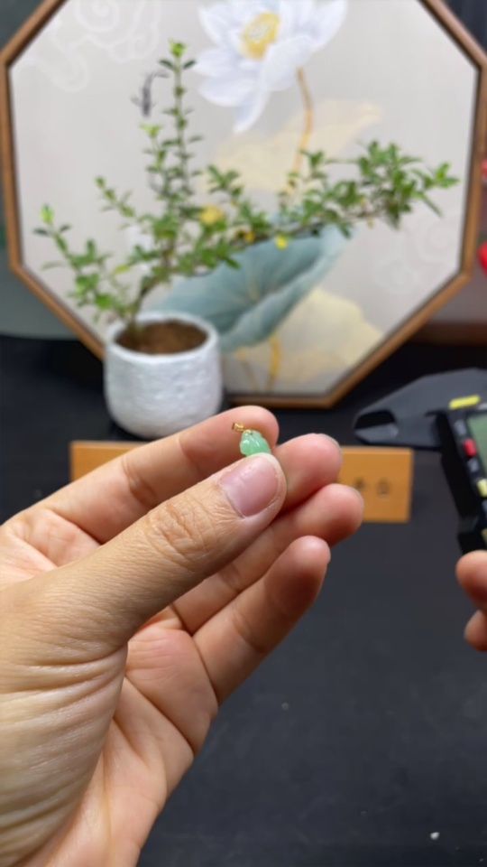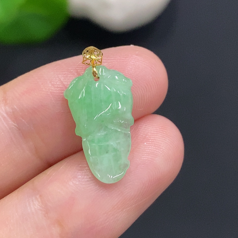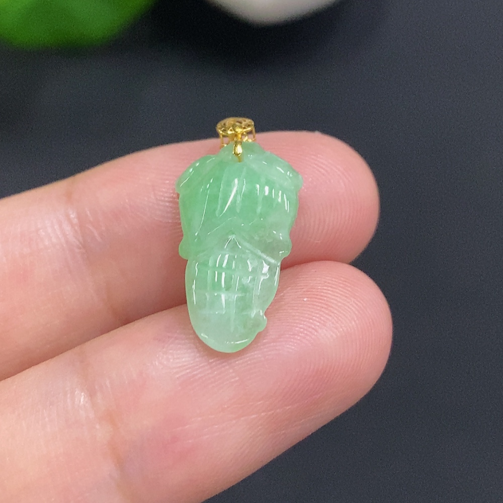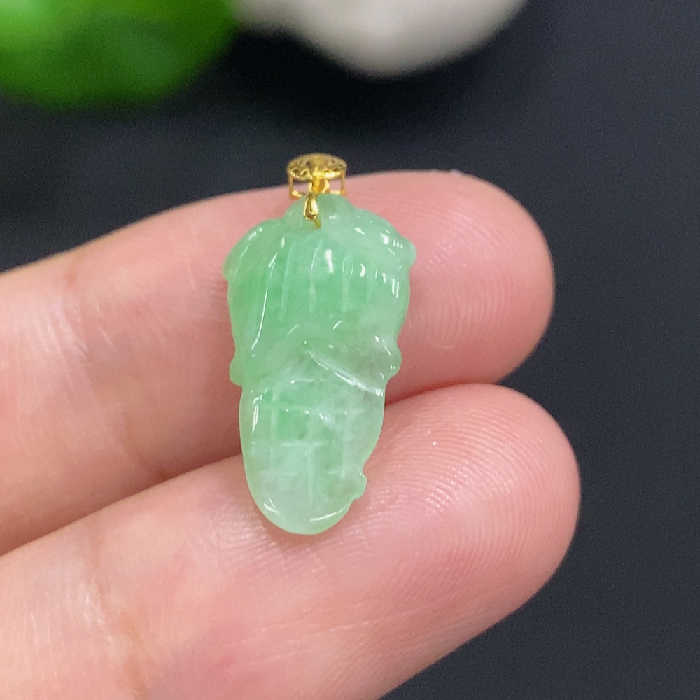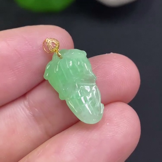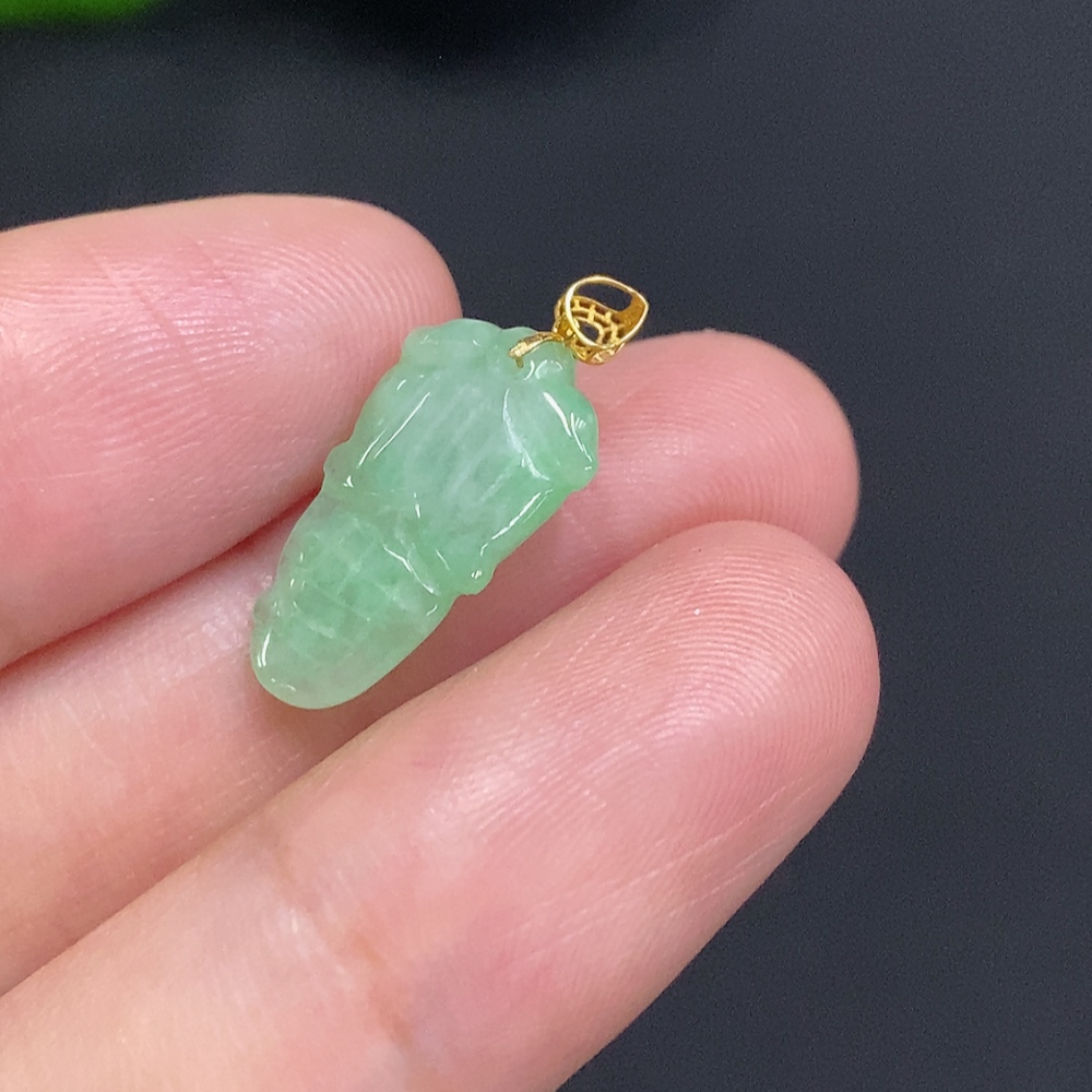 Jadeite Corn Pendant with 18K Gold Clasp, Total Weight Approx. 0.9g