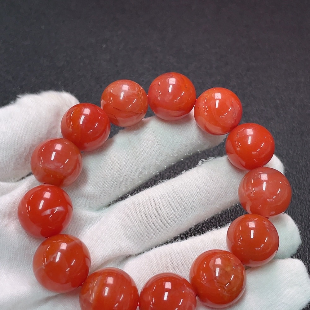 South Red Agate Bracelet with Visible Organic Matter, Total Weight Approx. 93.24g, Size ~16.8mm