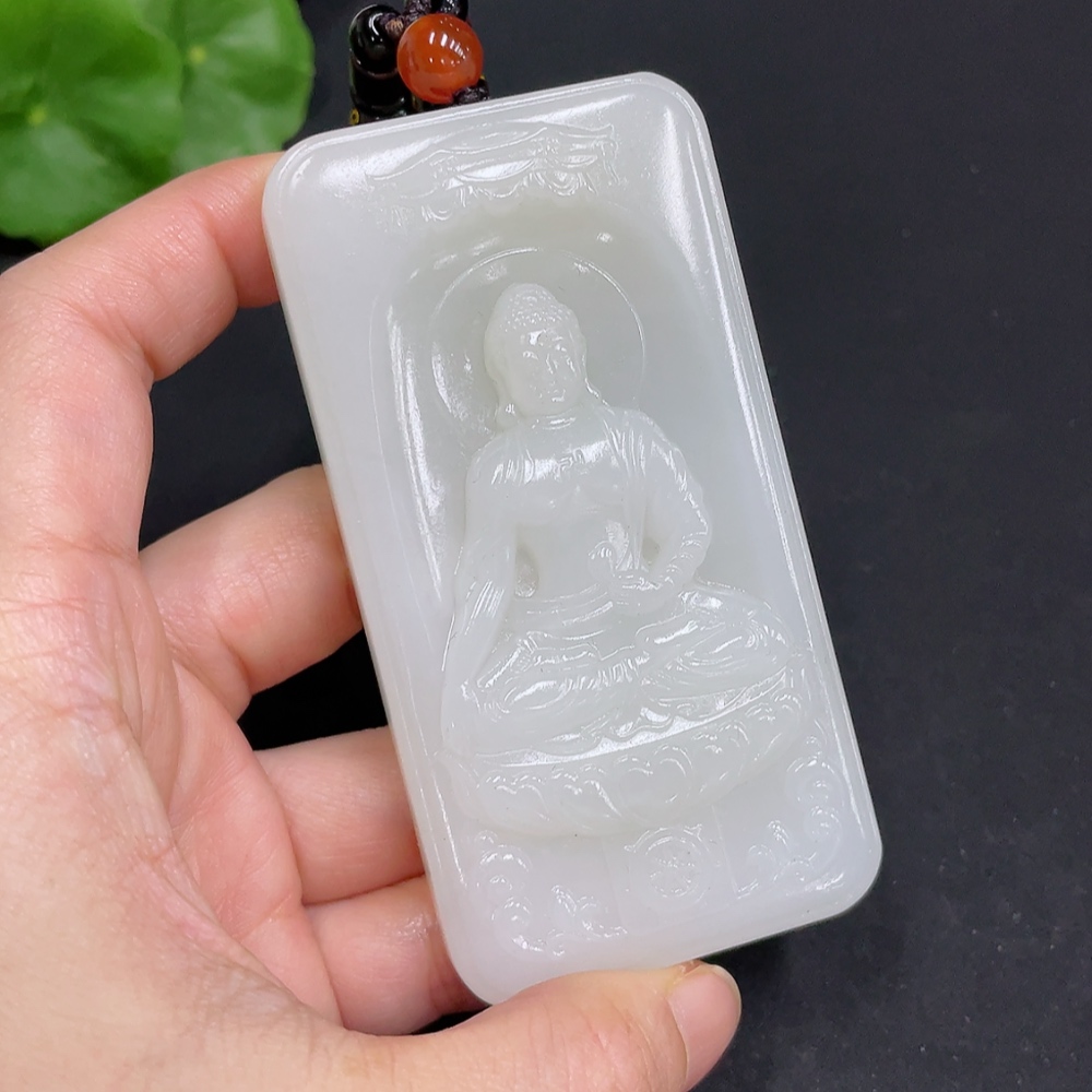 Hetian Jade Pendant Amitabha Buddha Total Weight (including rope): 125.8g Accessories not Hetian Jade