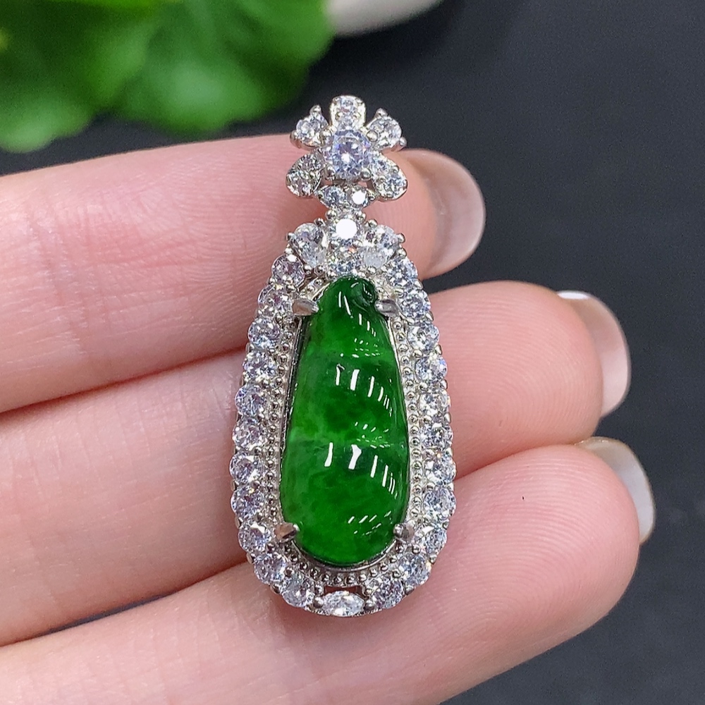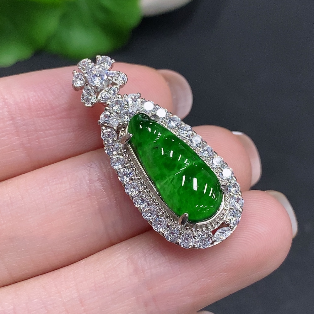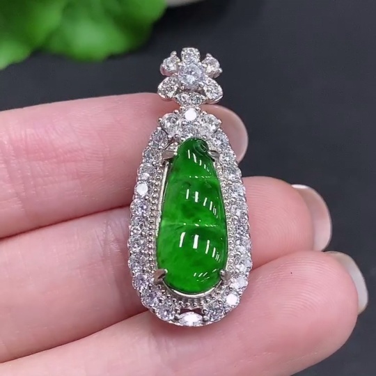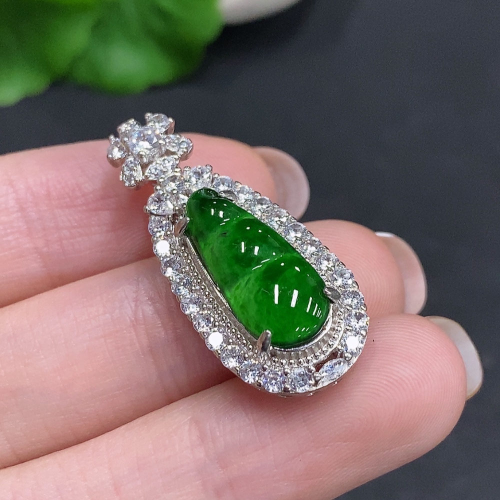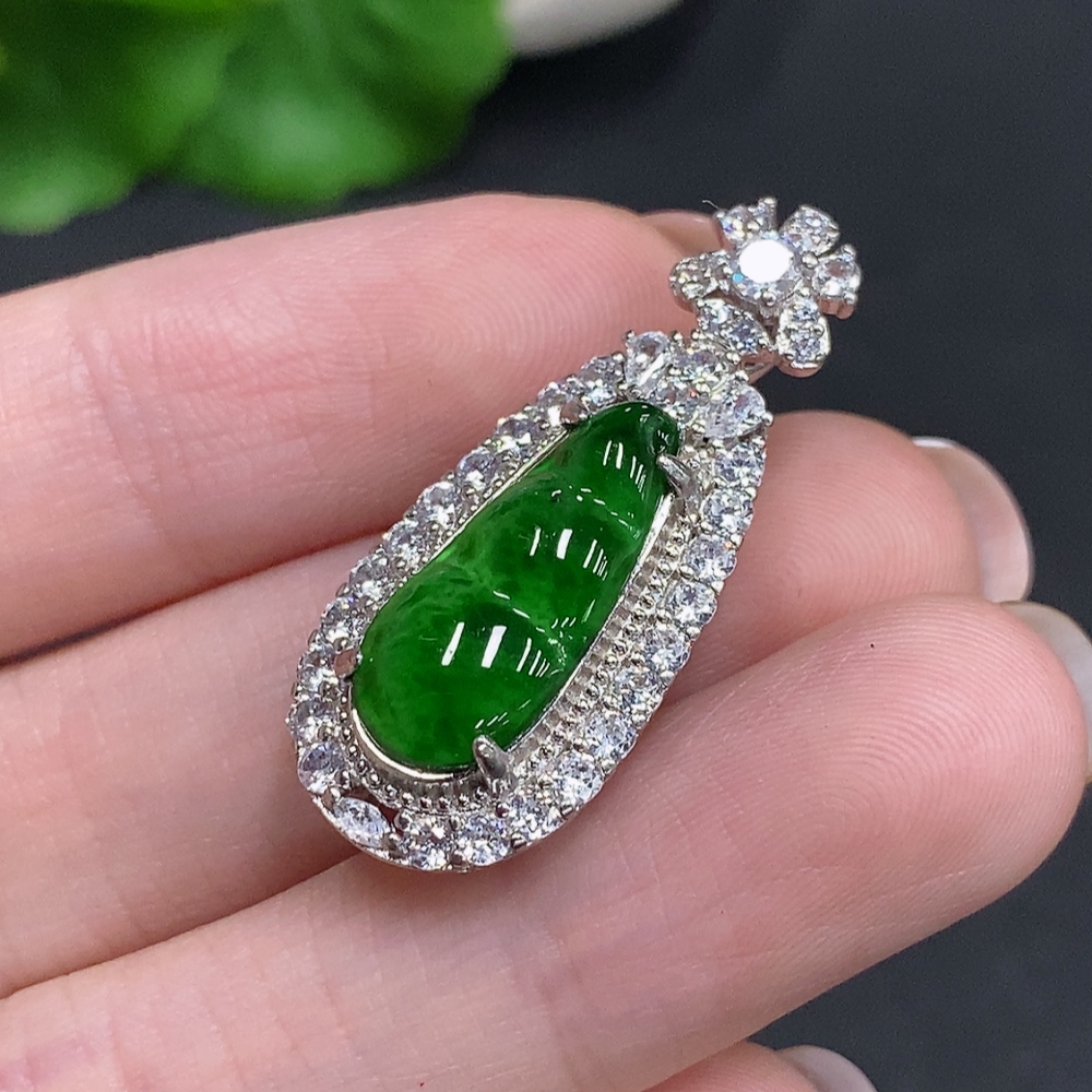 Jadeite Lucky Bean Pendant with Non-Gold Setting, Total Weight Approximately 4.2g