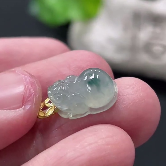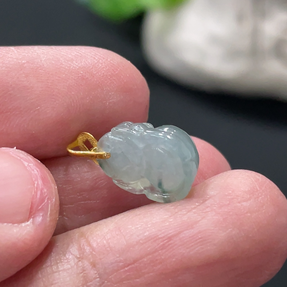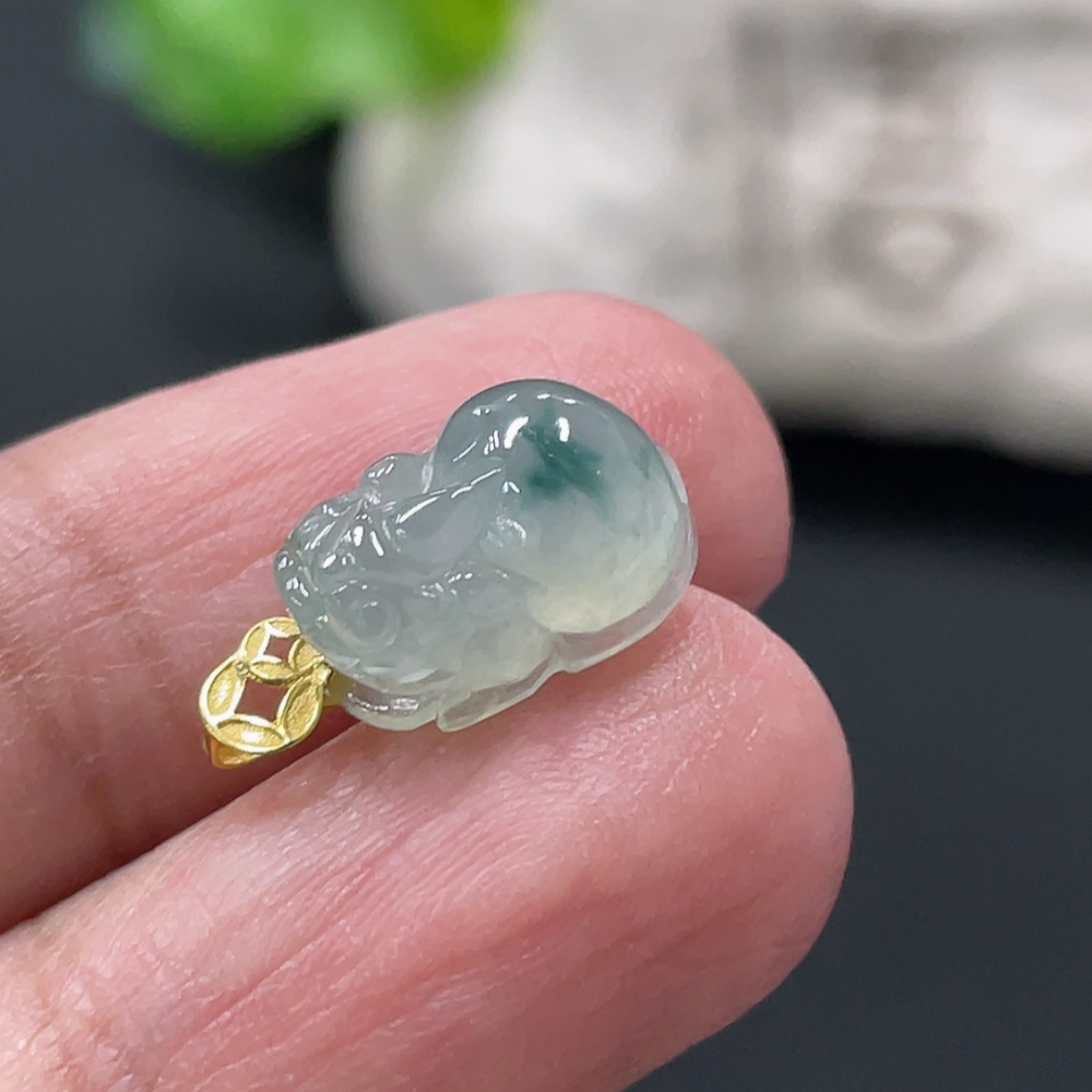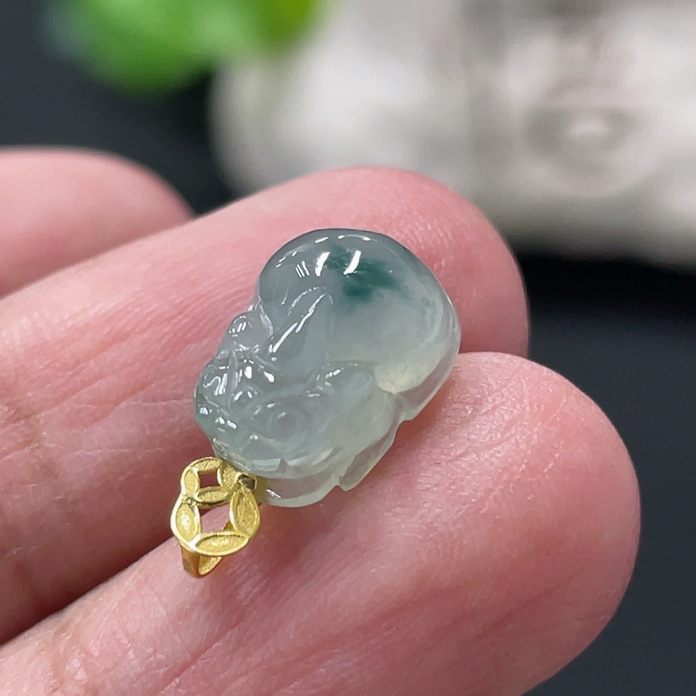 Jadeite Pi Xiu Pendant with 18K Gold Clasp, Total Weight Approx. 1.1g