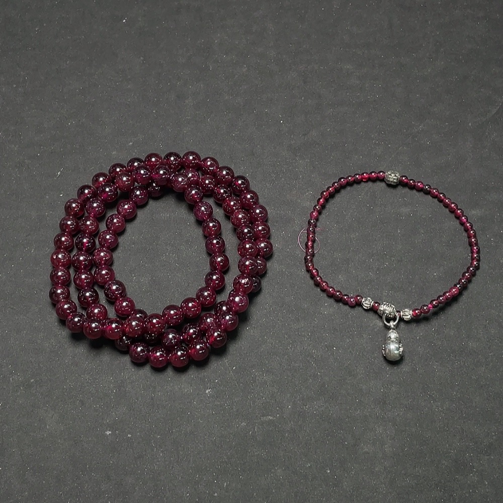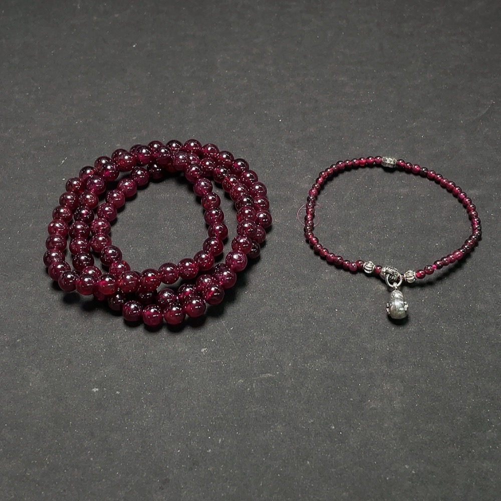 Garnet Beaded Necklace + Bracelet Non-Gold Total Weight Approx.60g Sell as a Lot