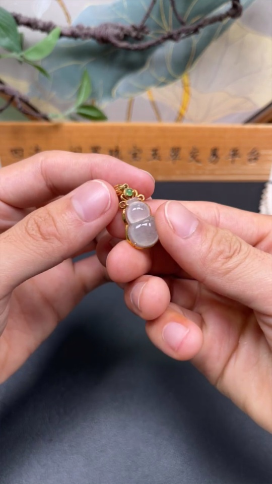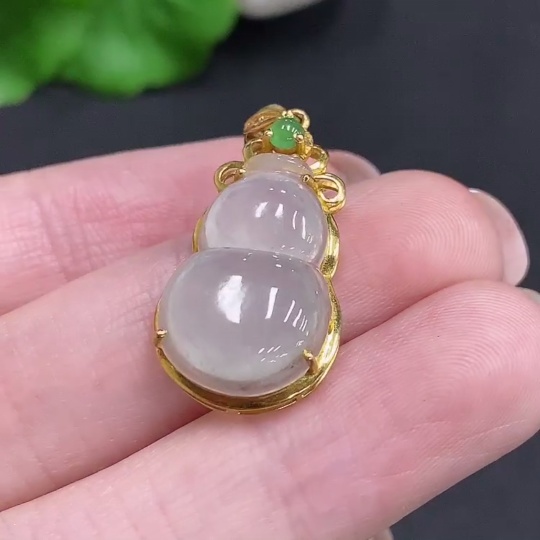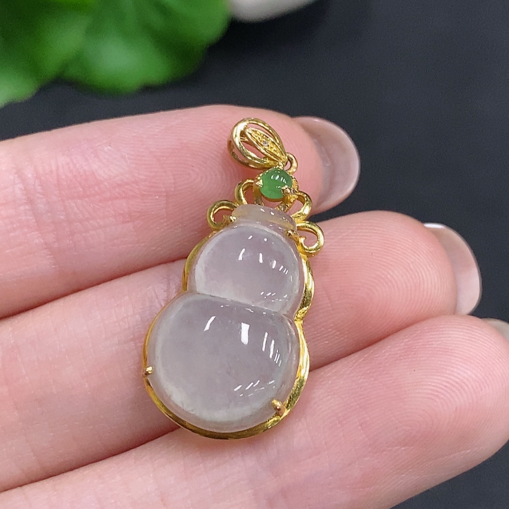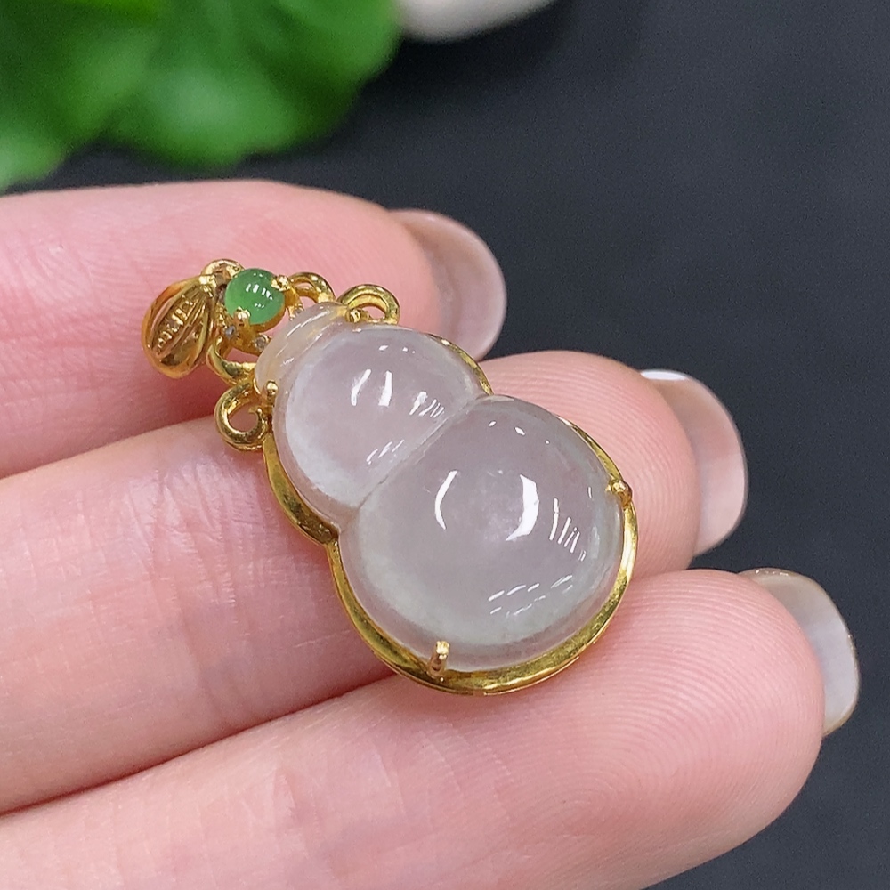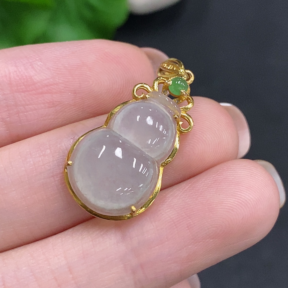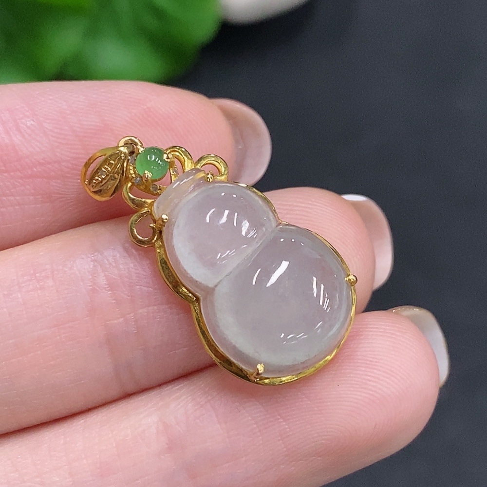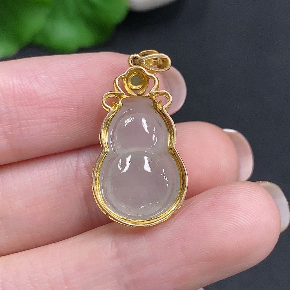 Jadeite Gourd Inlaid Pendant 18K Gold Total Weight with Rope Approx. 2.5g (Non-Diamond)