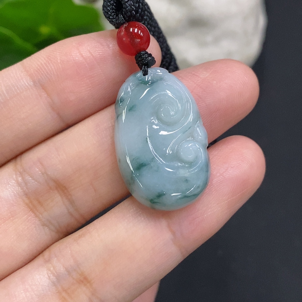 Jadeite Ruyi Pendant Total Weight with Rope Approx. 6.3g (Beads Non-Grade A)
