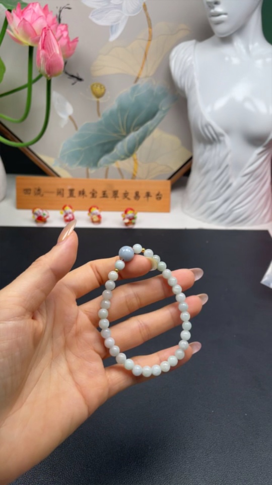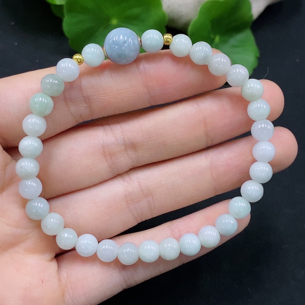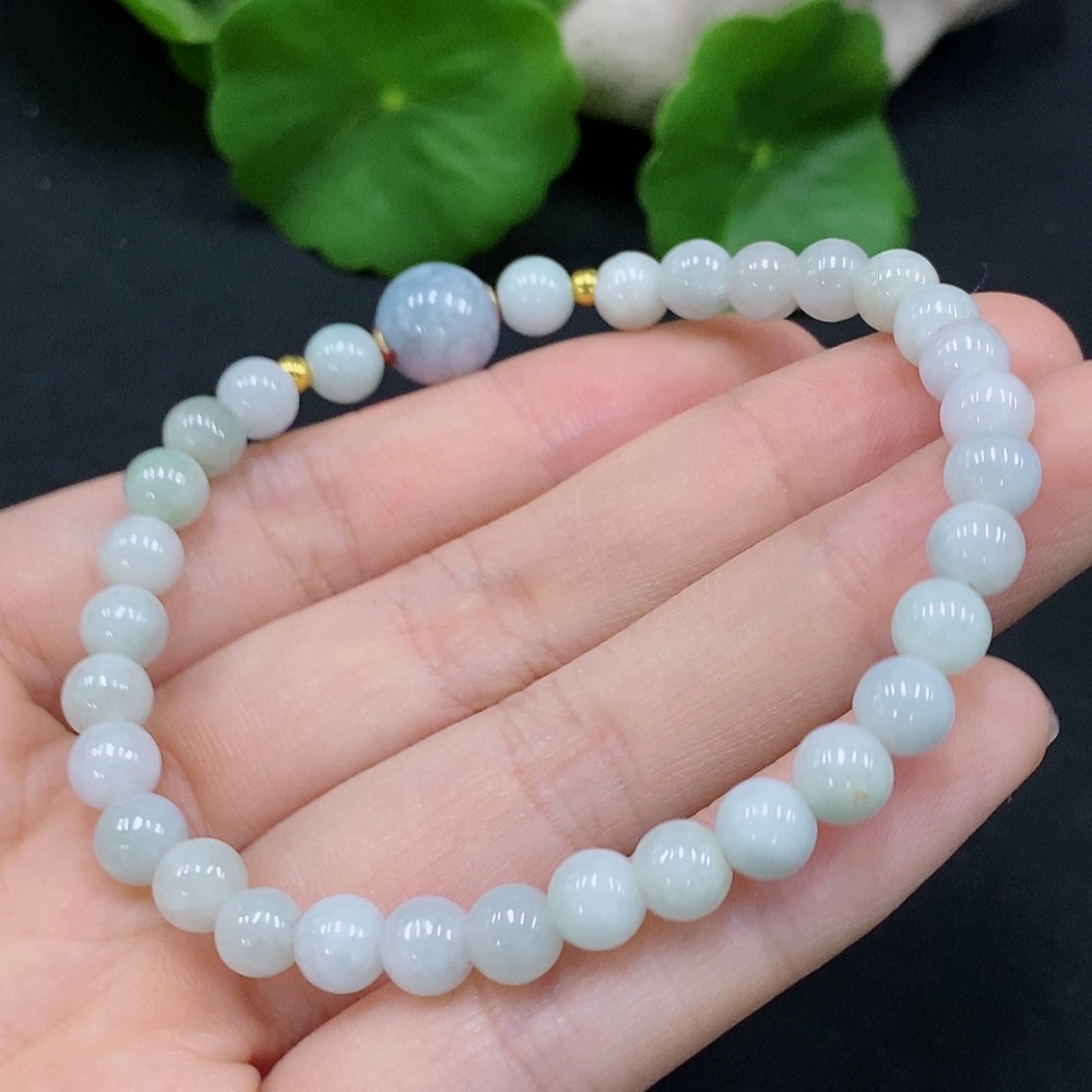 Jadeite Bracelet Bead Size Approx. 6/9.4mm Small Beads 99% Gold Red Marked 64% Gold Total Weight Approx. 12.87g