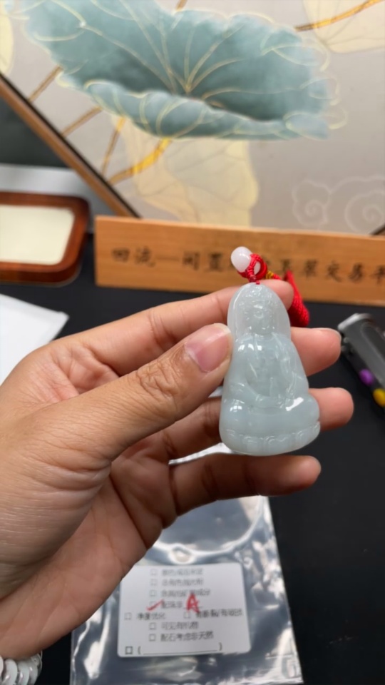 Jadeite Pendant Guanyin Total Weight Approx. 22g with Rope Matching Beads Non-A