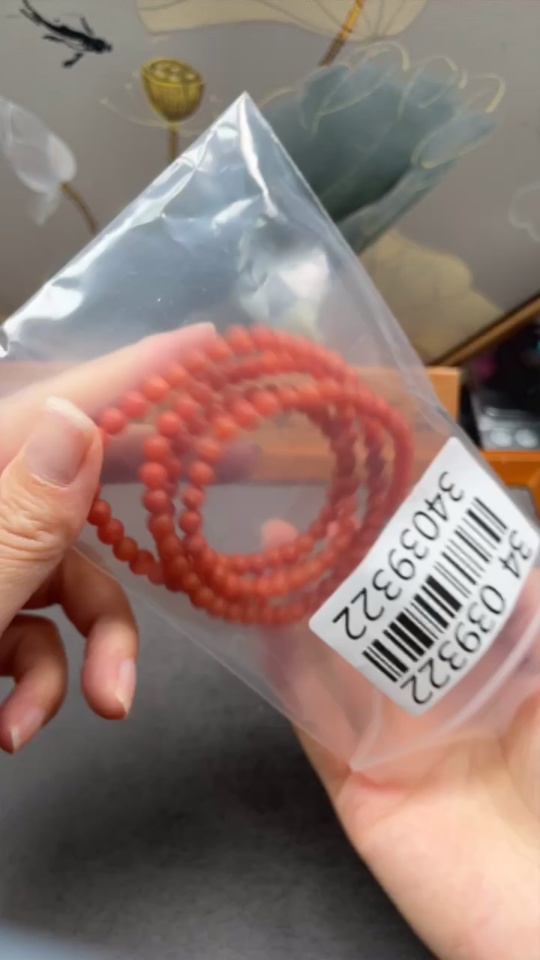 Southern Red Agate Bead Strand with Visible Organic Matter, Total Weight Approximately 34.55g, Size About 5.7mm