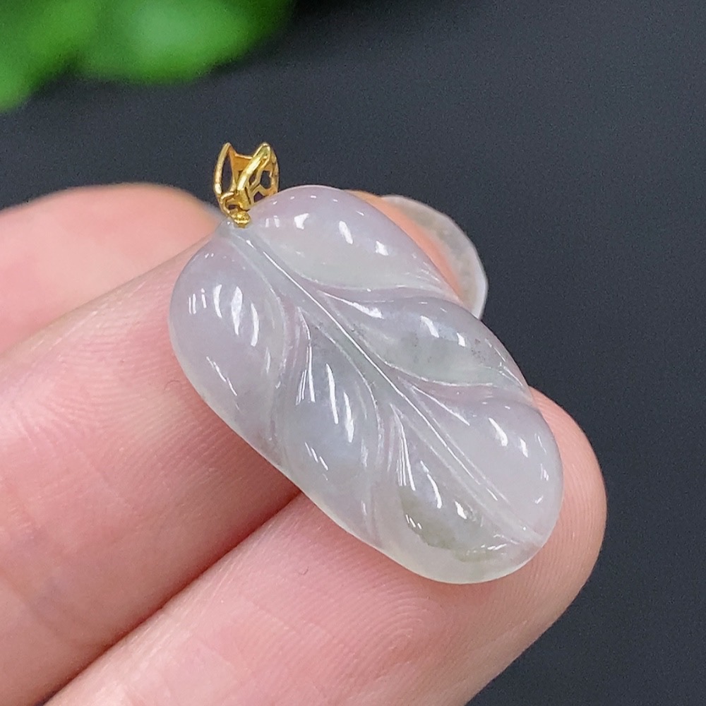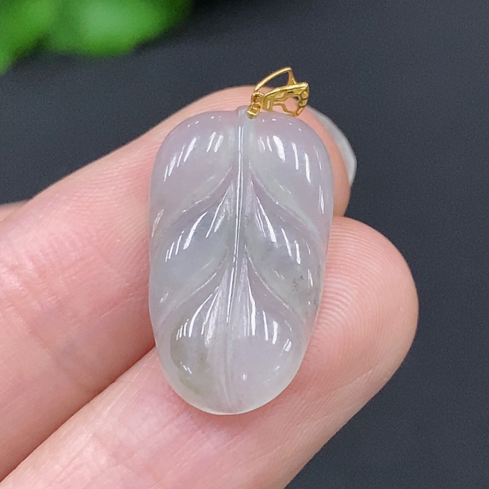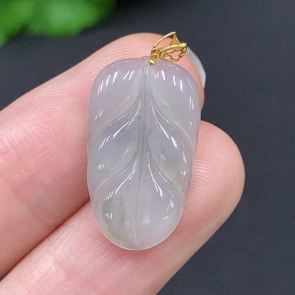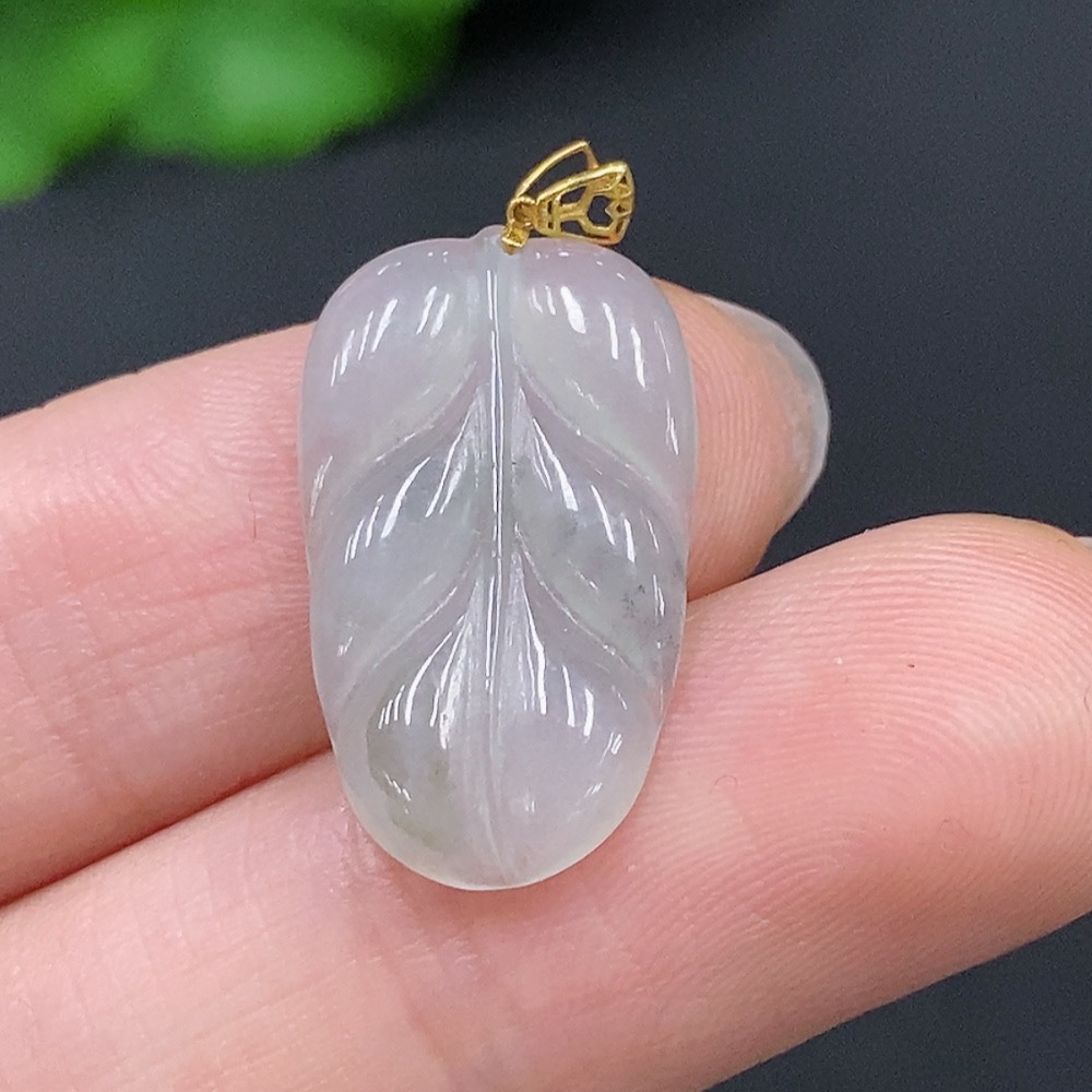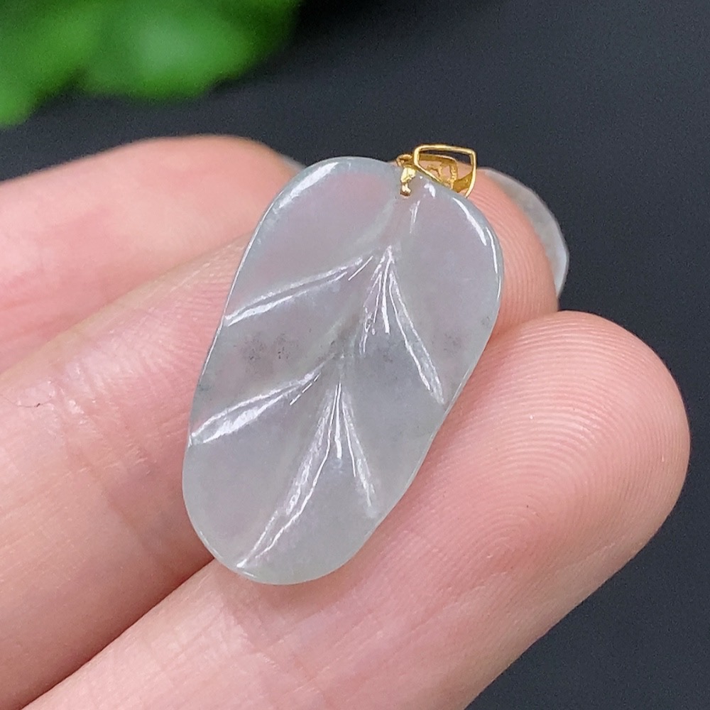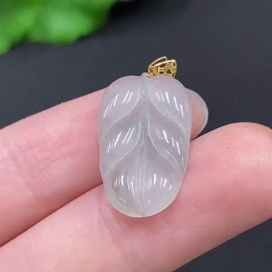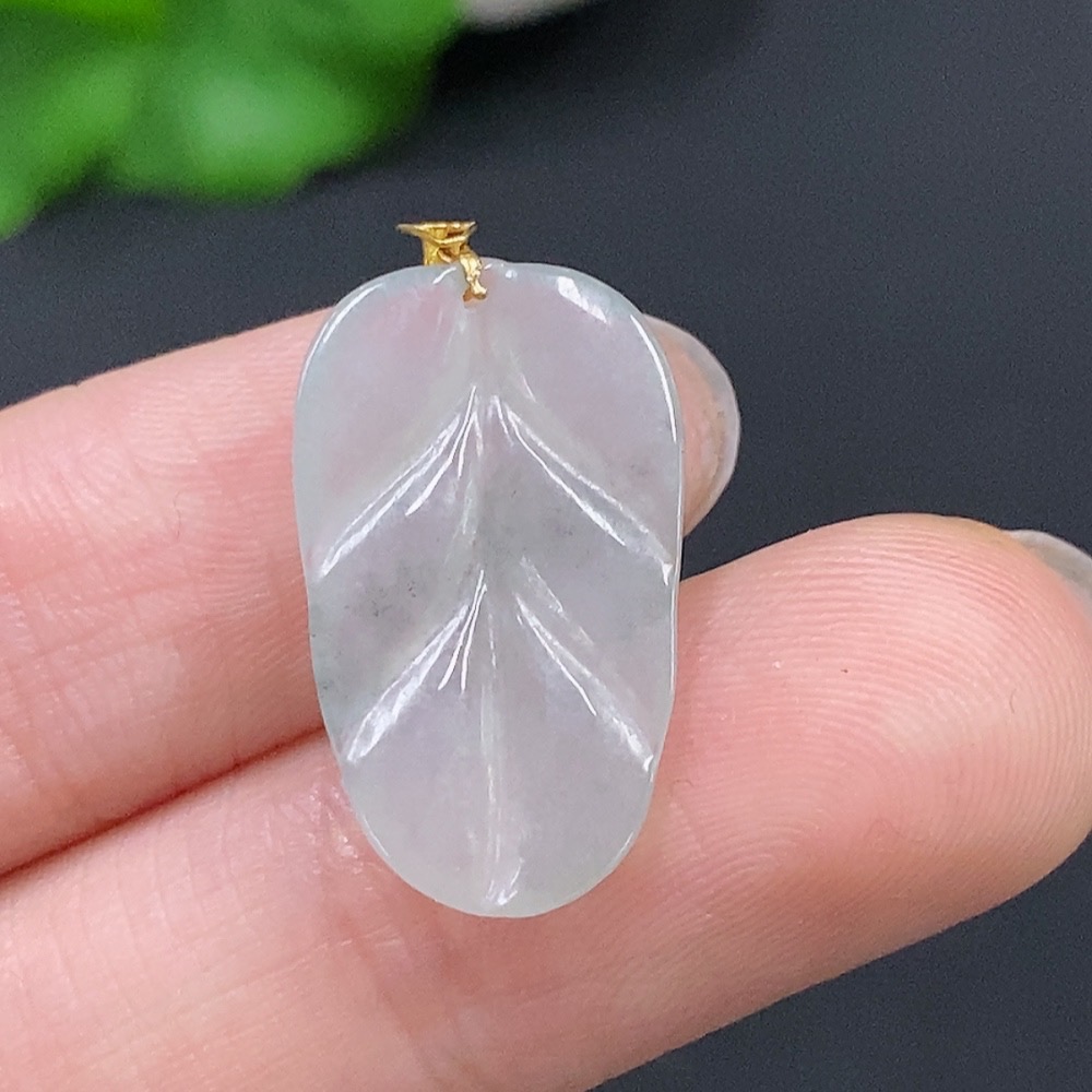 Jadeite Leaf Pendant with 18K Gold Clasp, Total Weight Approximately 1.4g
