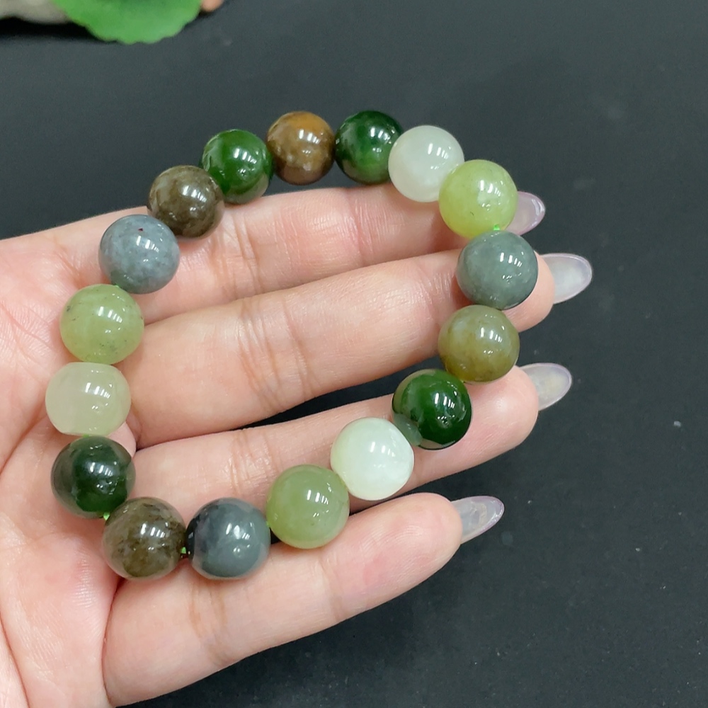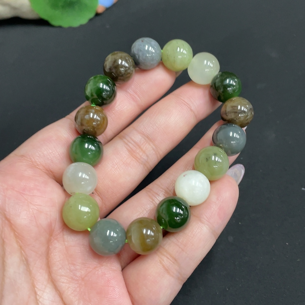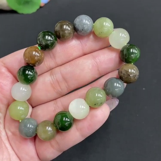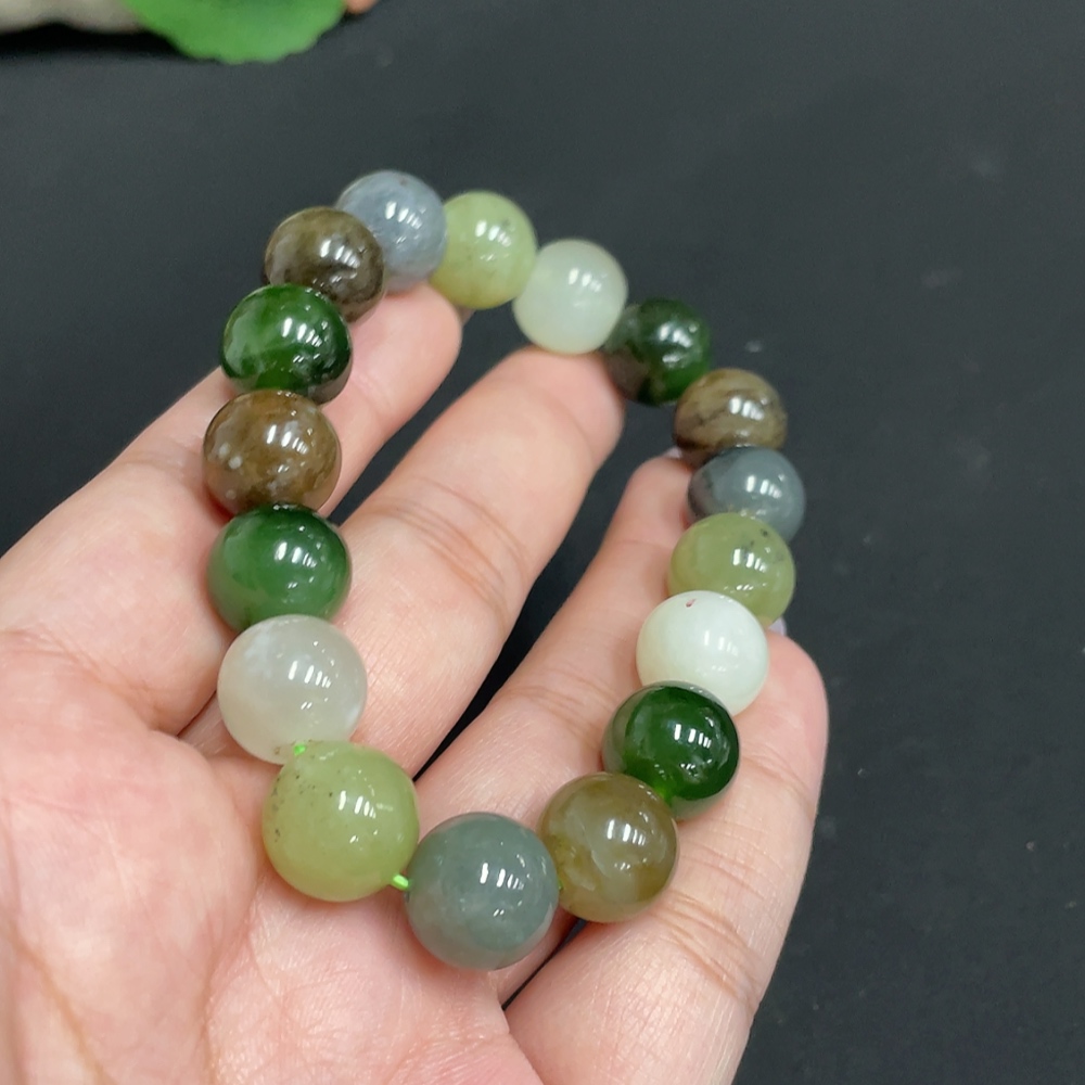Hetian Jade Bracelet Approx. 11.7mm Beads Total Weight About 46.1g Containing Other Mineral Components