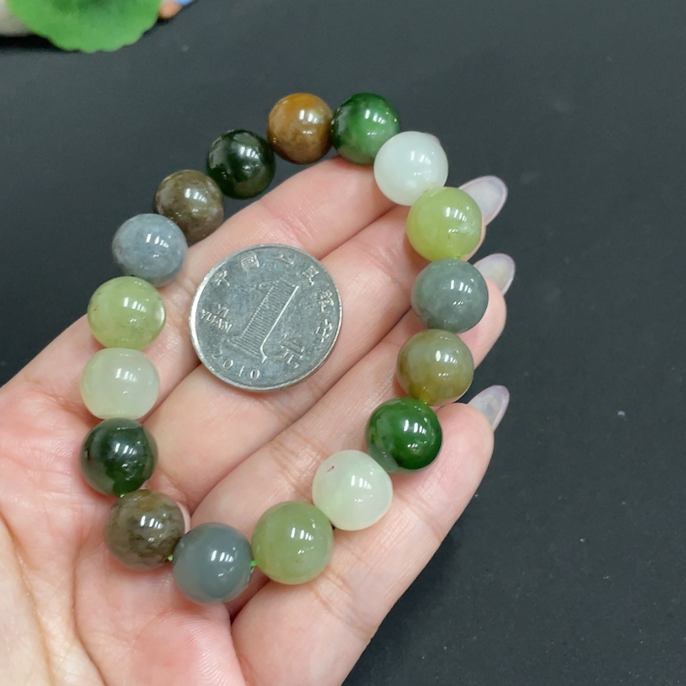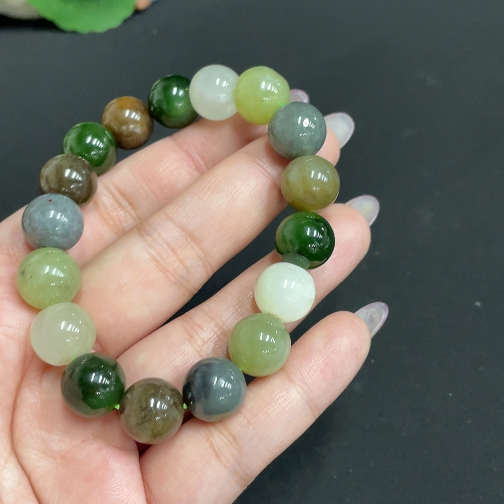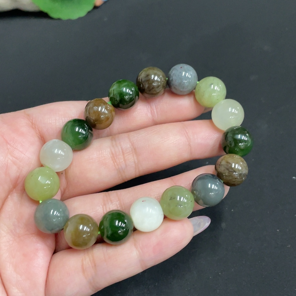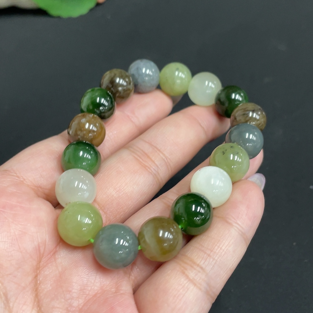 Hetian Jade Bracelet Approx. 11.7mm Beads Total Weight About 46.1g Containing Other Mineral Components