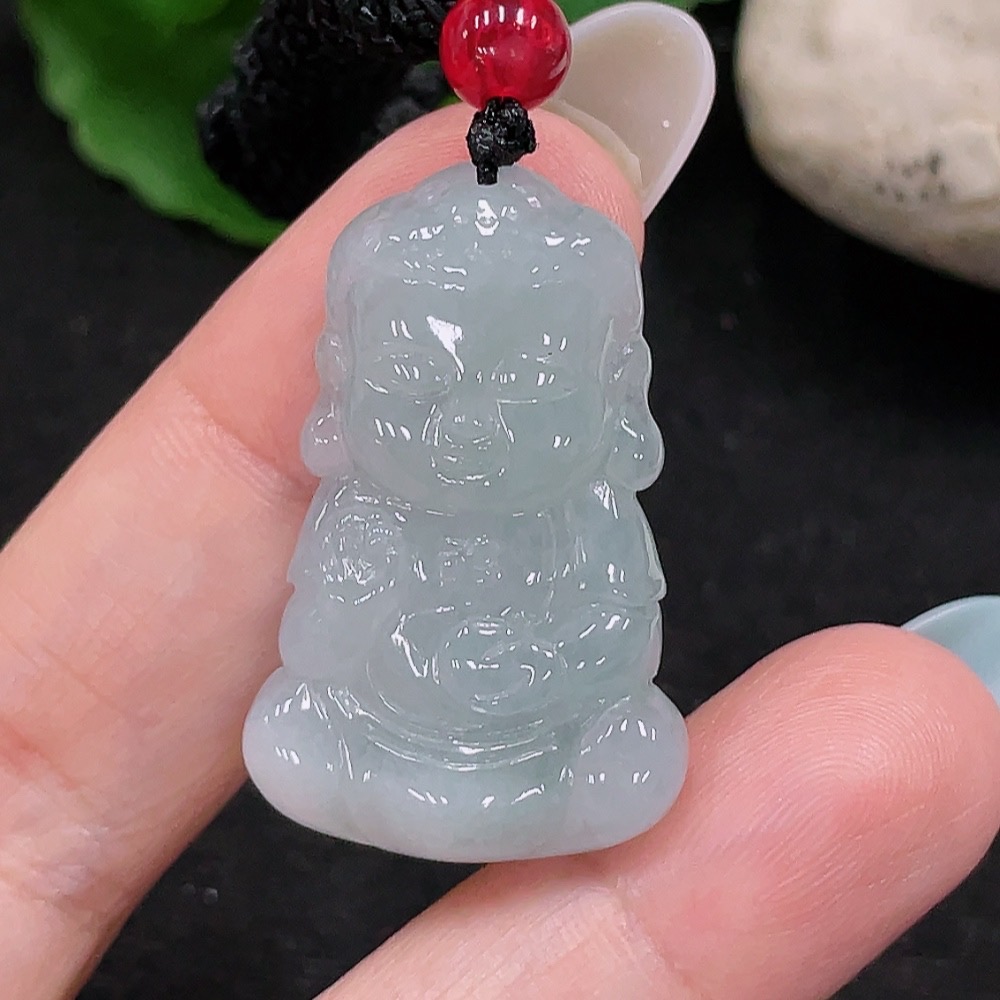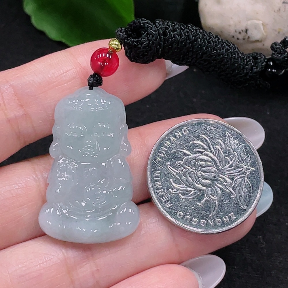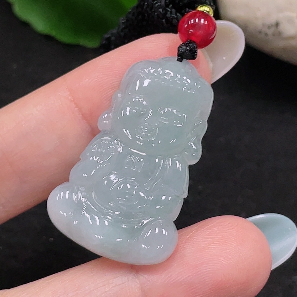 Jadeite Baby Buddha Pendant with Non-Type A Beads, Total Weight Approx. 8.3g