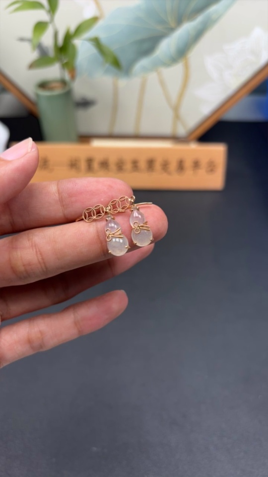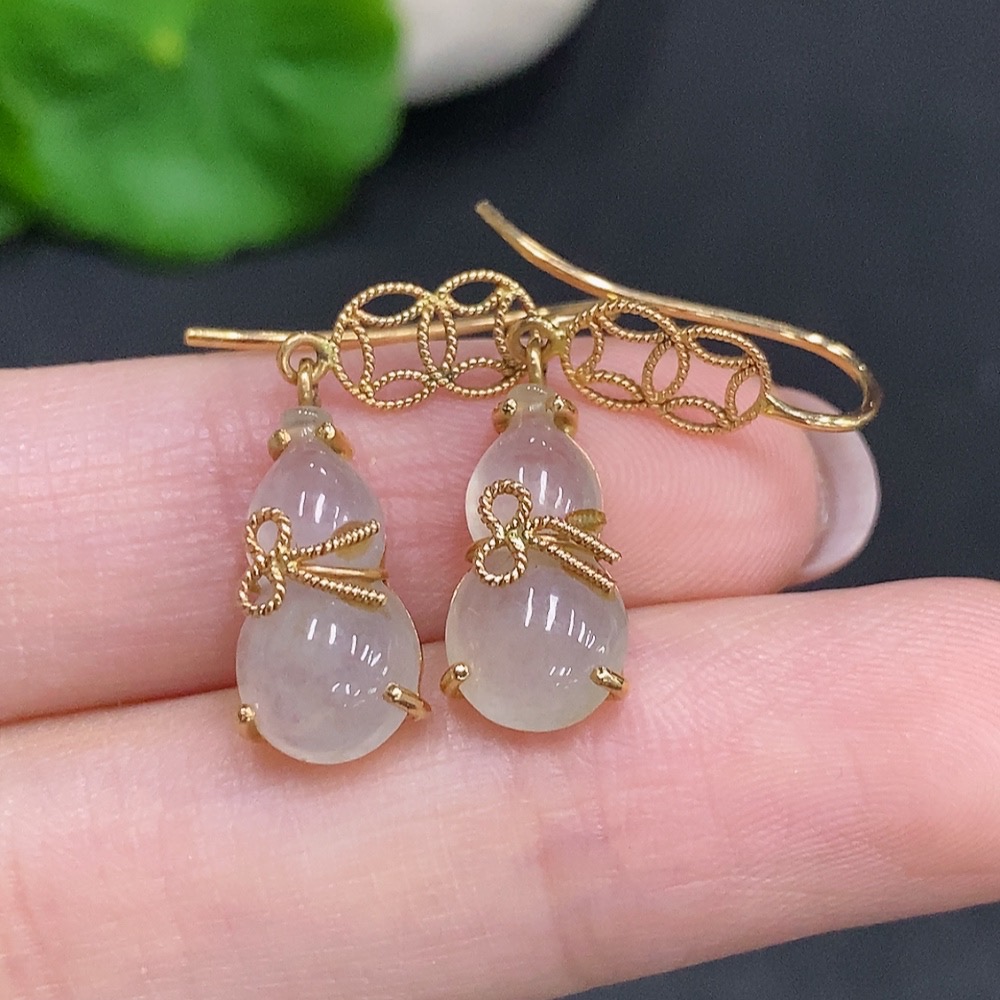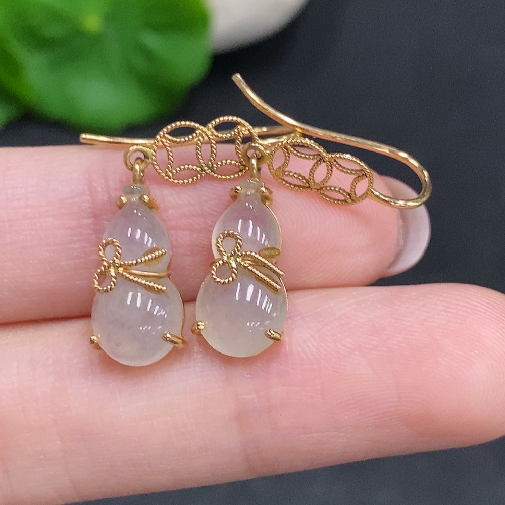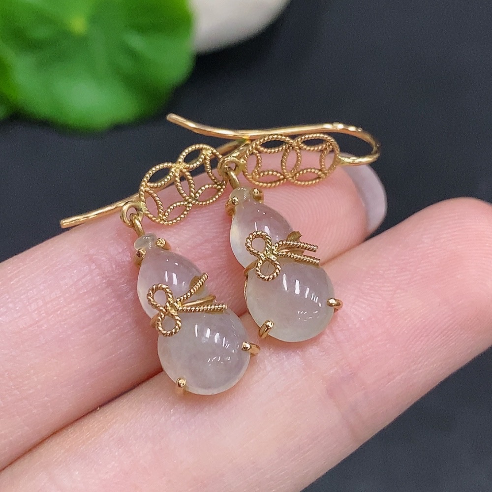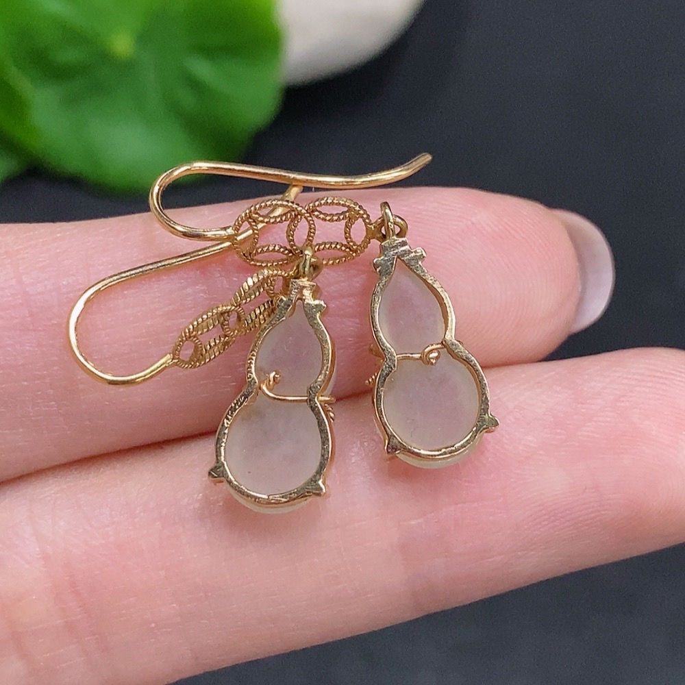 Jadeite Gourd Inlaid Earrings 18k Gold Total Weight Approximately 2.8g