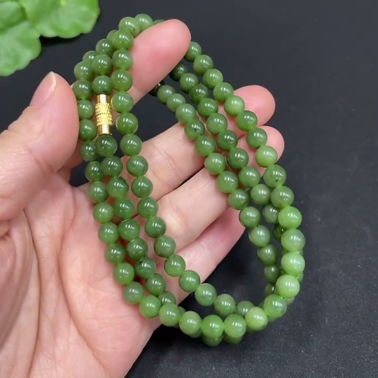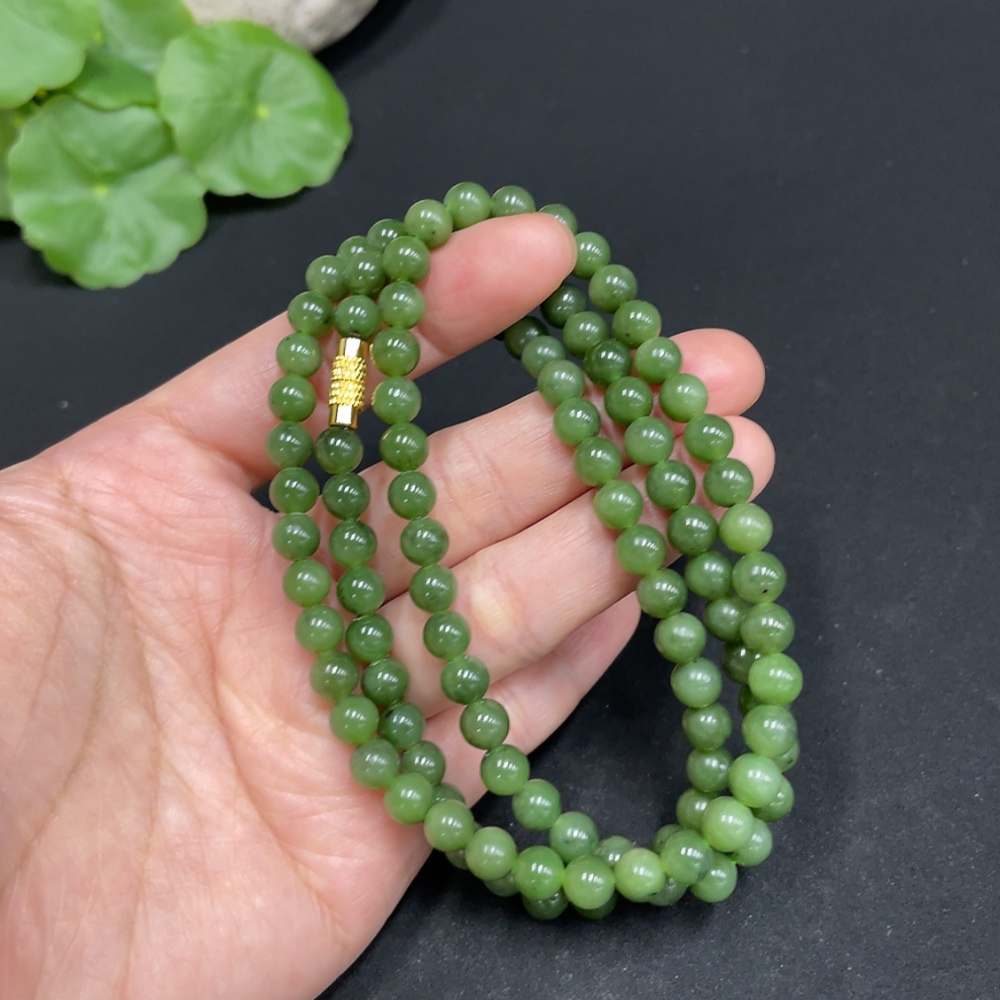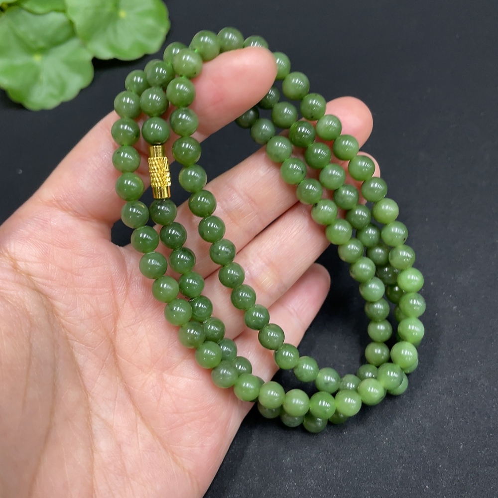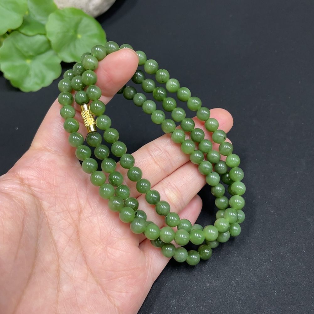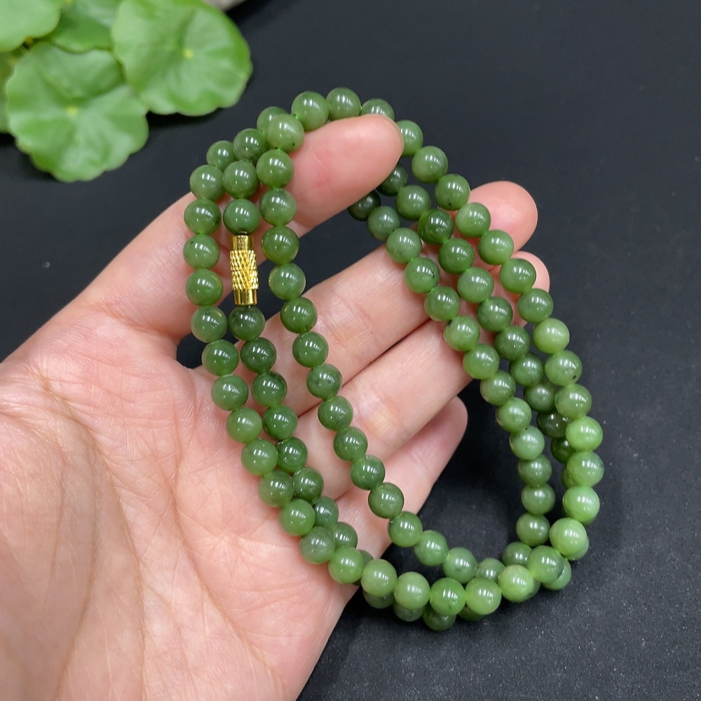 Hetian Jade Jasper Bead Necklace, approximately 5.8mm, total weight about 35.8g