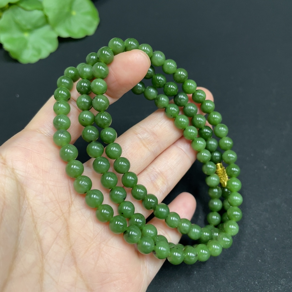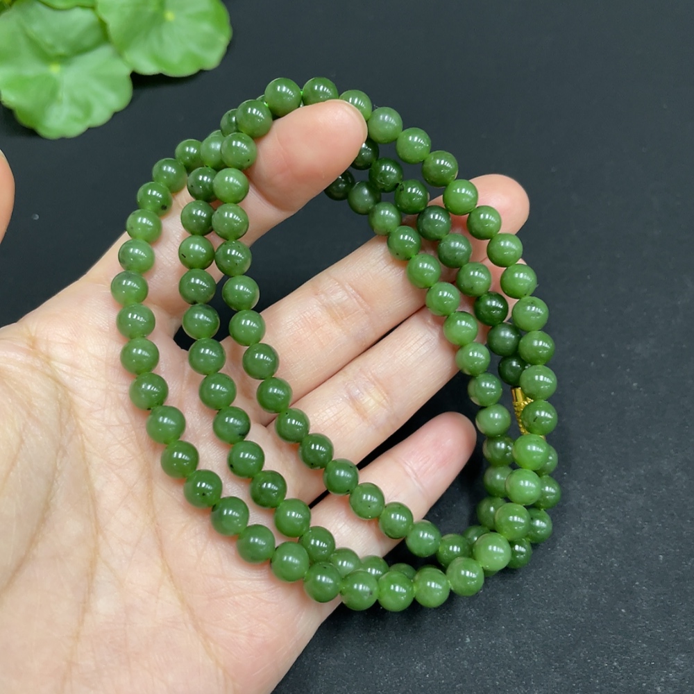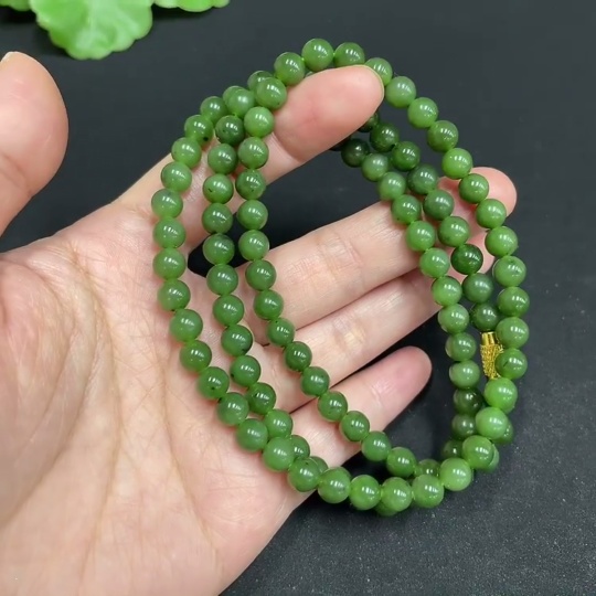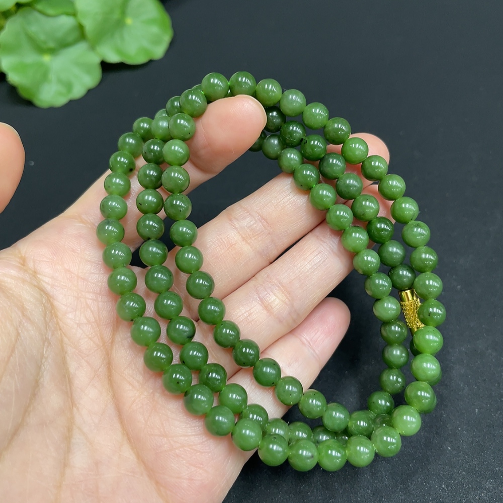 Hetian Jade Bead Necklace Approximately 5.9mm Total Weight About 36.7g
