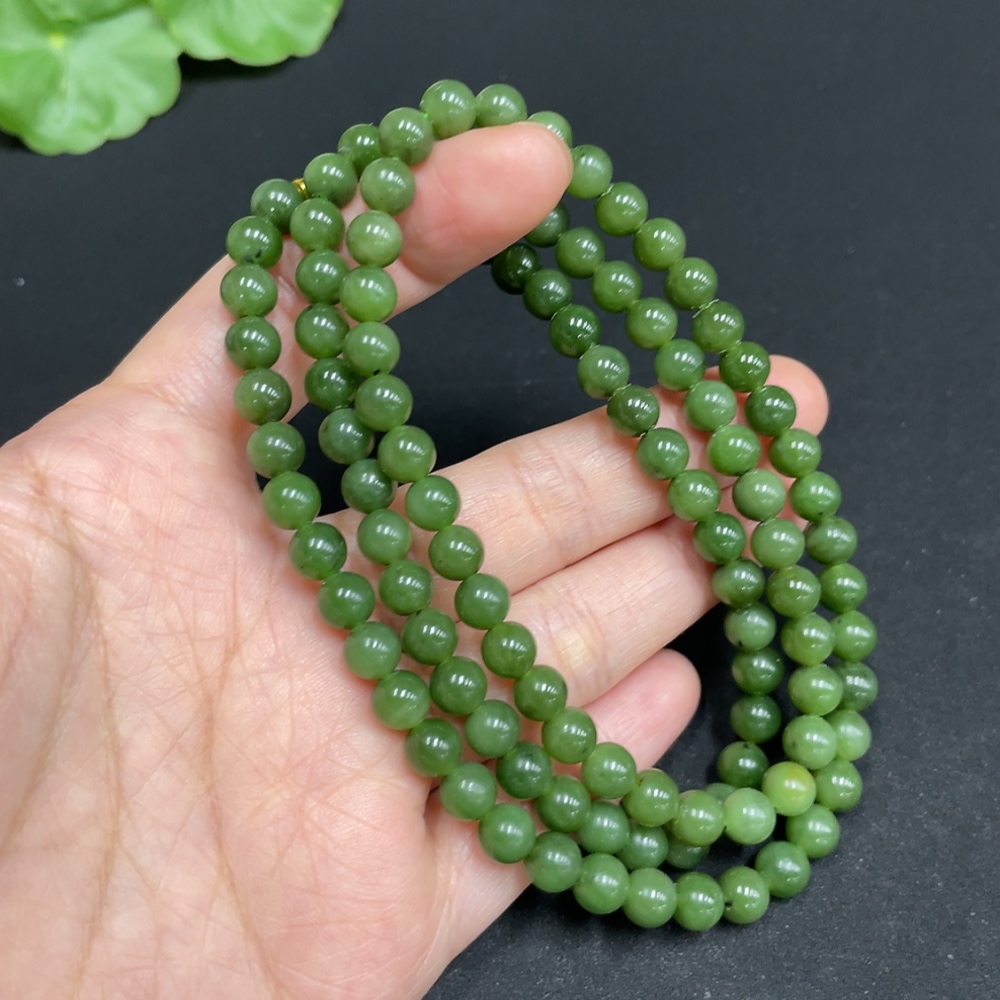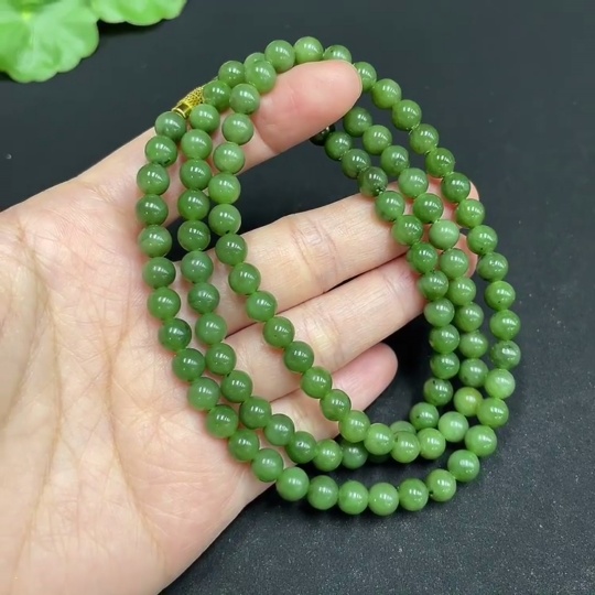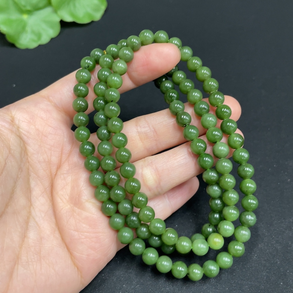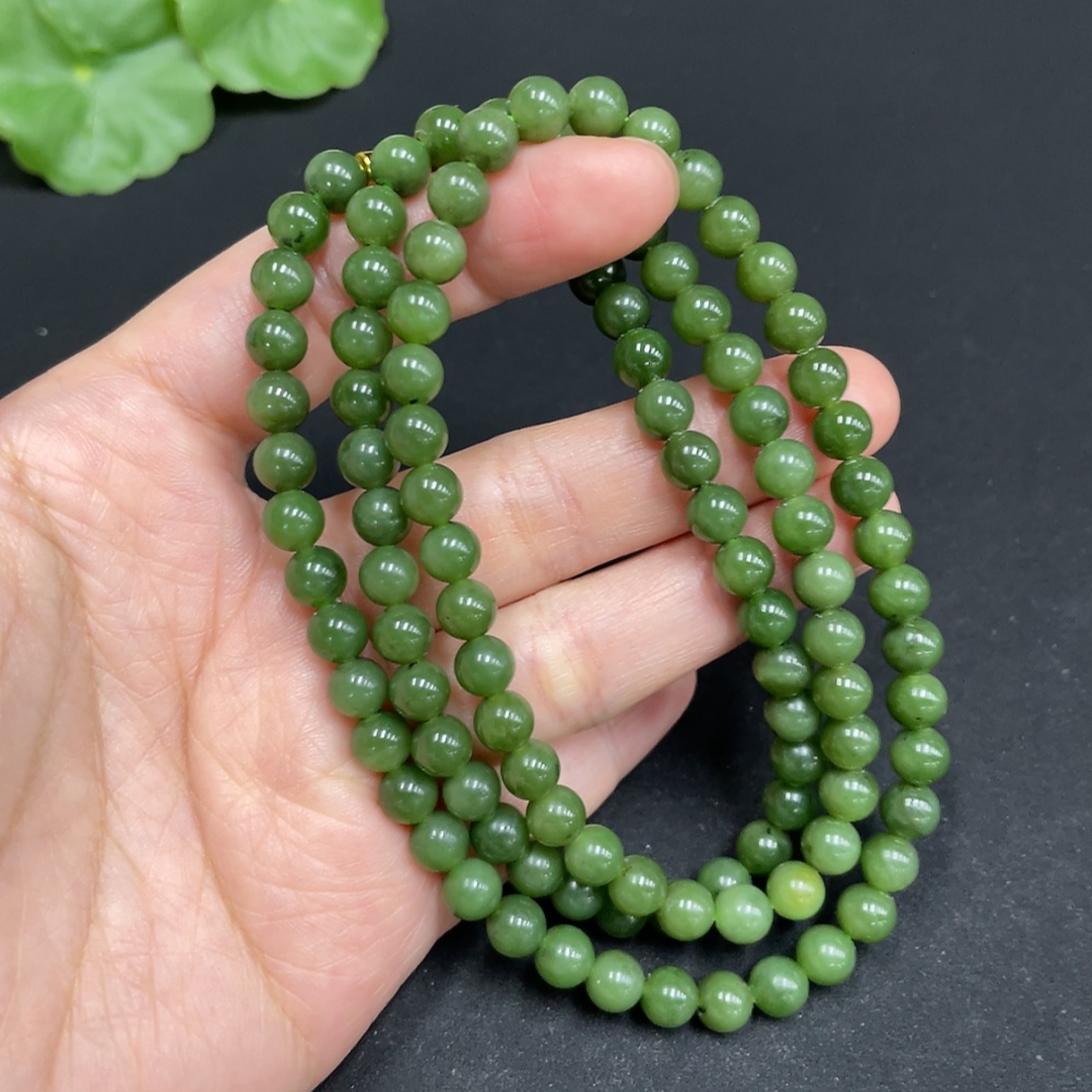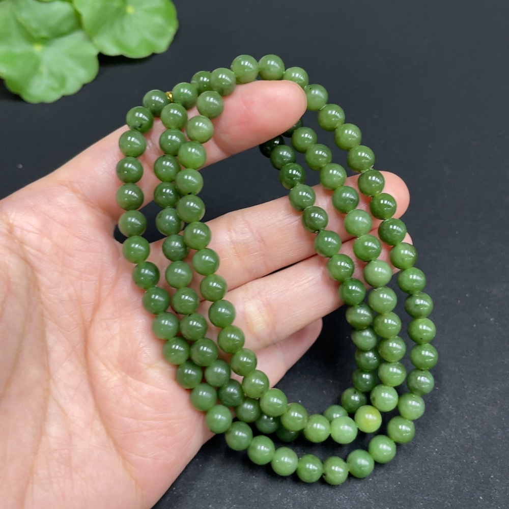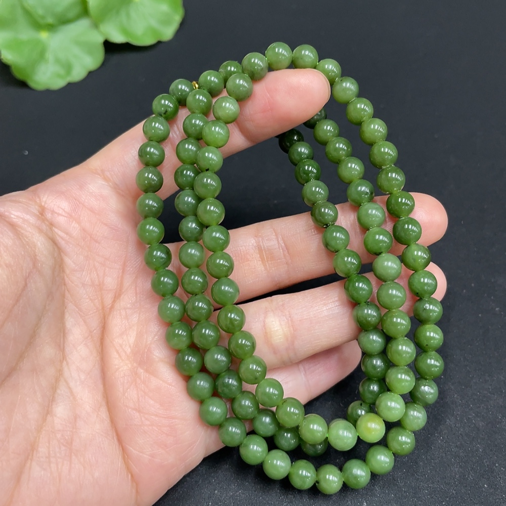 Hetian Jade Bead Necklace Approx. 5.9mm Total Weight Approx. 36.5g