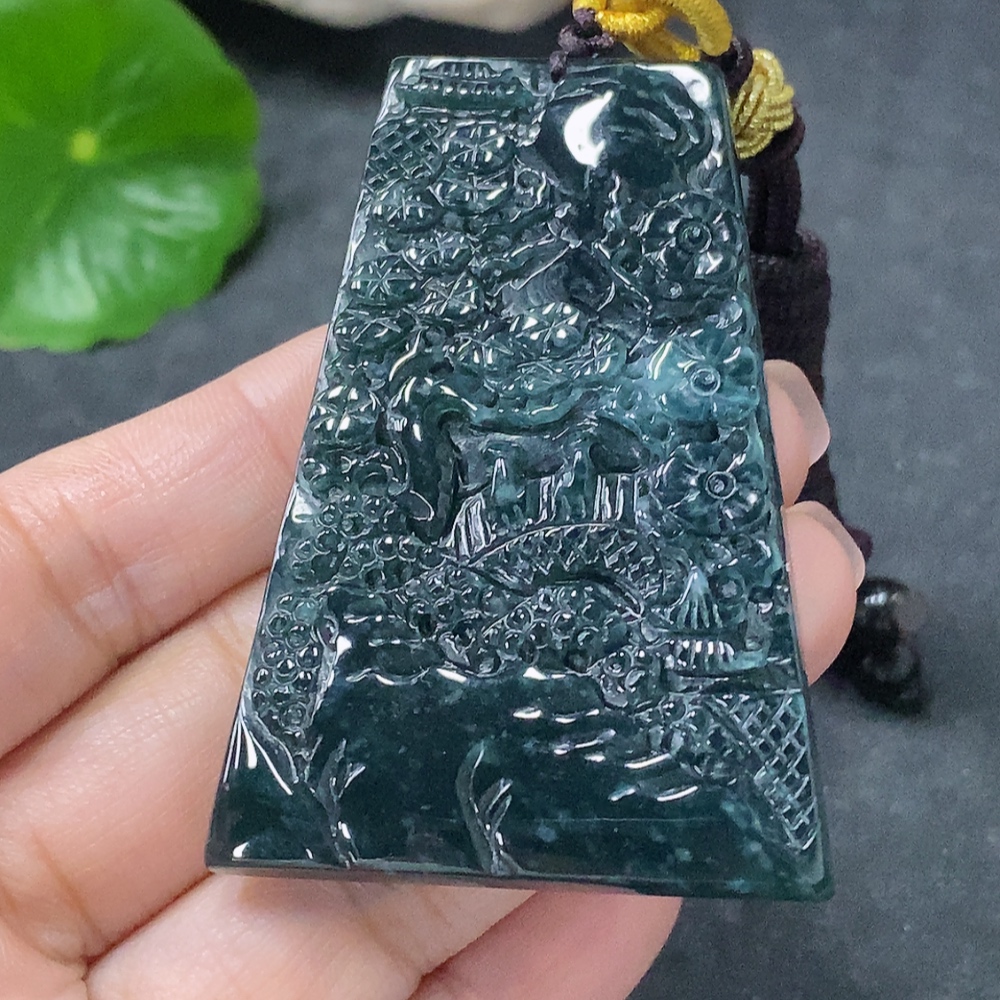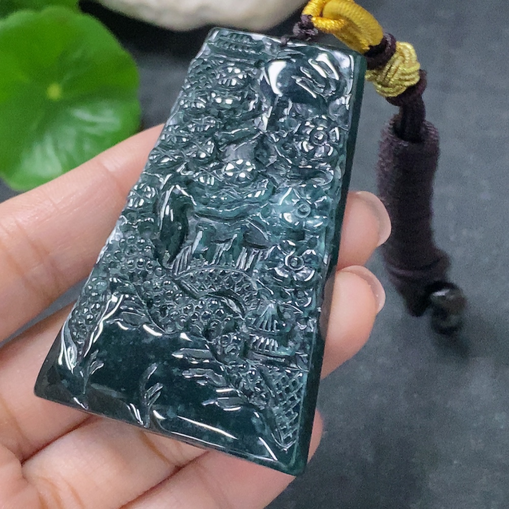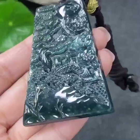 Jadeite Pendant Landscape Plaque Total Weight Including Cord 36.16g