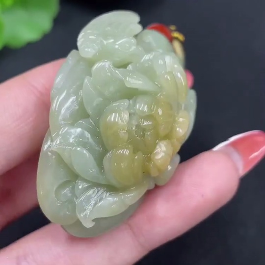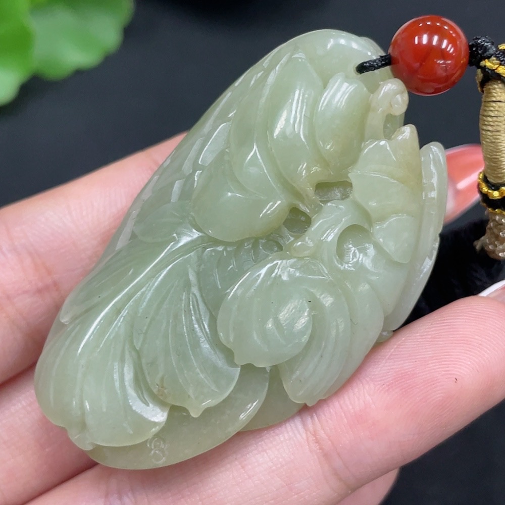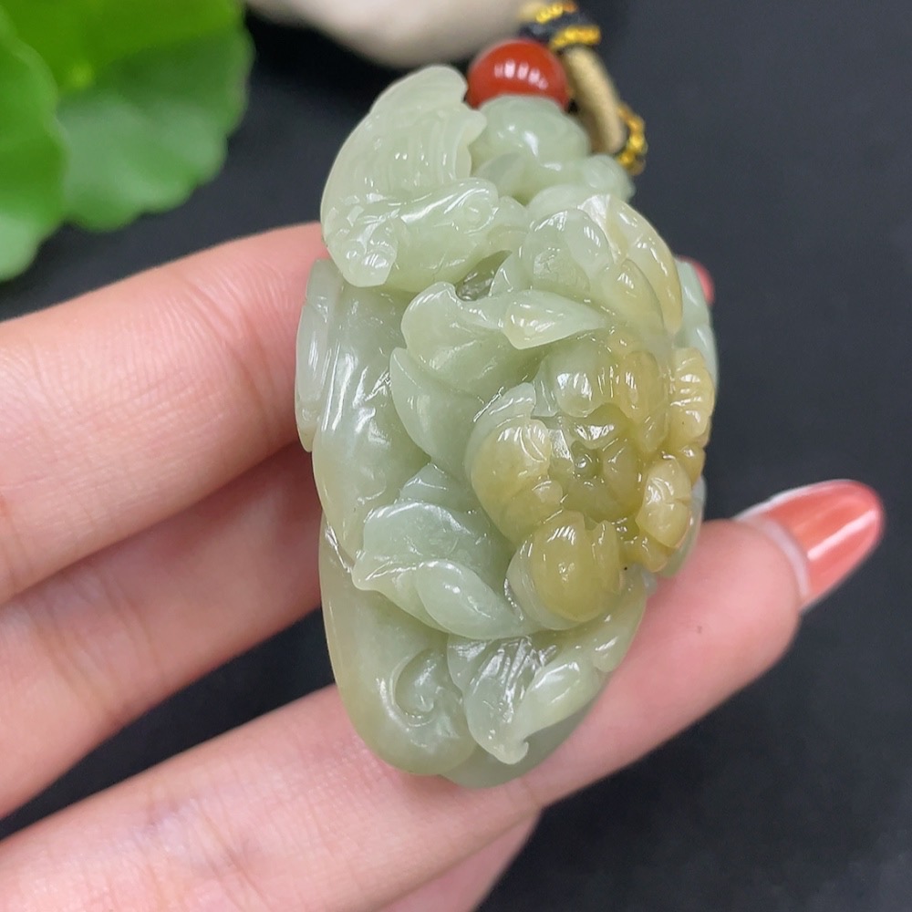Hetian Jade Pendant Blossoms of Prosperity