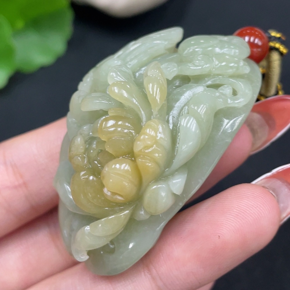 Trezaar - Hetian Jade Pendant Blossoms of Prosperity