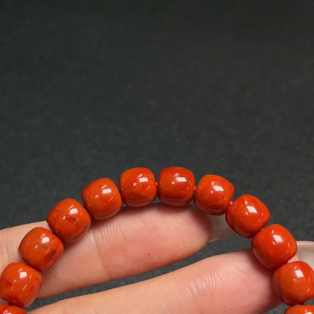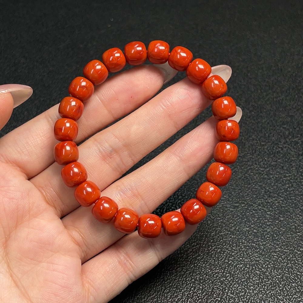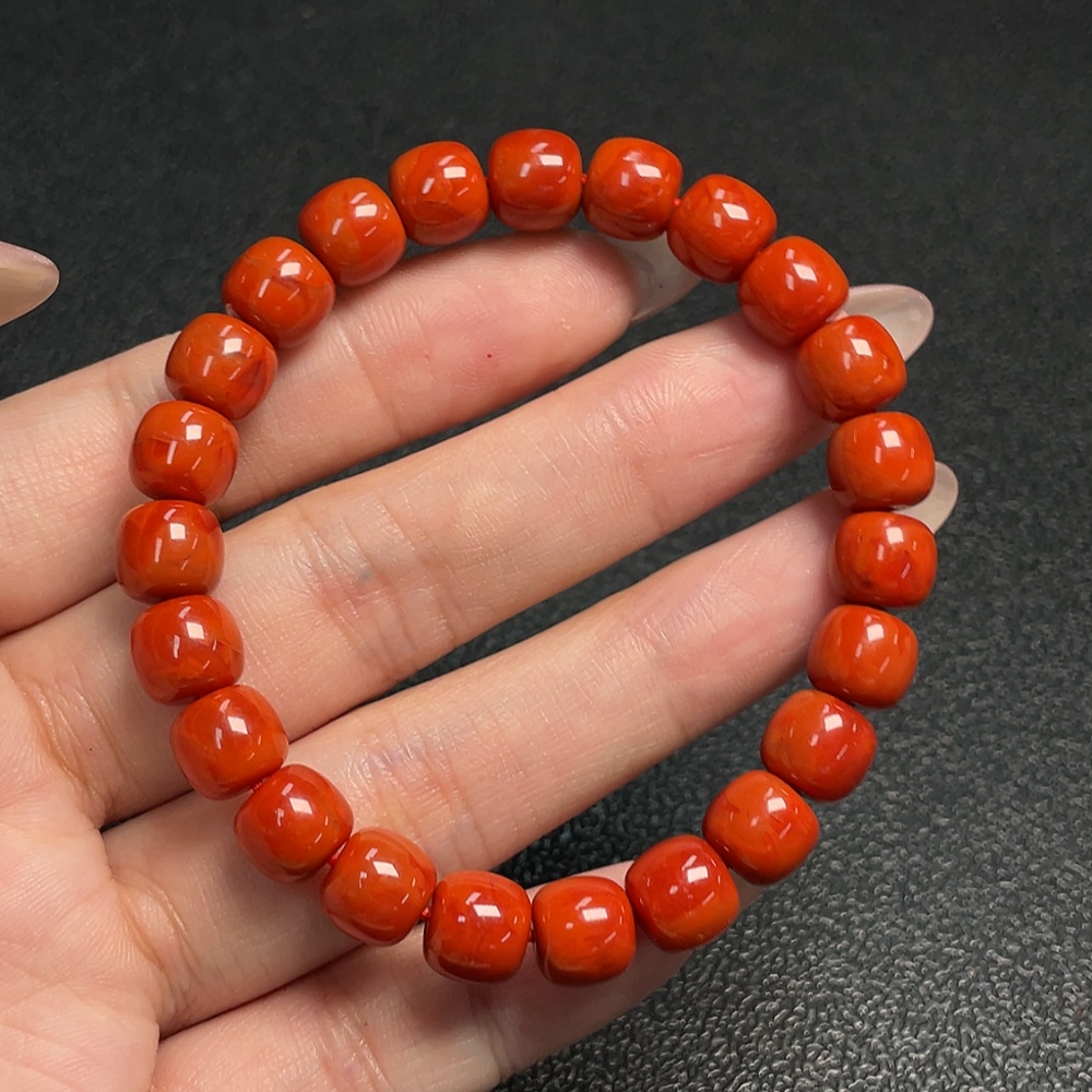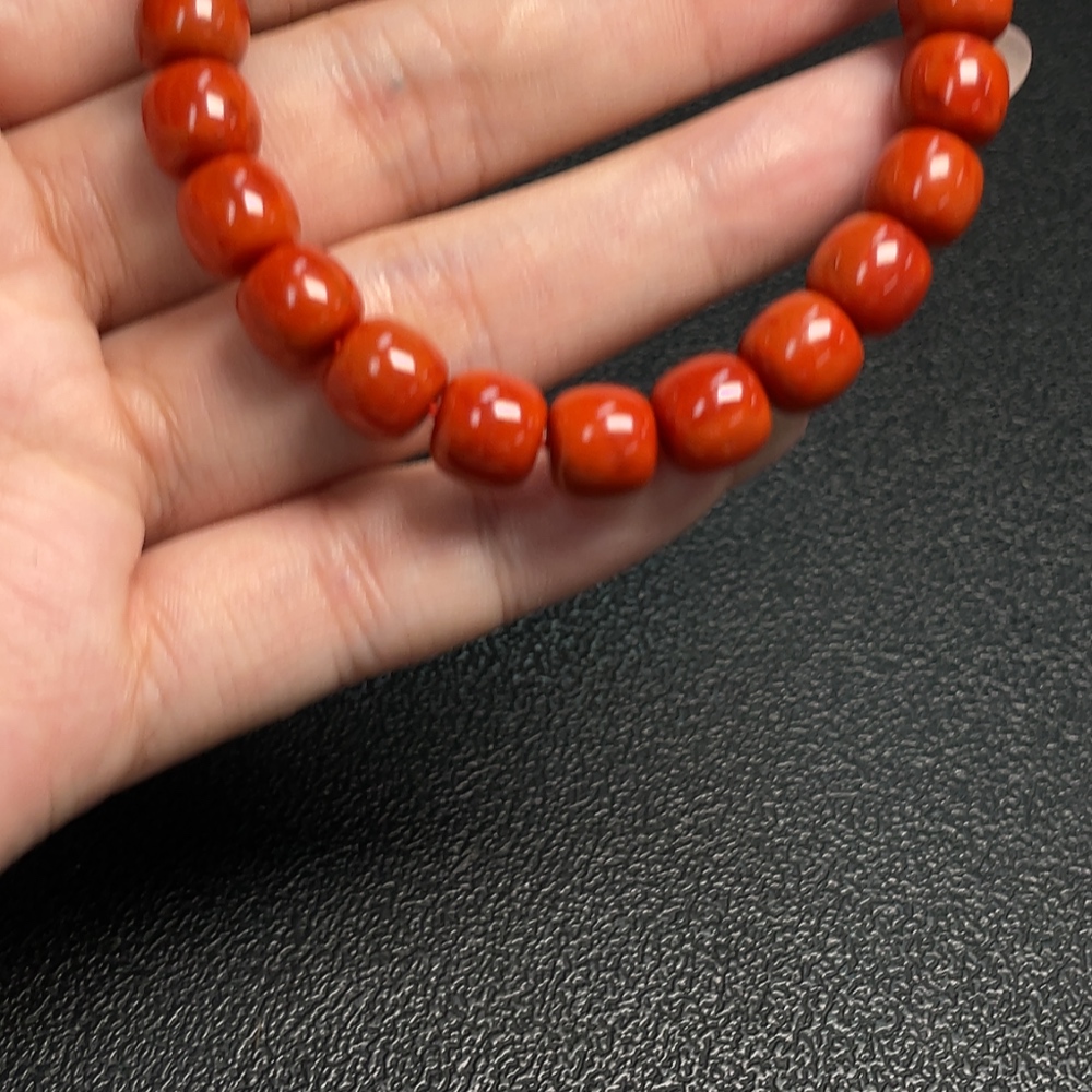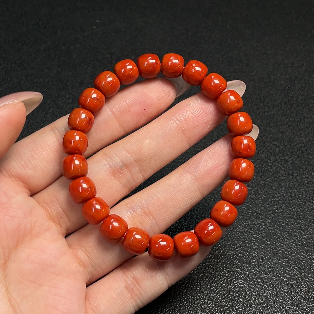 Red Agate Bracelet with Visible Organic Inclusions, Total Weight Approximately 20.23g, Bead Size About 8.2mm